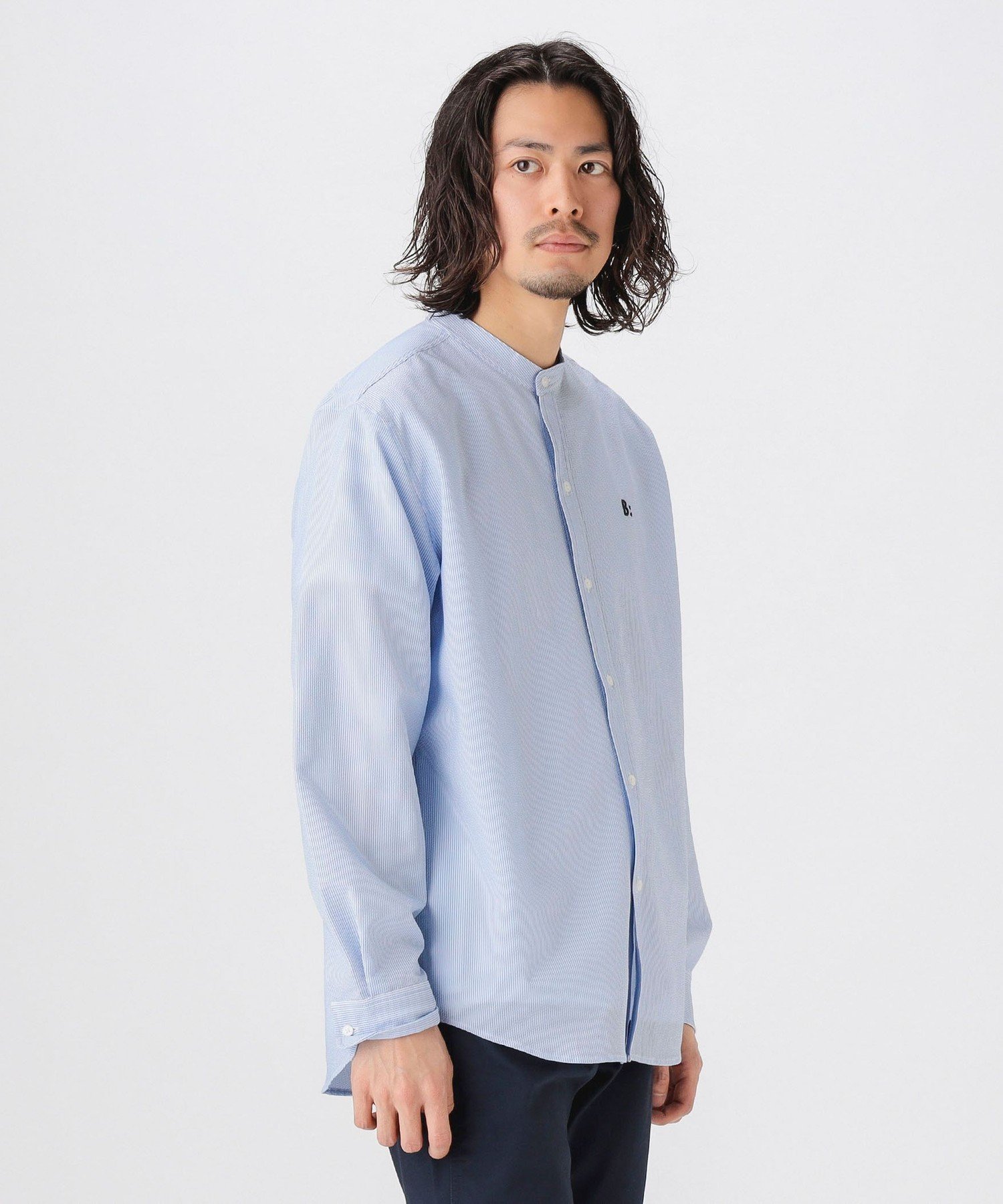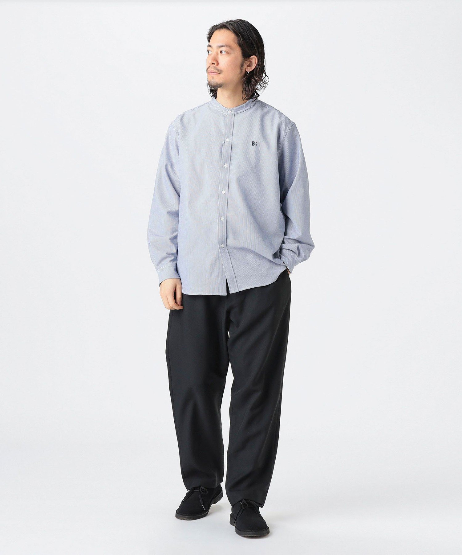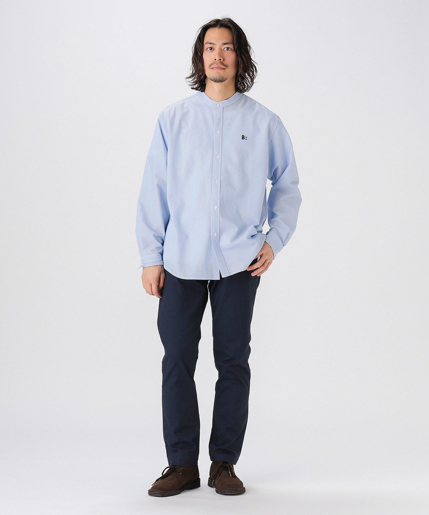 B:MING by BEAMS サッカー バンドカラー シャツ ビーミング ライフストア バイ ビームス トップス シャツ・ブラウス ブルー グレー ネイビー【送料無料】