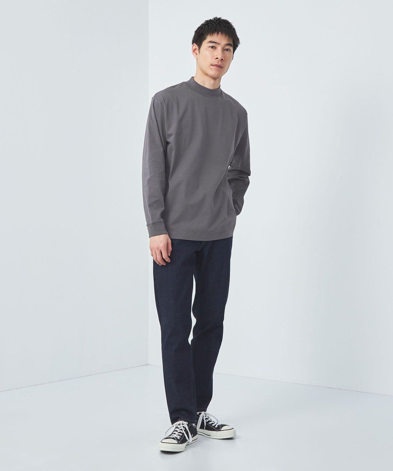 UNITED ARROWS green label relaxing LONG FIBER COTTON クリア モックネック カットソー ユナイテッドアローズ グリーンレーベルリラクシング トップス カットソー・Tシャツ ブラック グレー ホワイト【送料無料】