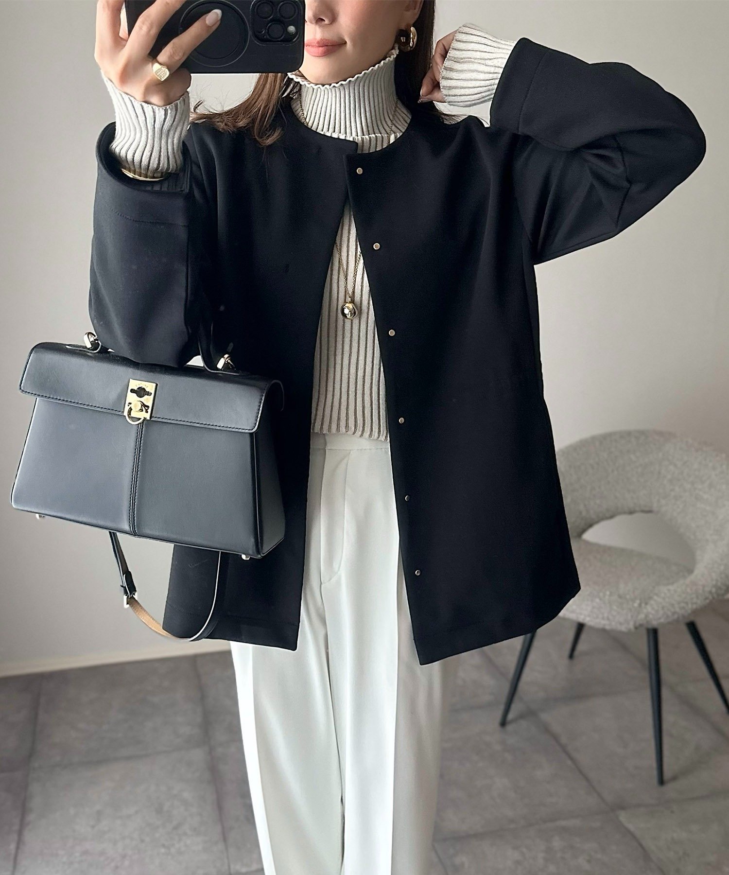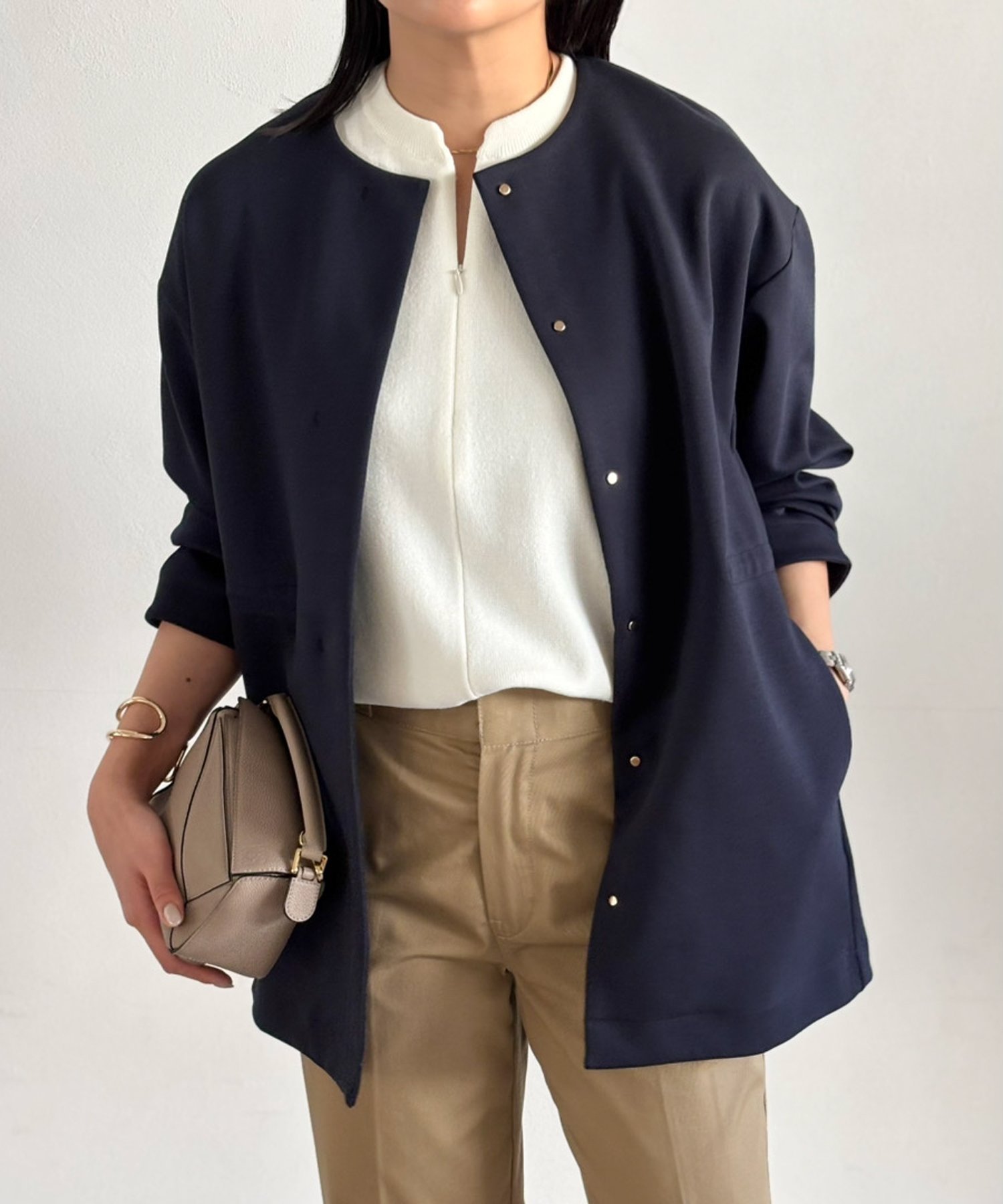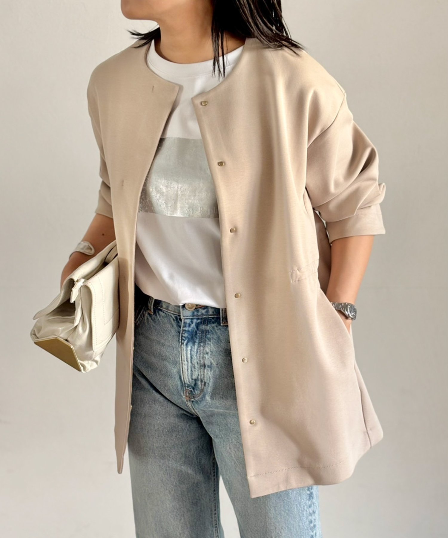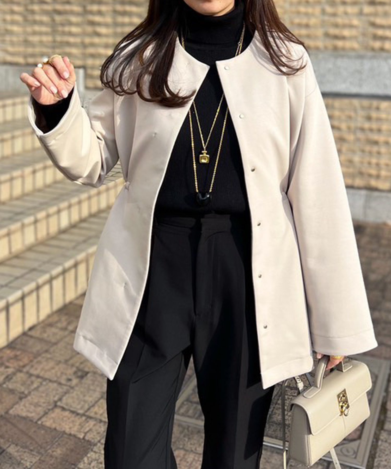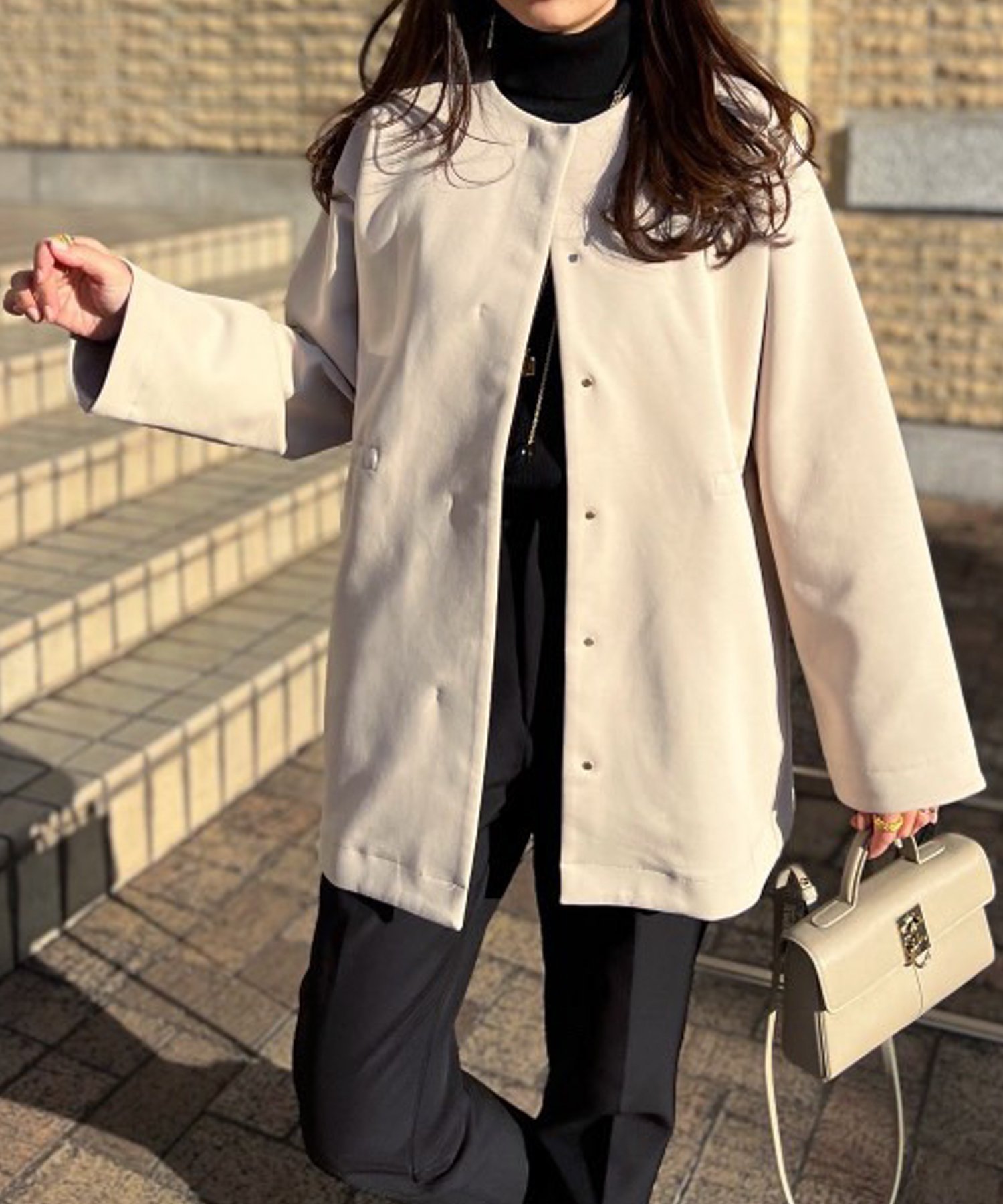 【SALE/30%OFF】Emma Taylor 【オケージョンにも◎】ライトダンボールノーカラーミドルコート スタイルドア ジャケット・アウター ノーカラージャケット ブラック ネイビー ベージュ【送料無料】