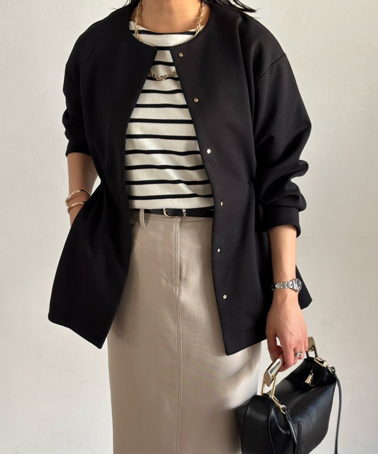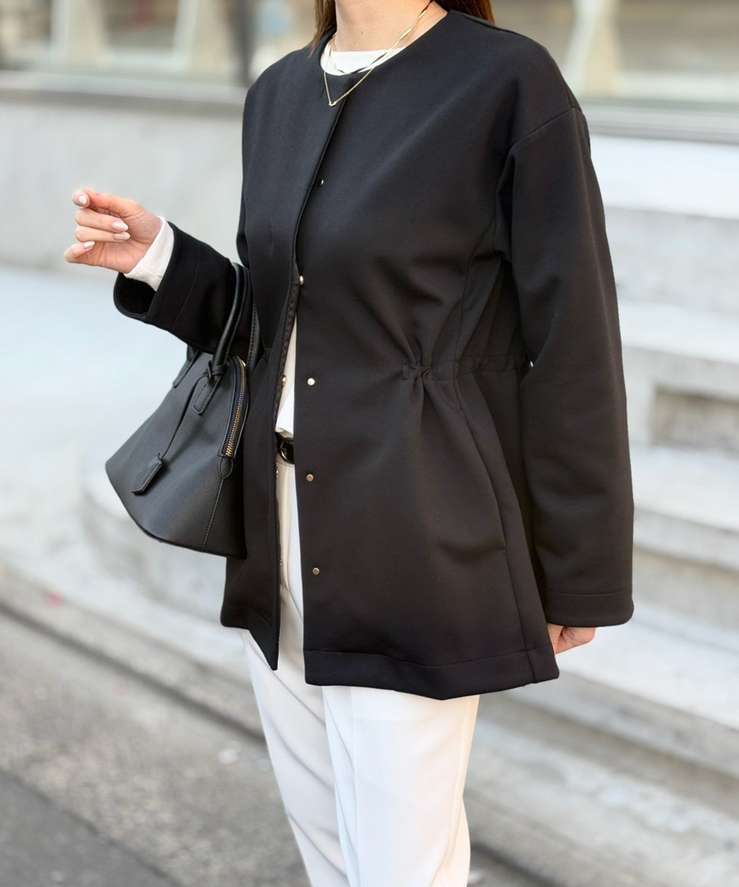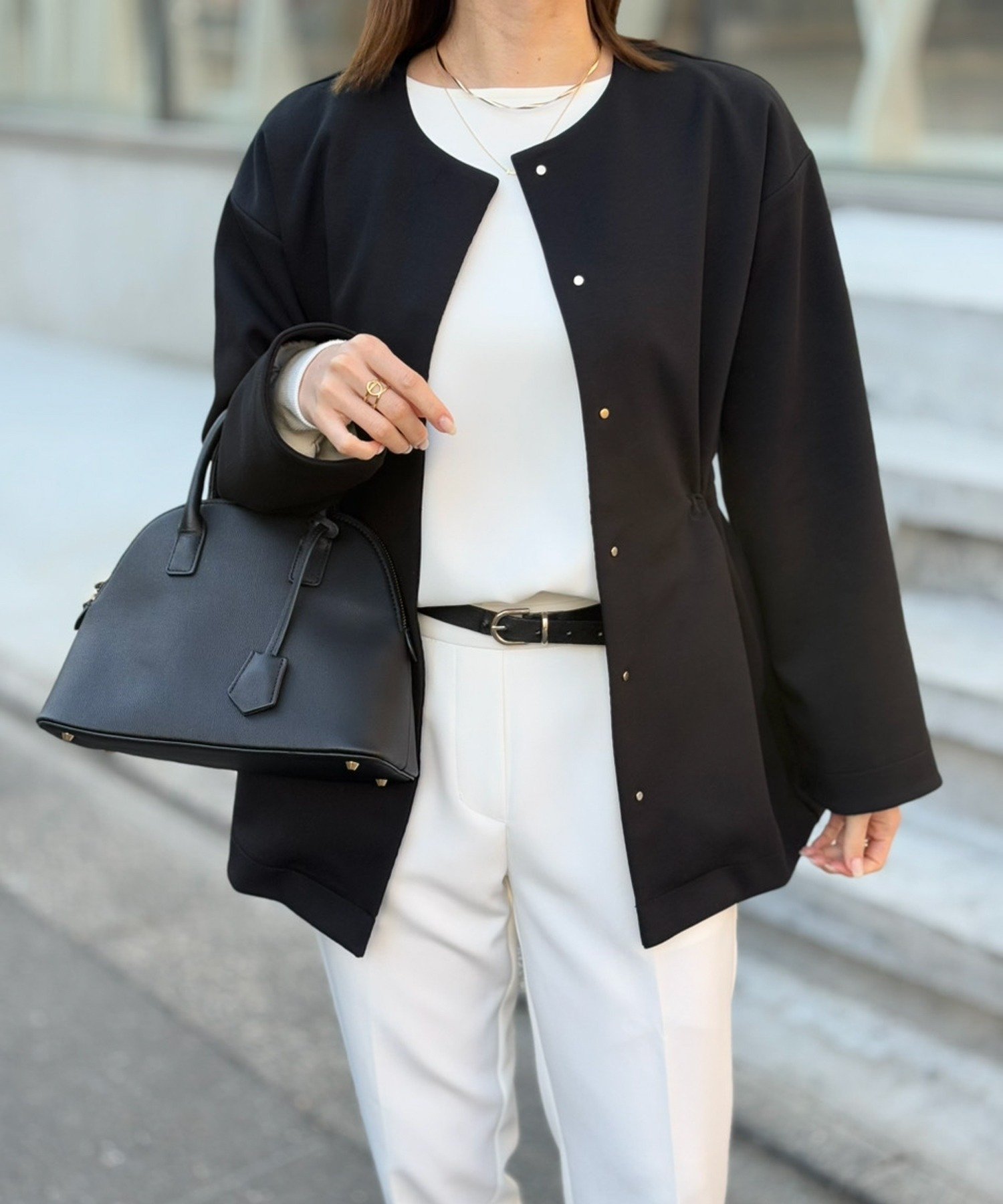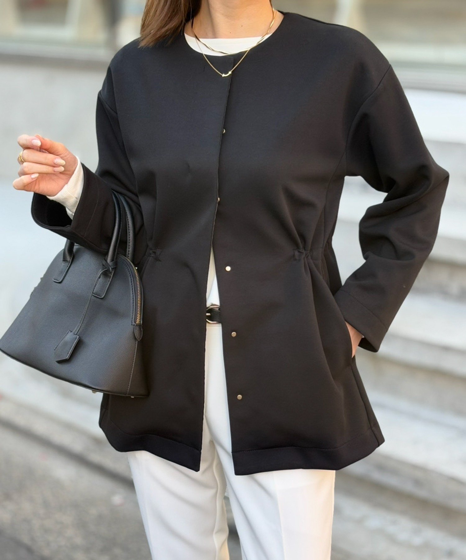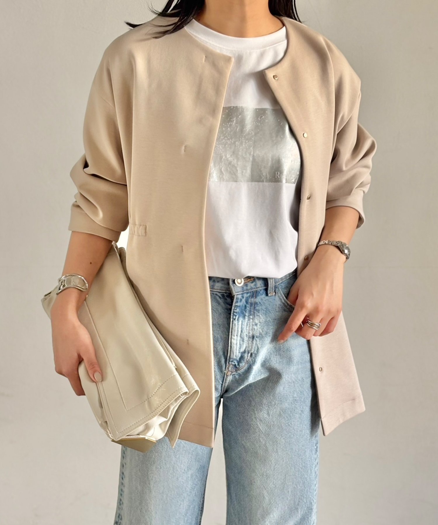 【SALE/30%OFF】Emma Taylor 【オケージョンにも◎】ライトダンボールノーカラーミドルコート スタイルドア ジャケット・アウター ノーカラージャケット ブラック ネイビー ベージュ【送料無料】