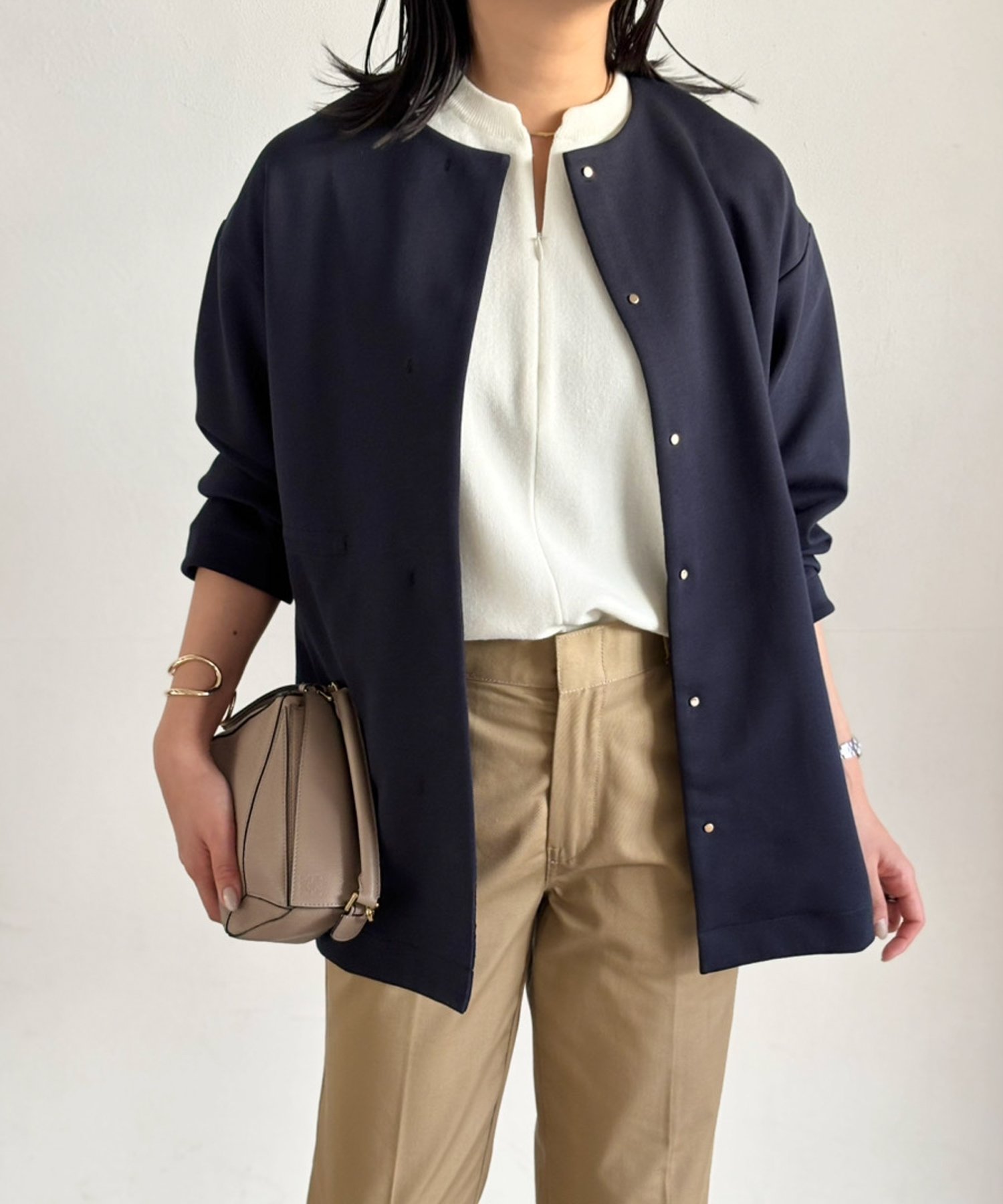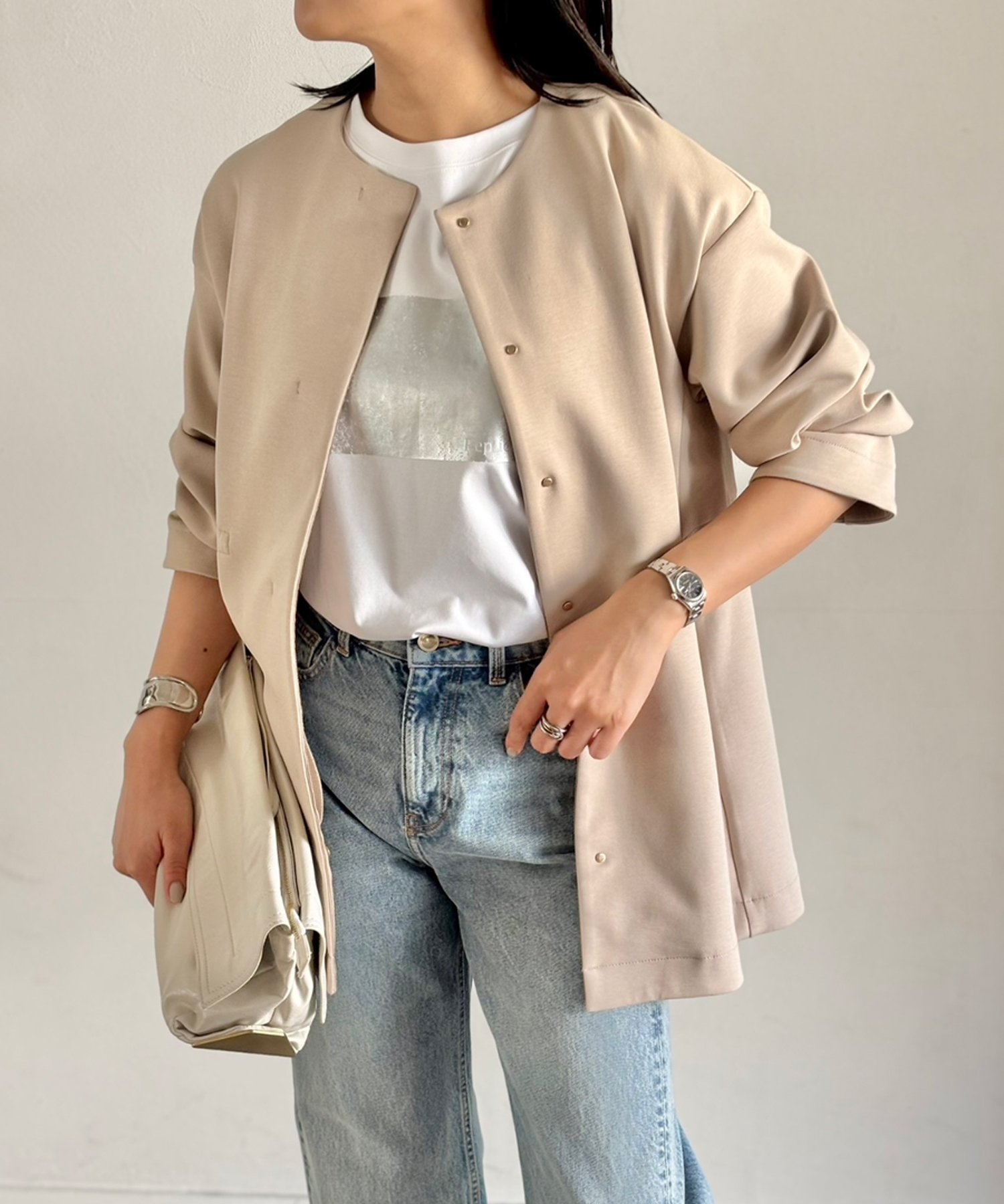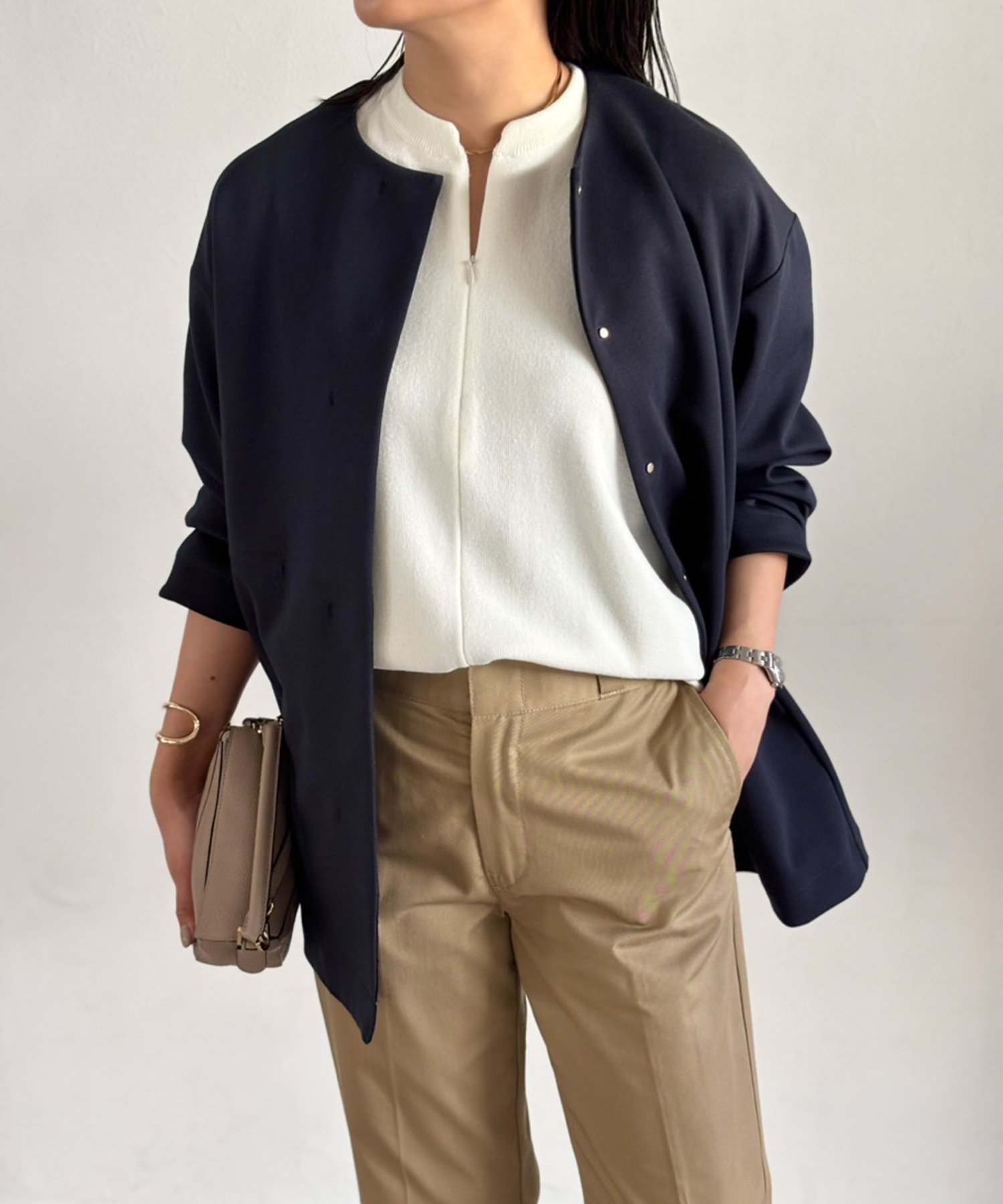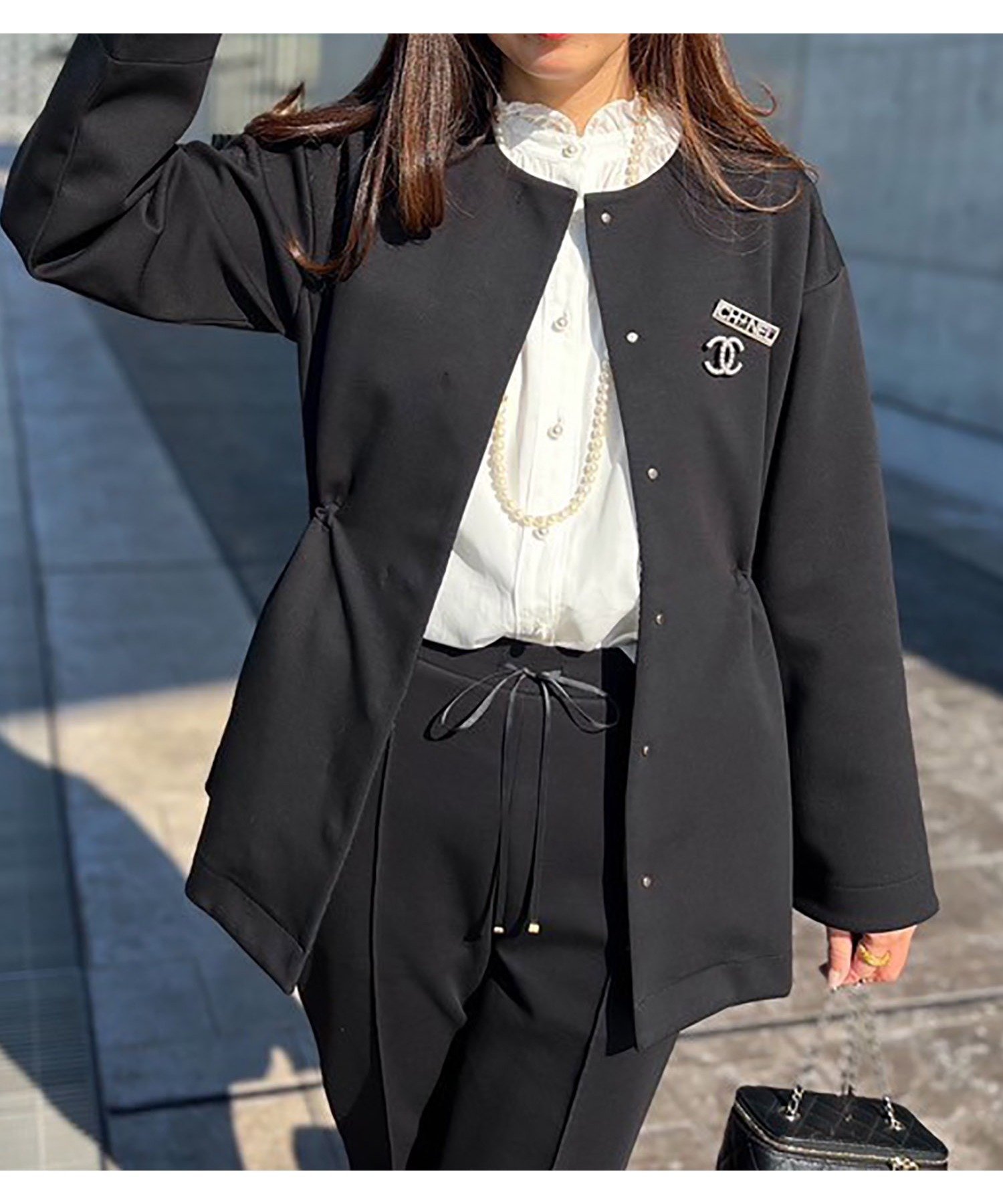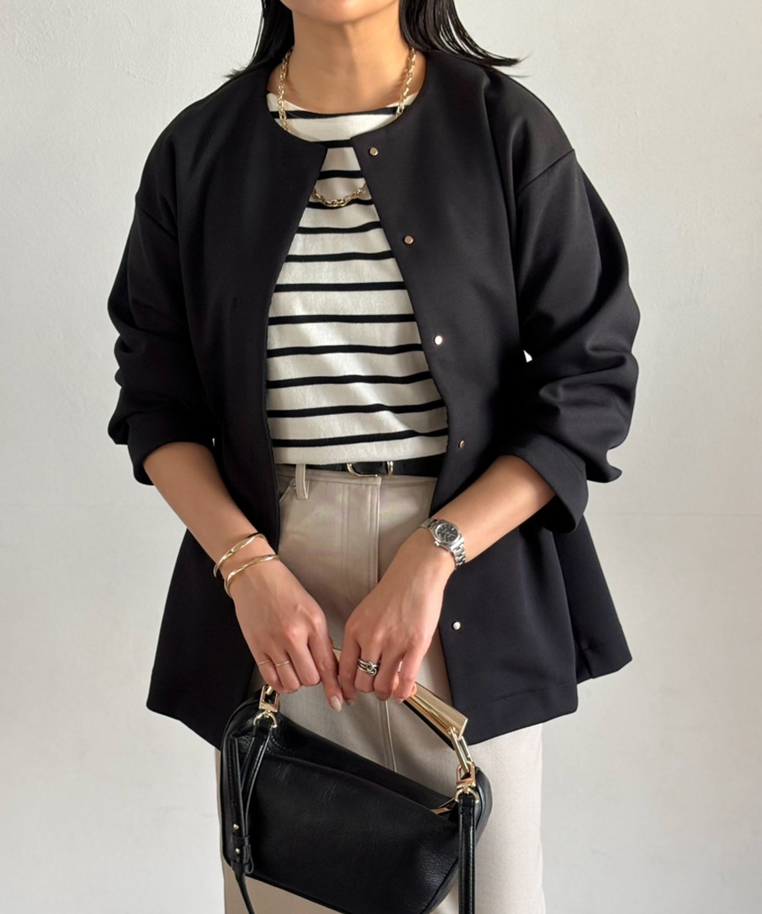 【SALE/30%OFF】Emma Taylor 【オケージョンにも◎】ライトダンボールノーカラーミドルコート スタイルドア ジャケット・アウター ノーカラージャケット ブラック ネイビー ベージュ【送料無料】