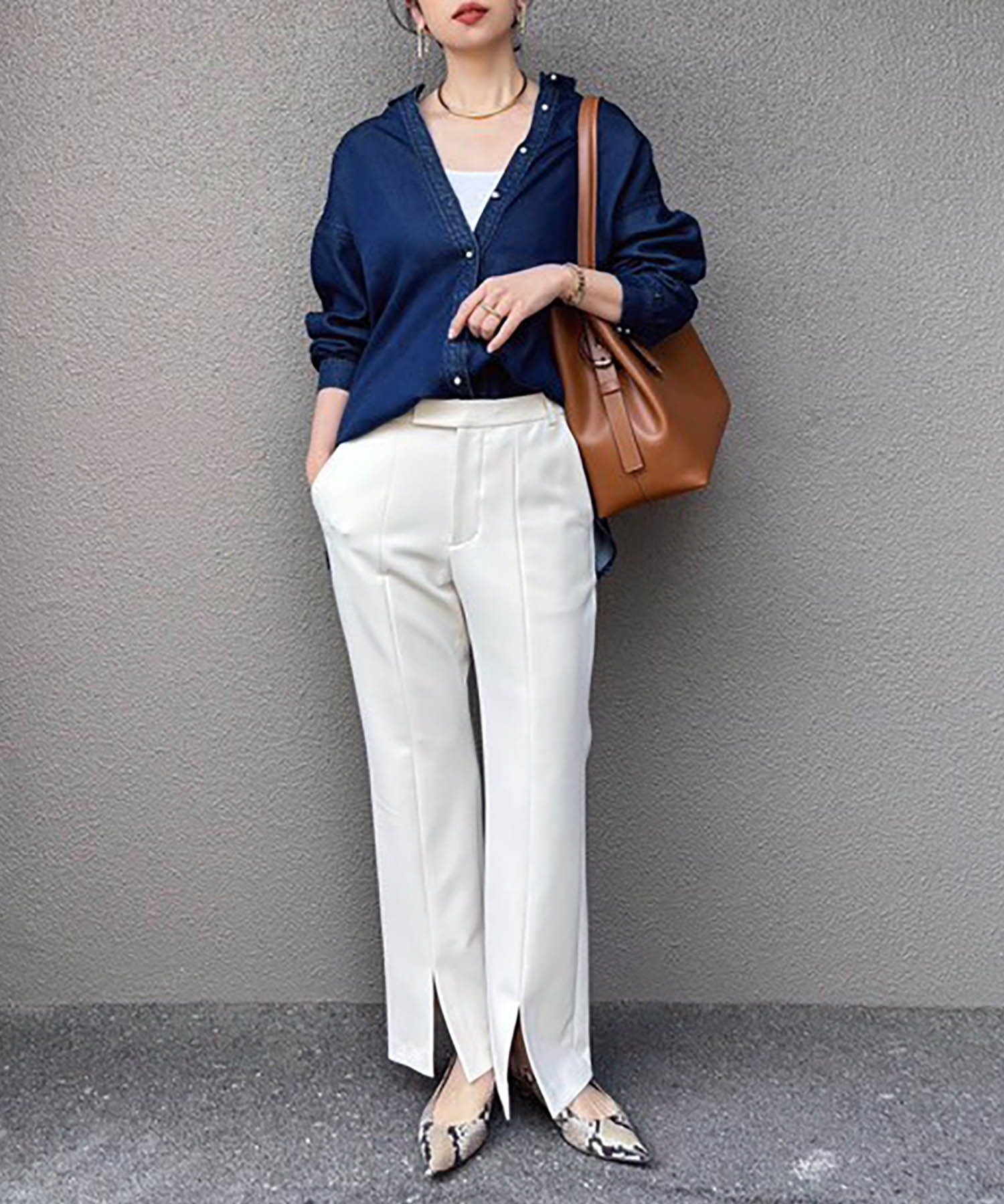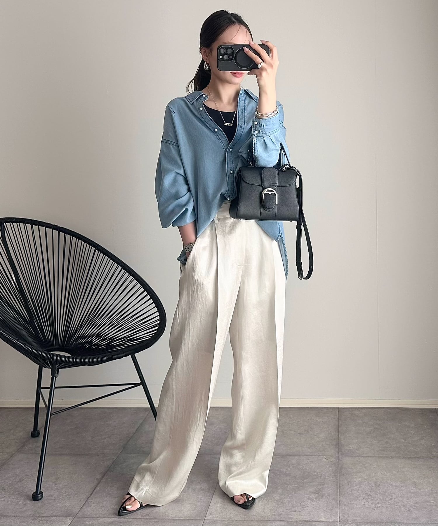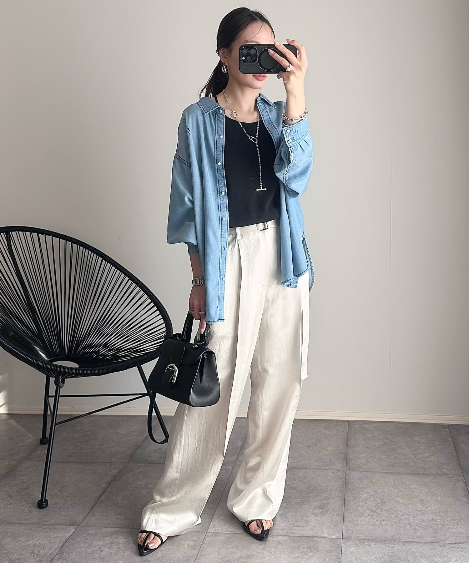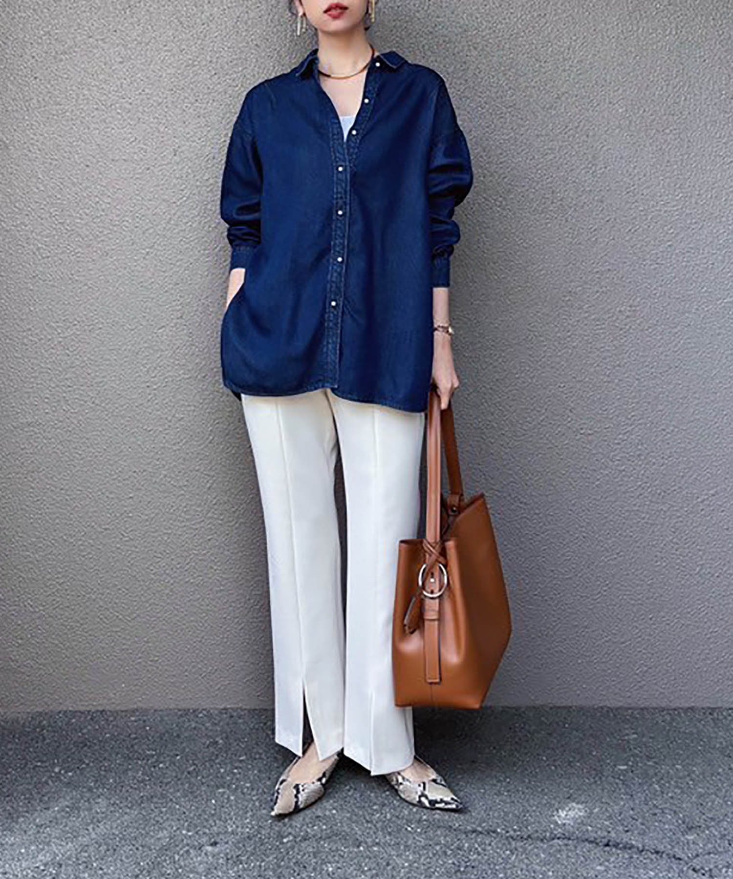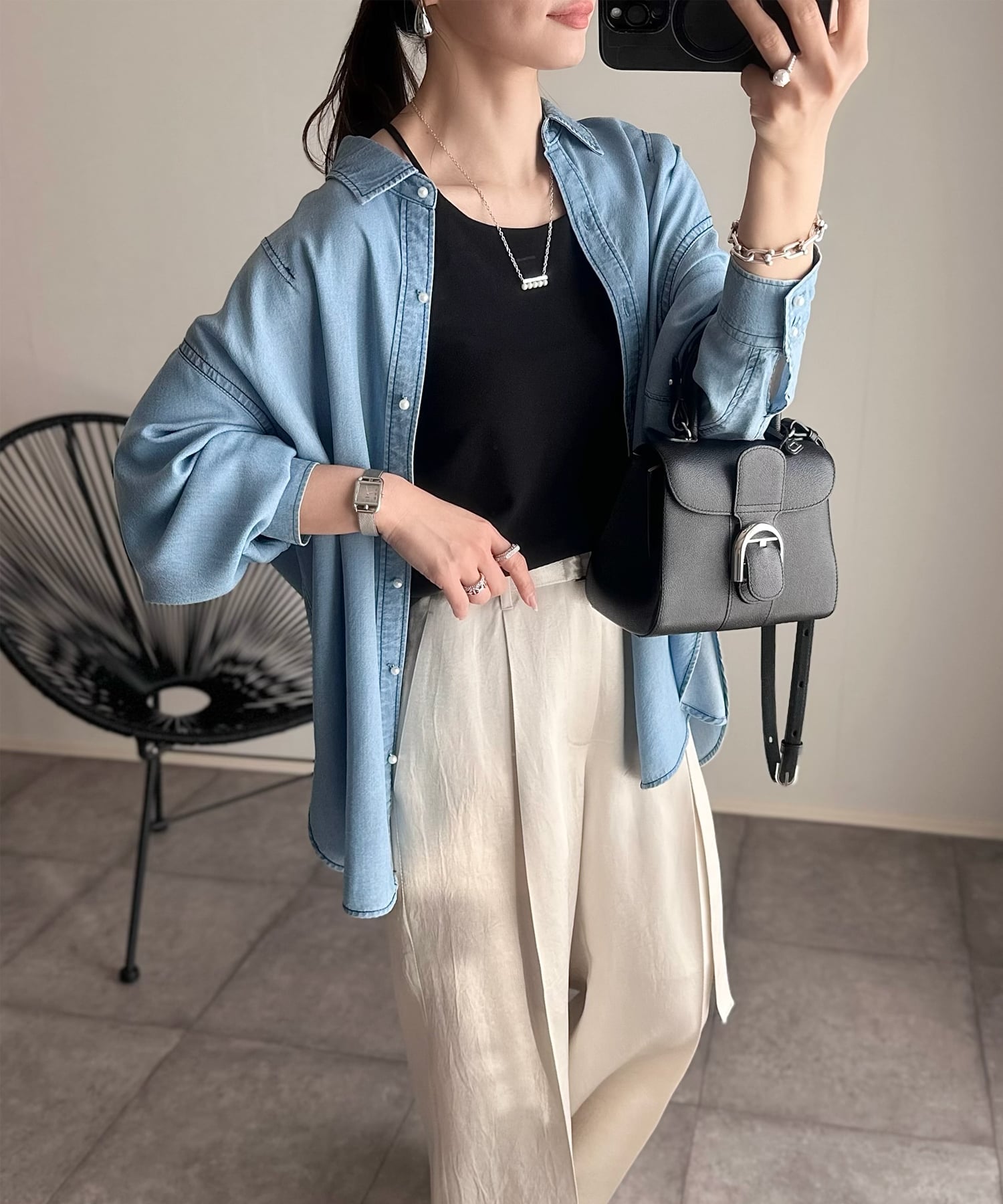Emma Taylor パール釦オーバーリヨセルデニムシャツ スタイルドア トップス シャツ・ブラウス ブルー ネイビー【送料無料】