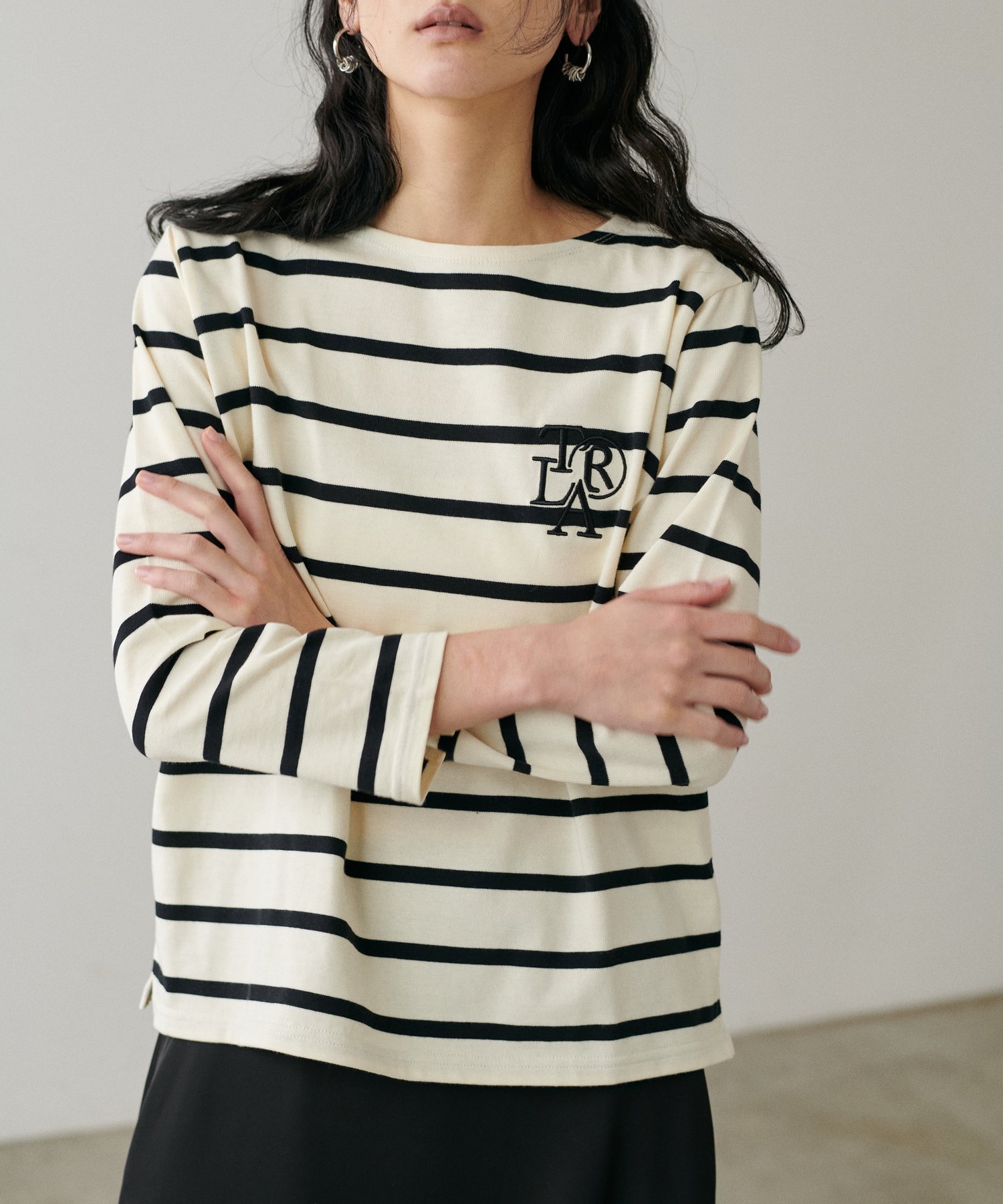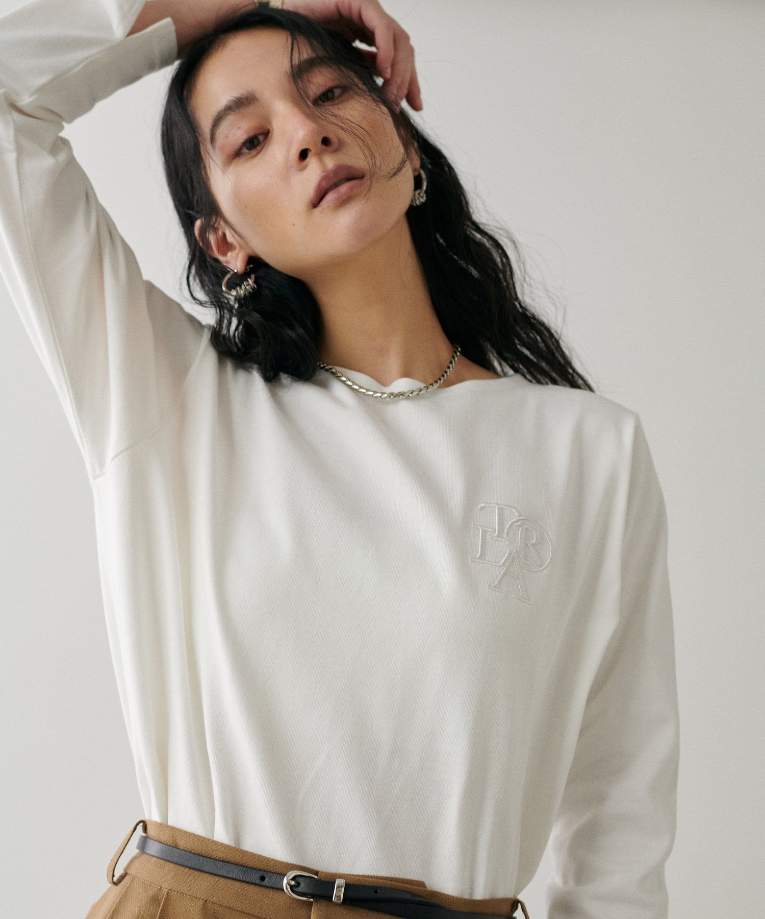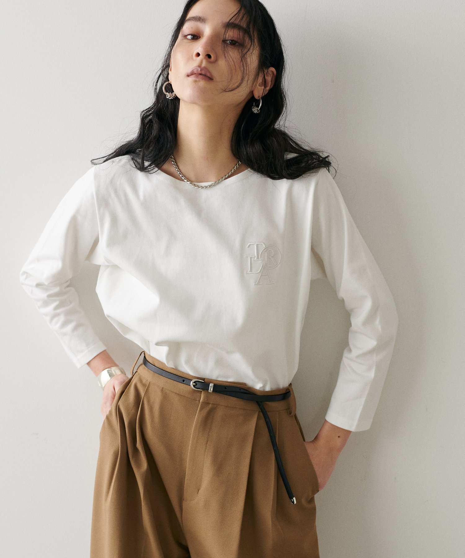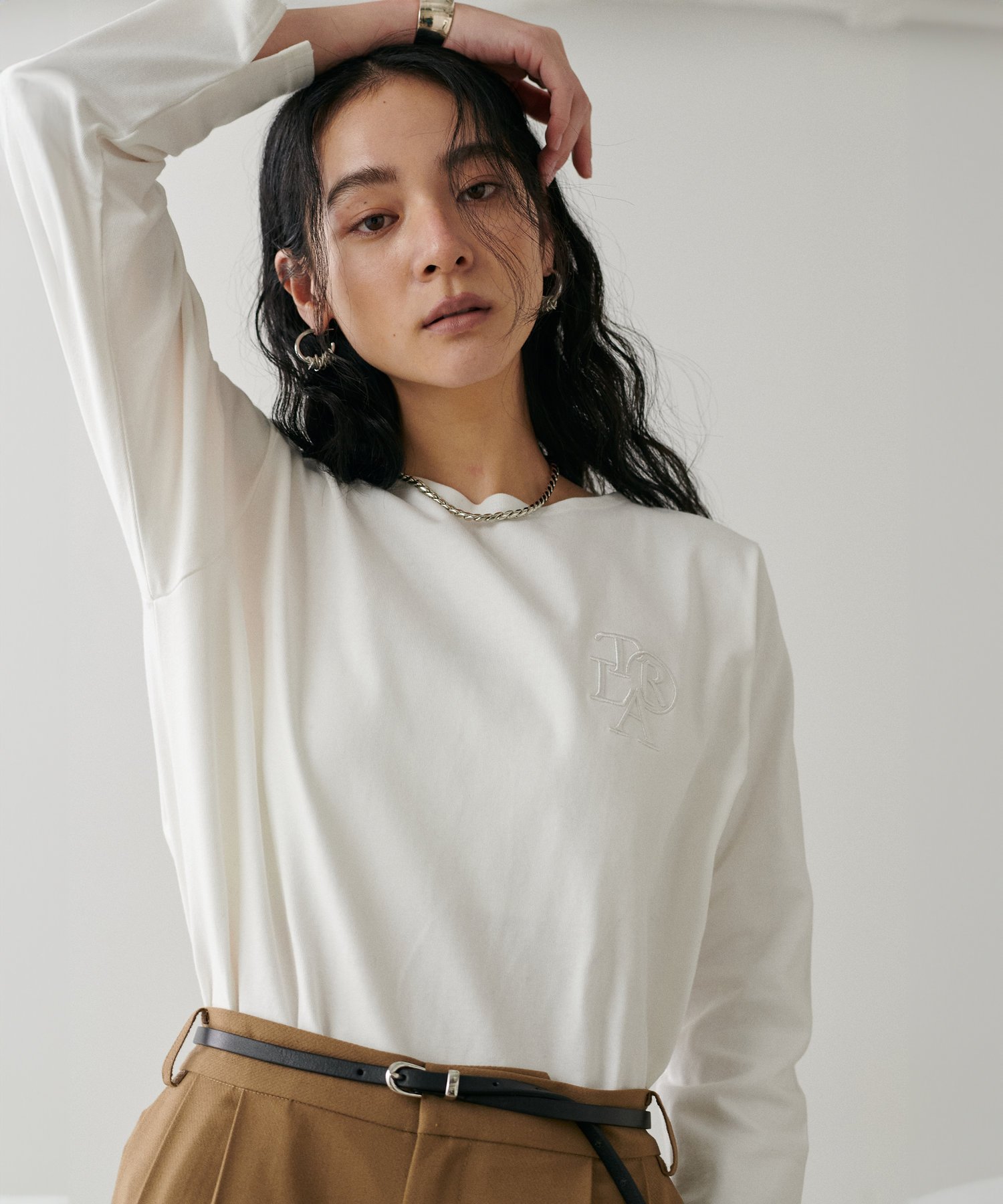 LARUTA 厚盛りちびロゴ刺繍ロンT ラルータ トップス その他のトップス ホワイト レッド【送料無料】