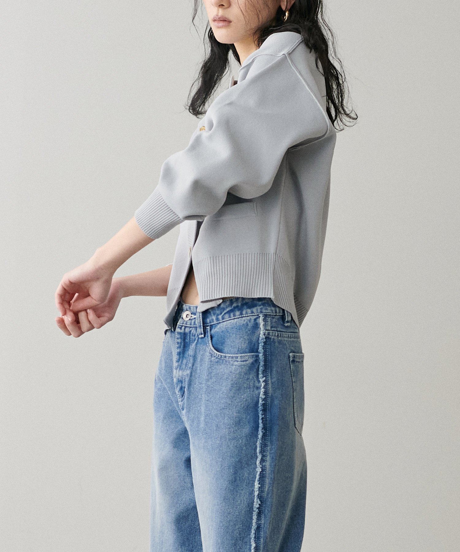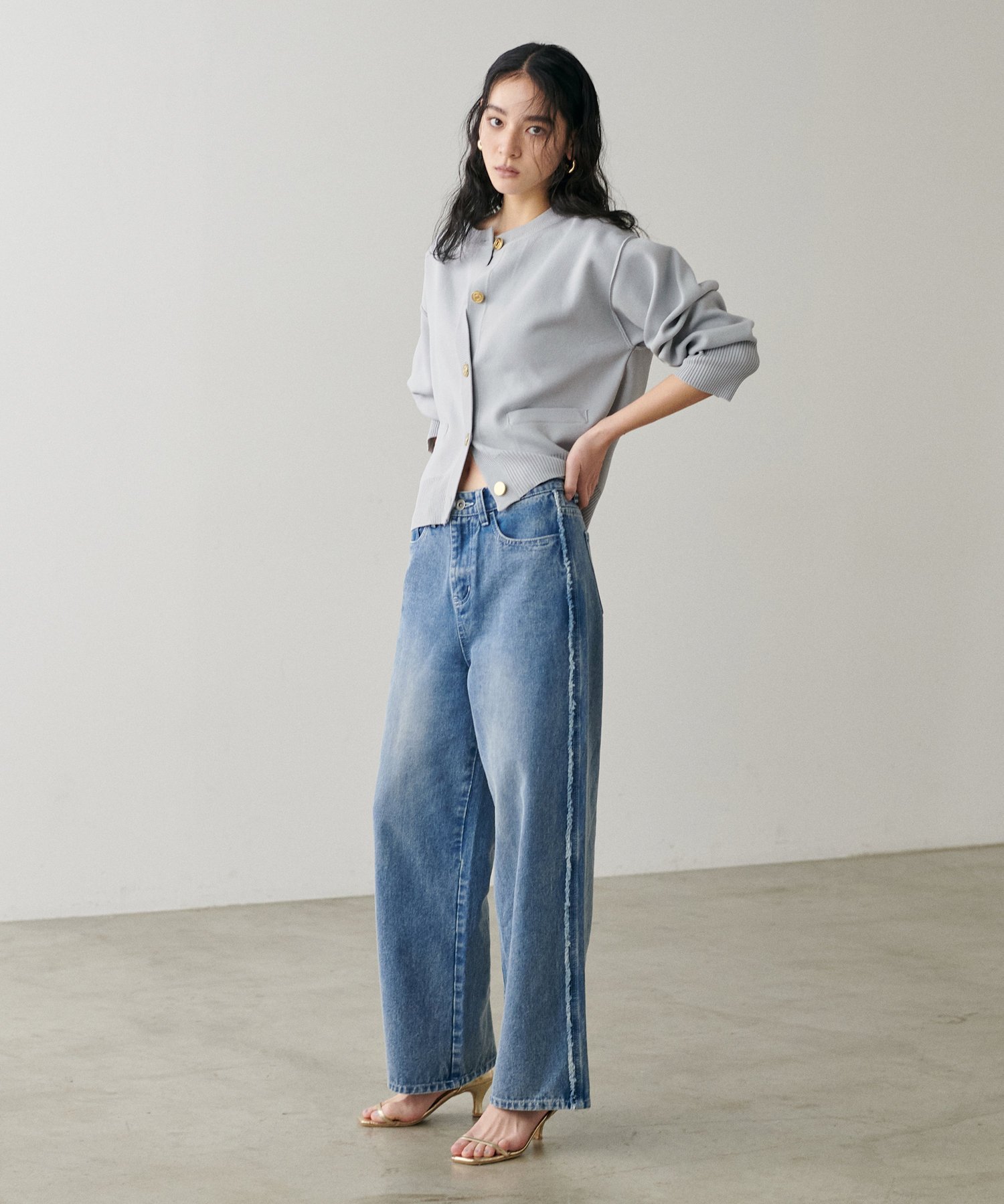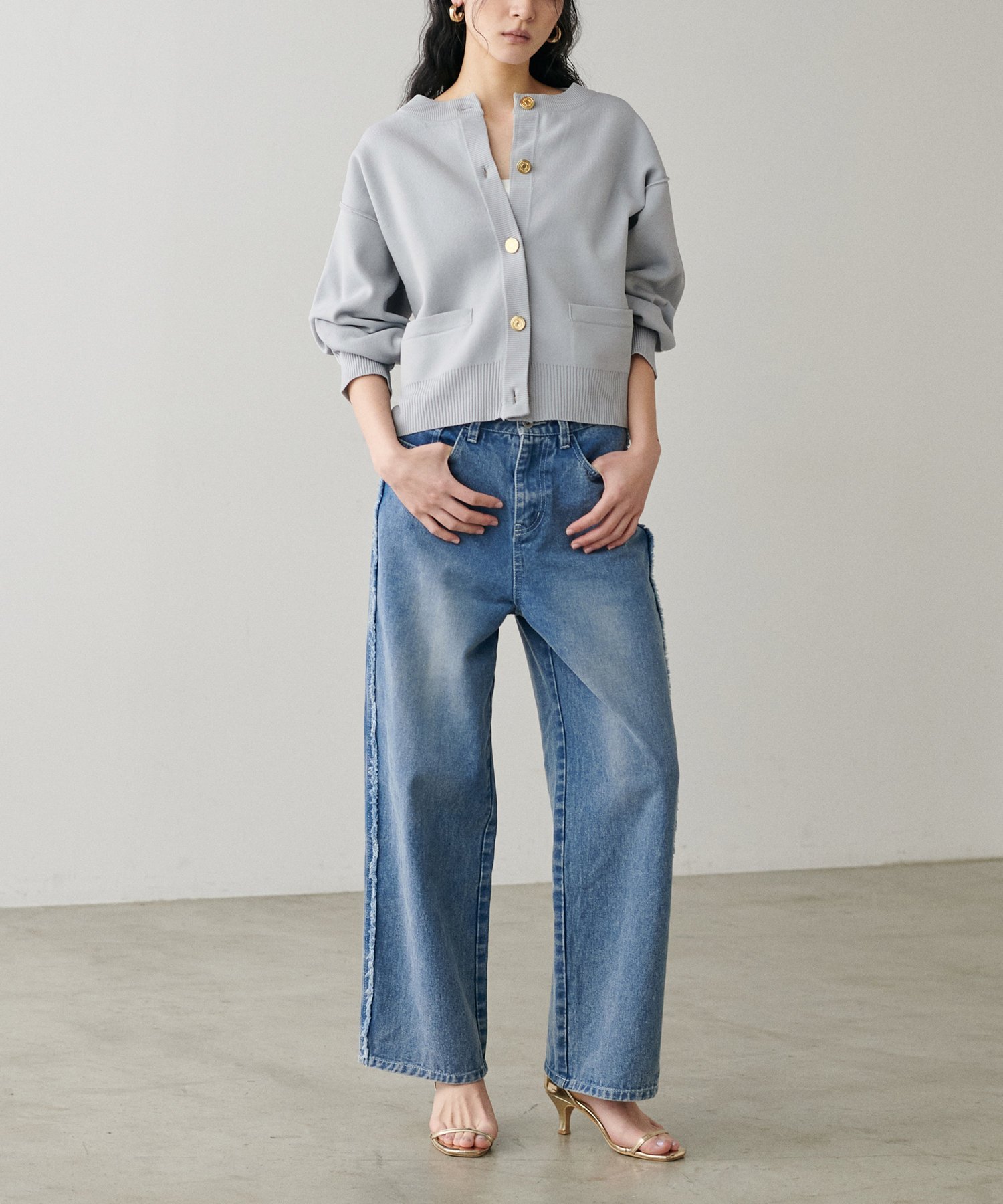LARUTA ロゴ入り金釦ポリクルーカーデ ラルータ トップス カーディガン ブラック グレー ホワイト ブラウン ブルー【送料無料】
