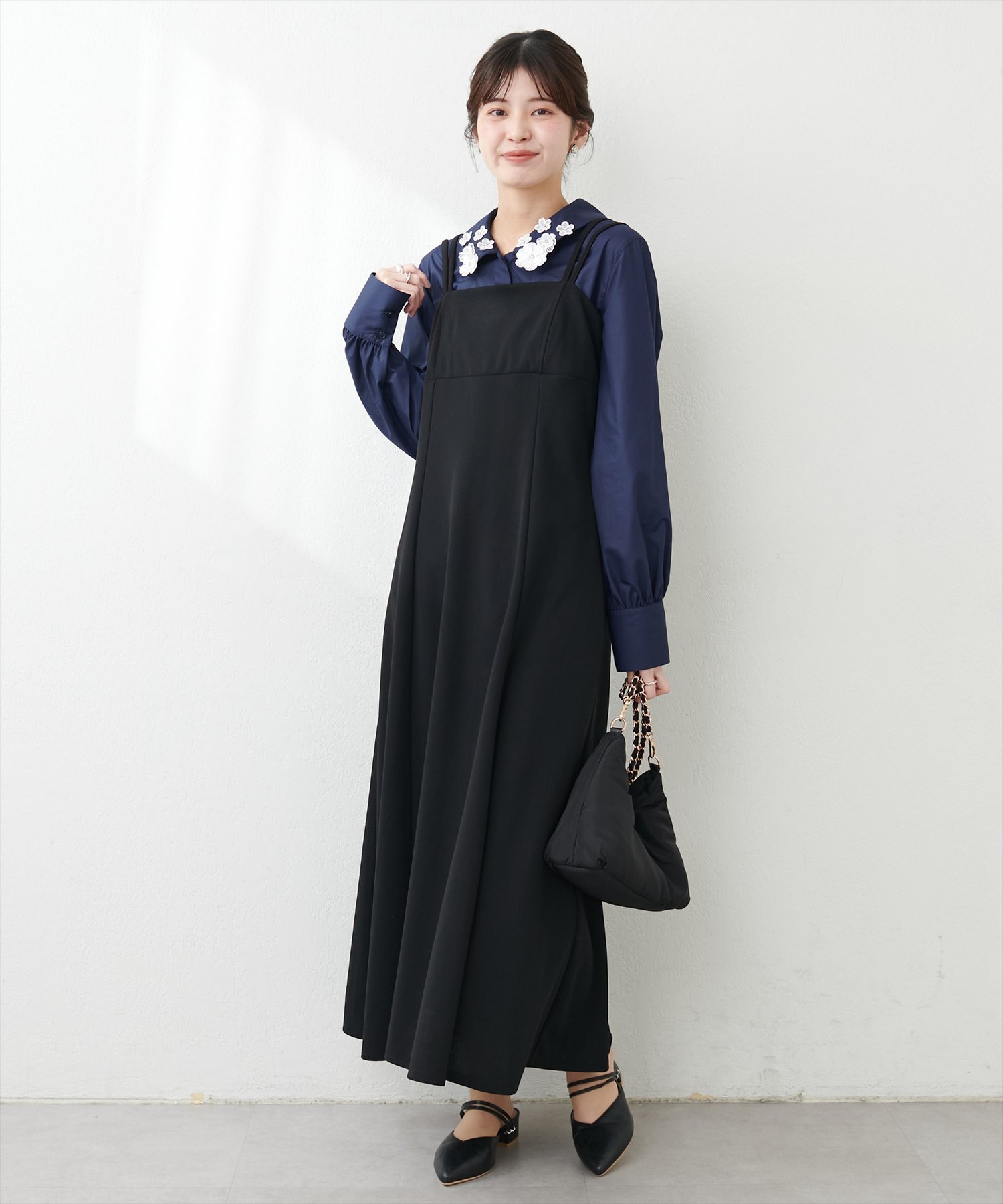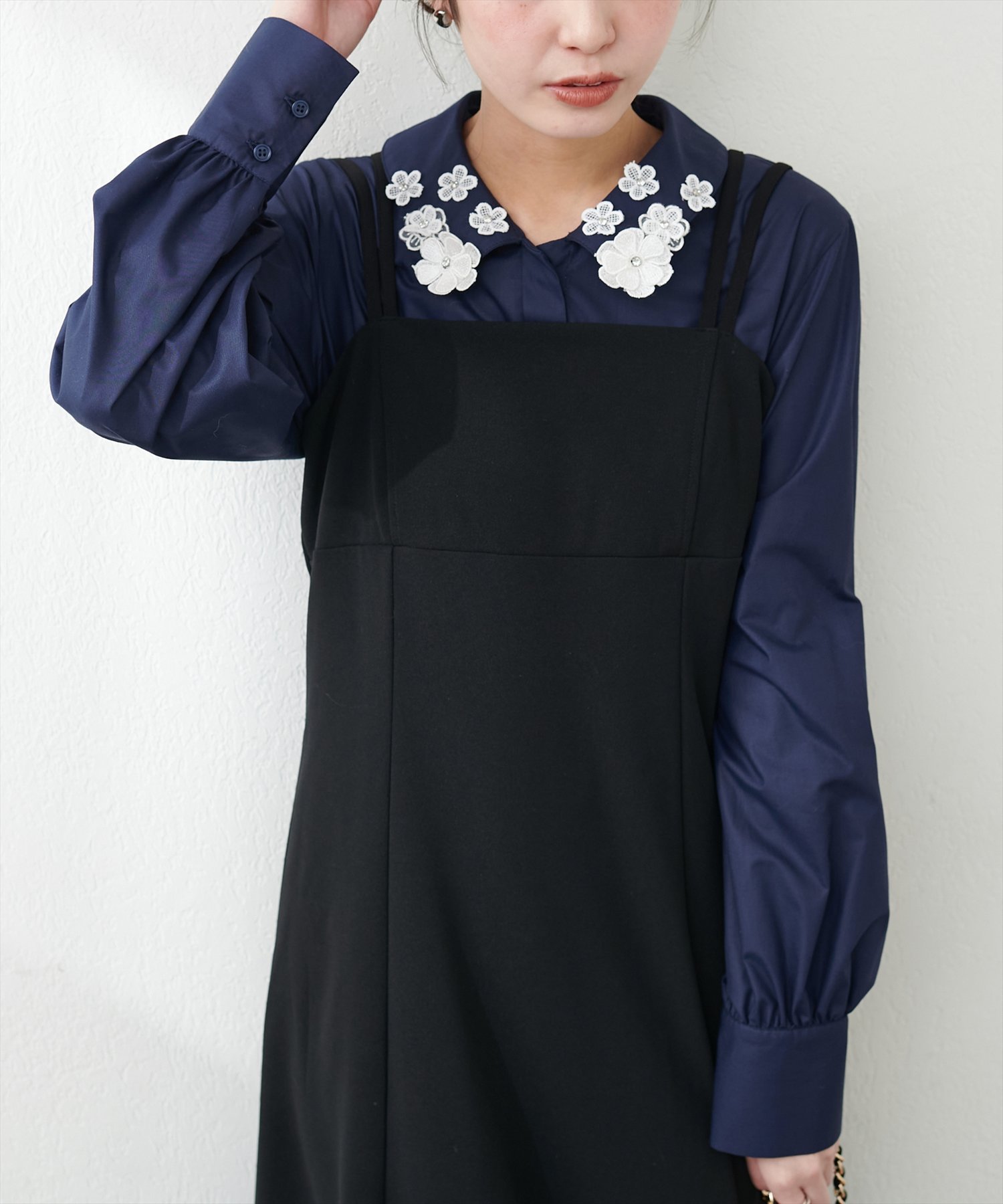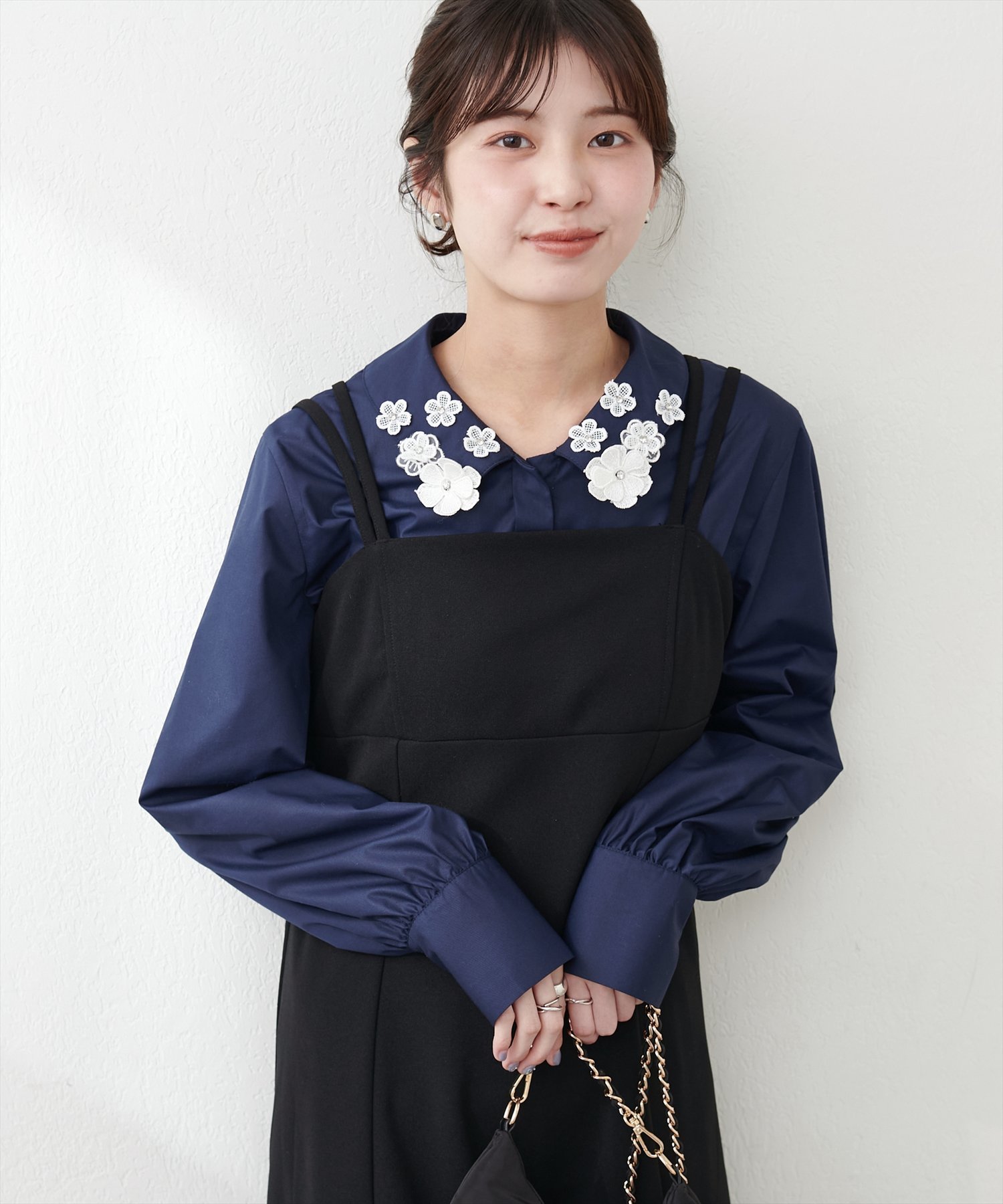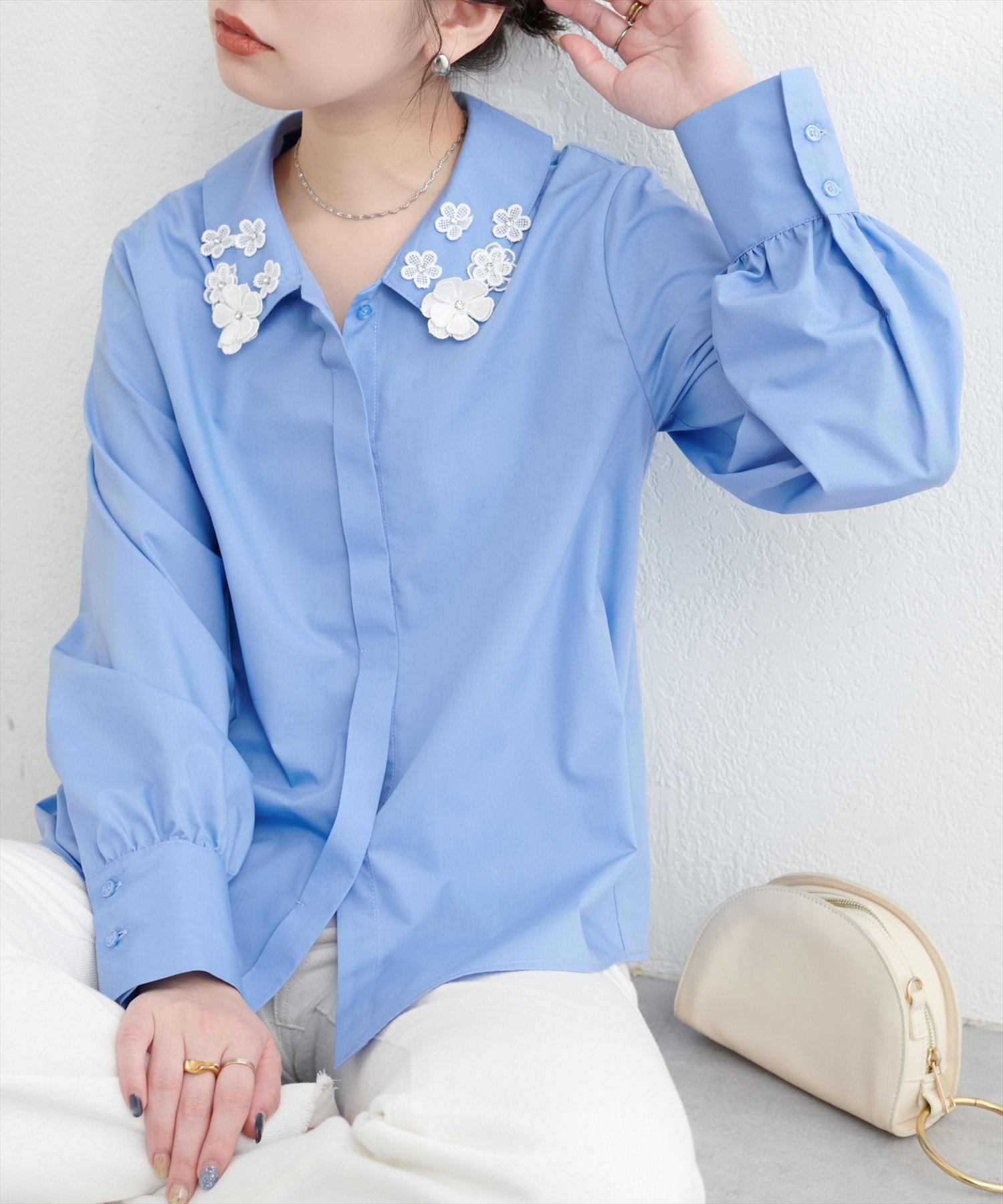 natural couture お花モチーフ衿ブラウス ナチュラルクチュール トップス シャツ・ブラウス ブルー ホワイト ネイビー【送料無料】