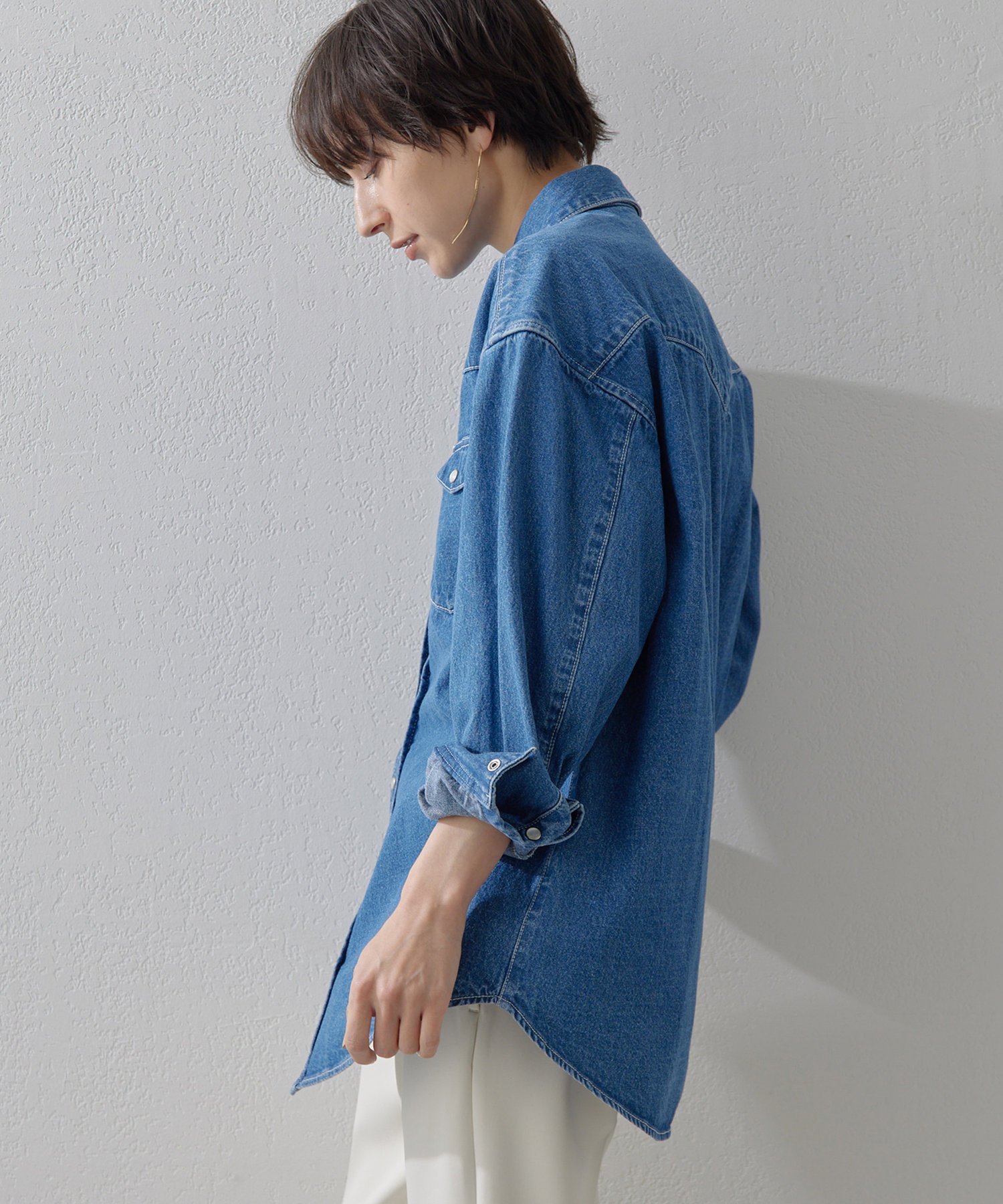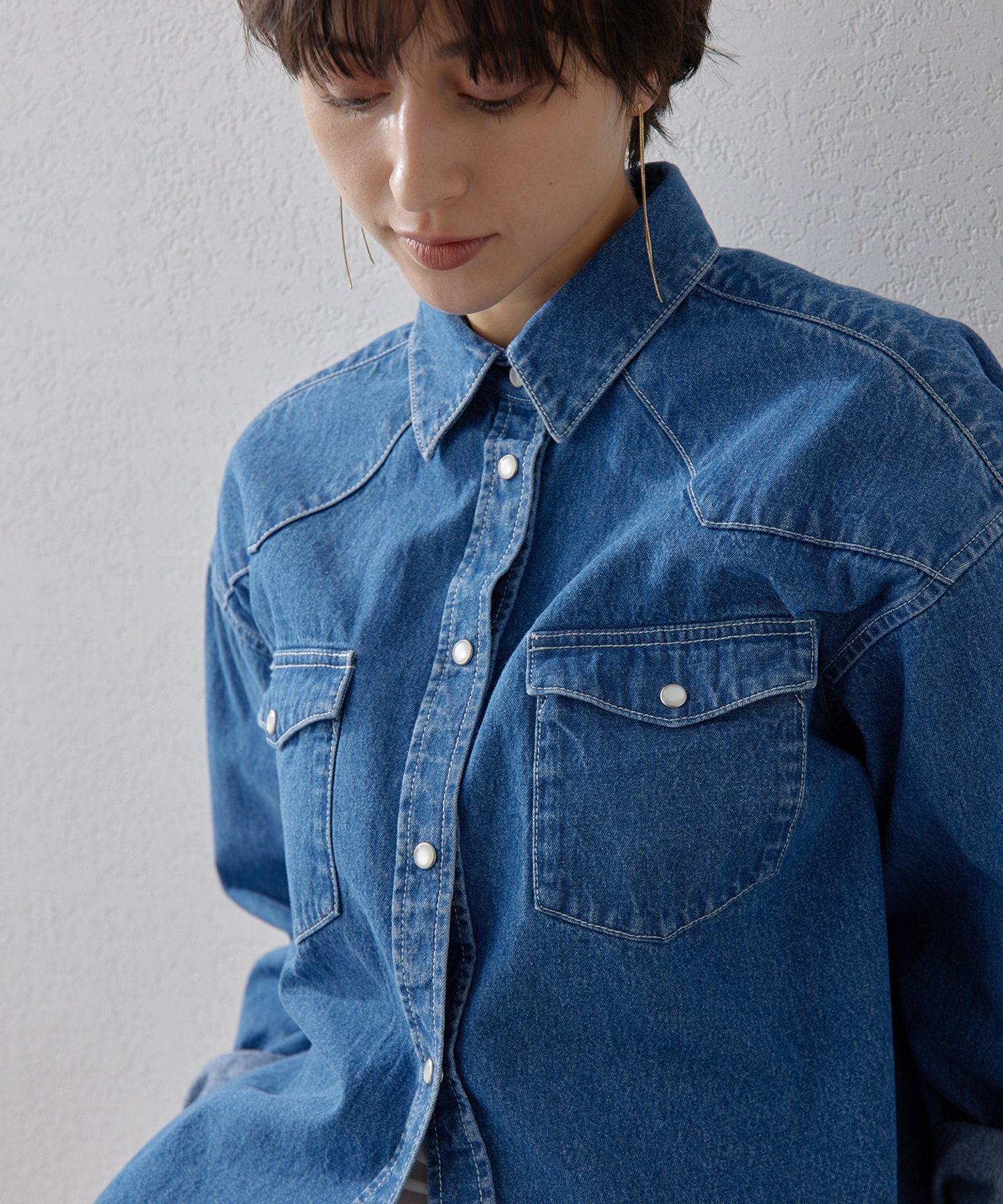 Whim Gazette 【THE PAUSE】ウエスタンデニムシャツ ウィム ガゼット トップス シャツ・ブラウス ホワイト ブルー【送料無料】
