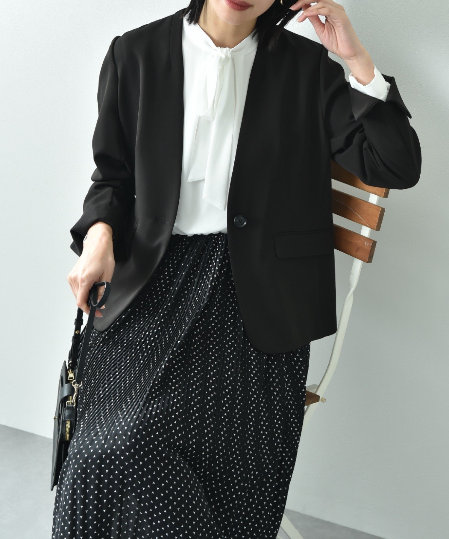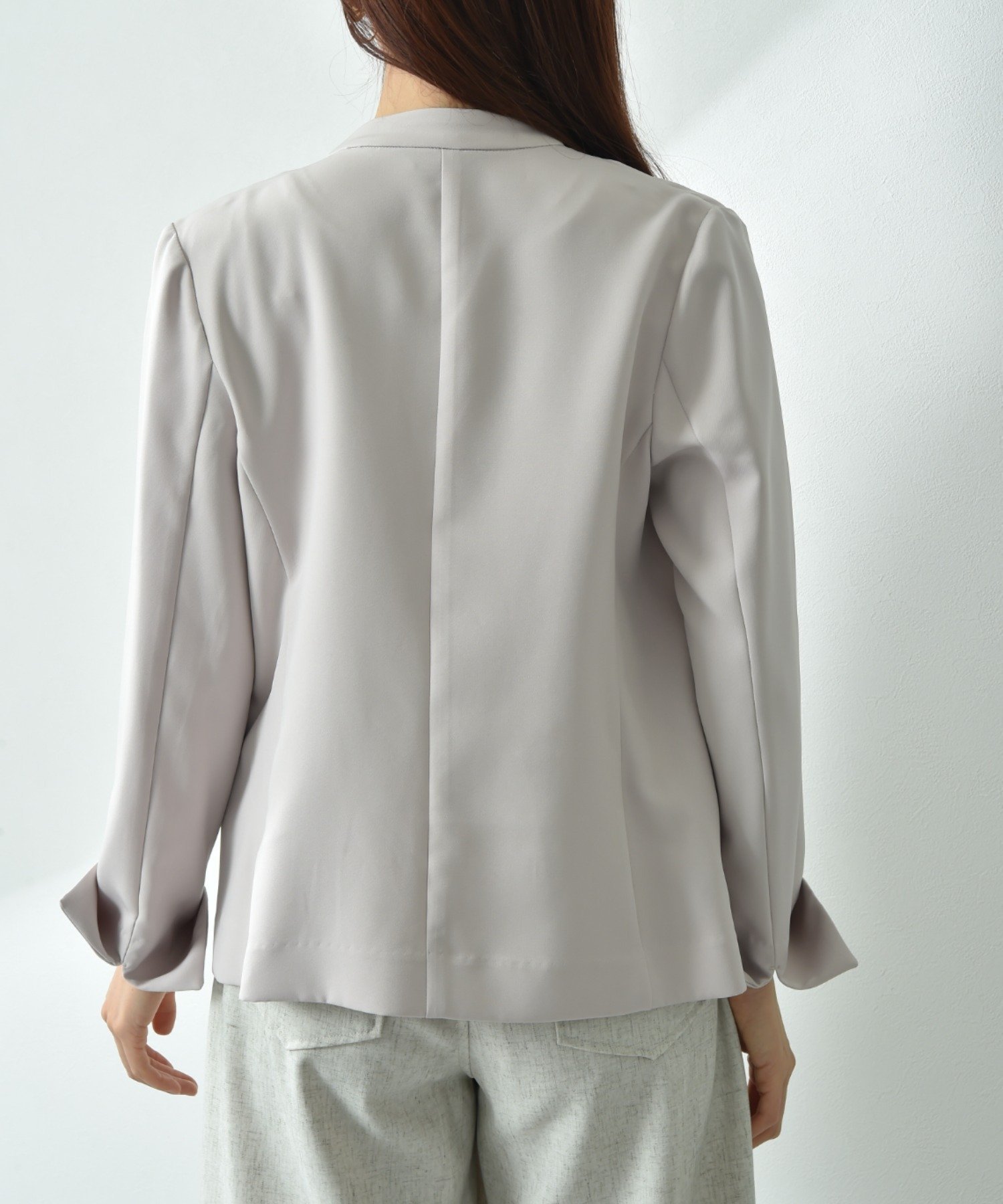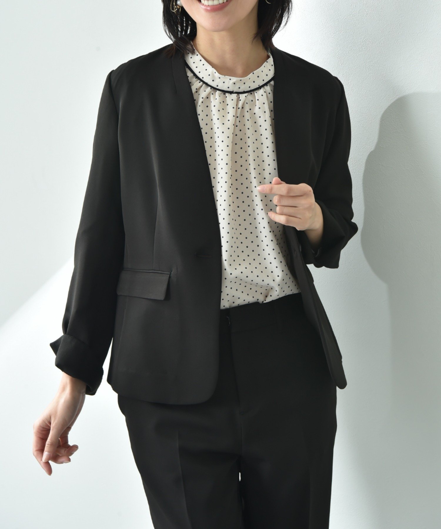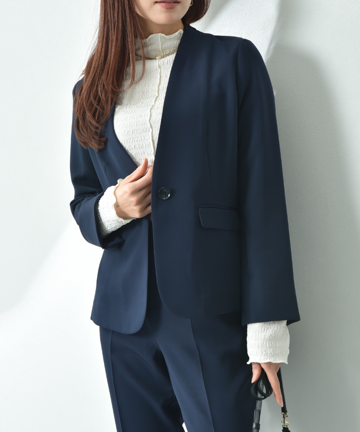 【SALE/40%OFF】INTERPLANET 【マシーンウォッシャブル】ダブルクロスカラーレスジャケット インタープラネット ジャケット・アウター ノーカラージャケット ブラック ネイビー ベージュ【送料無料】