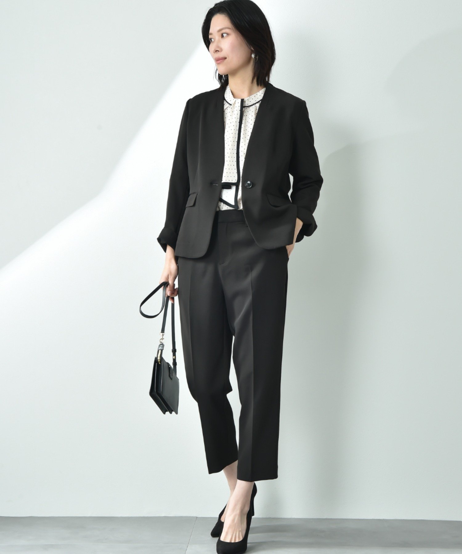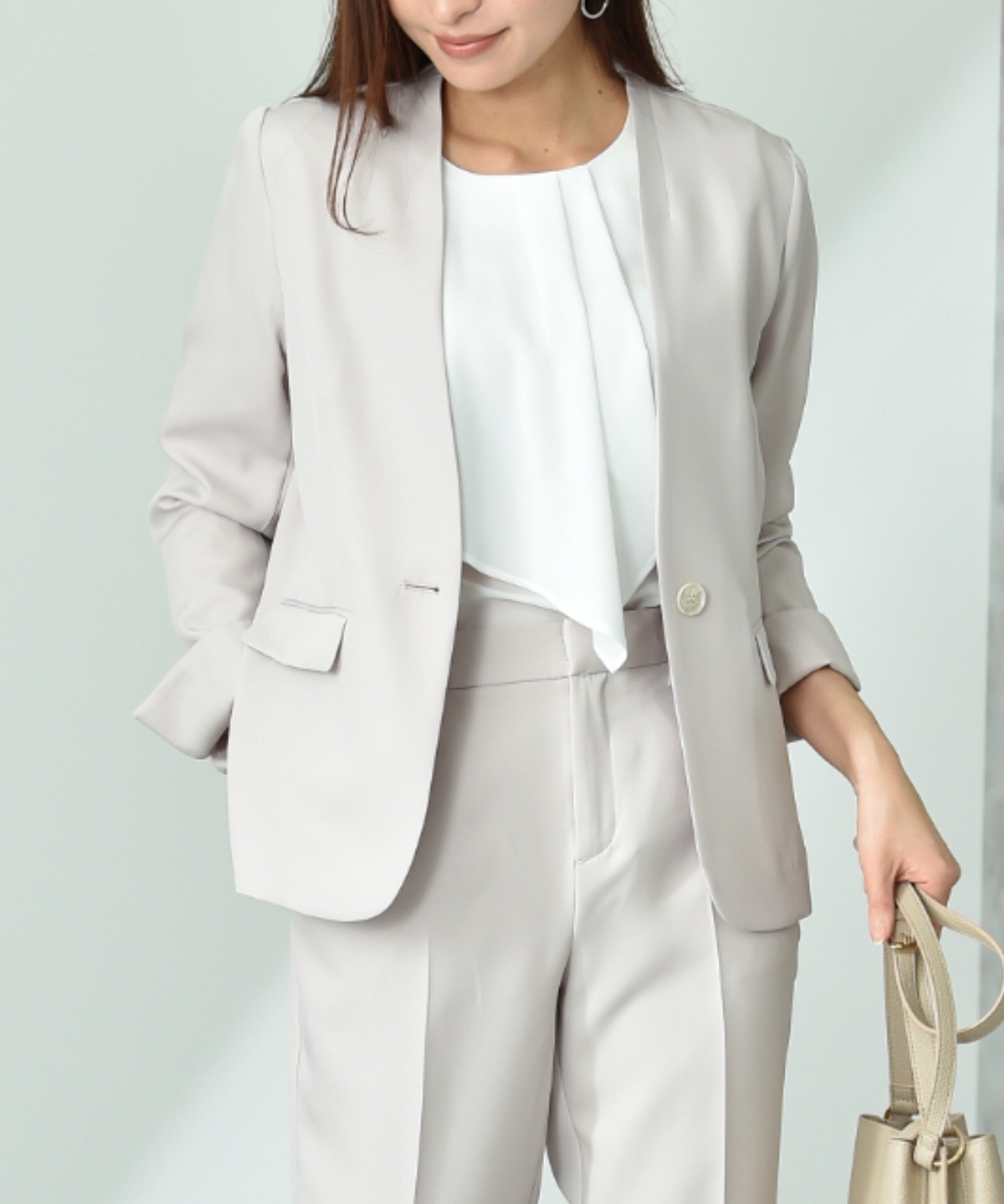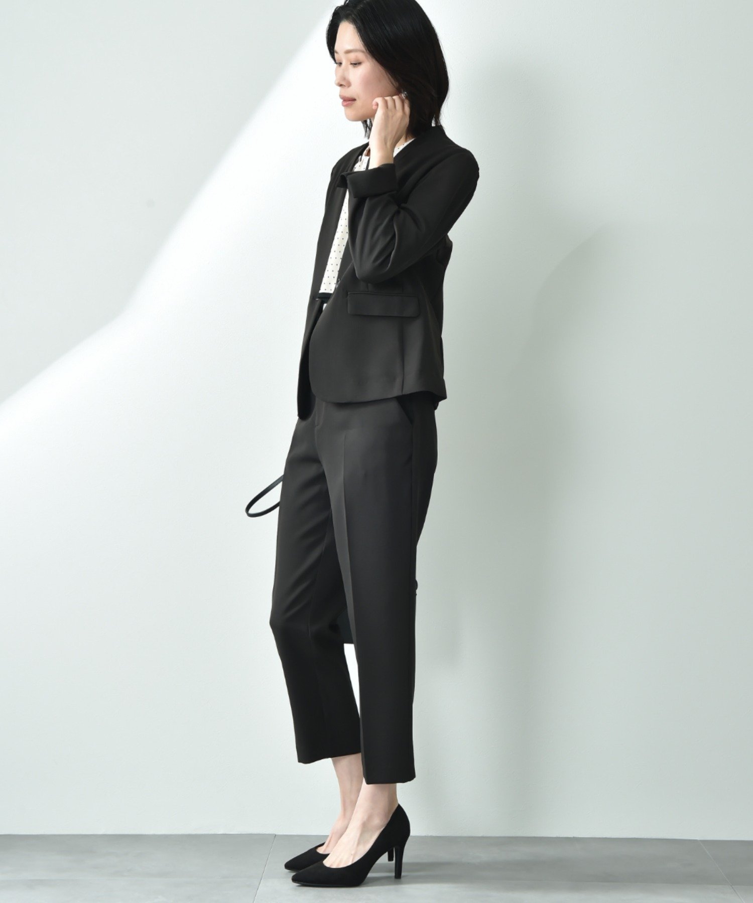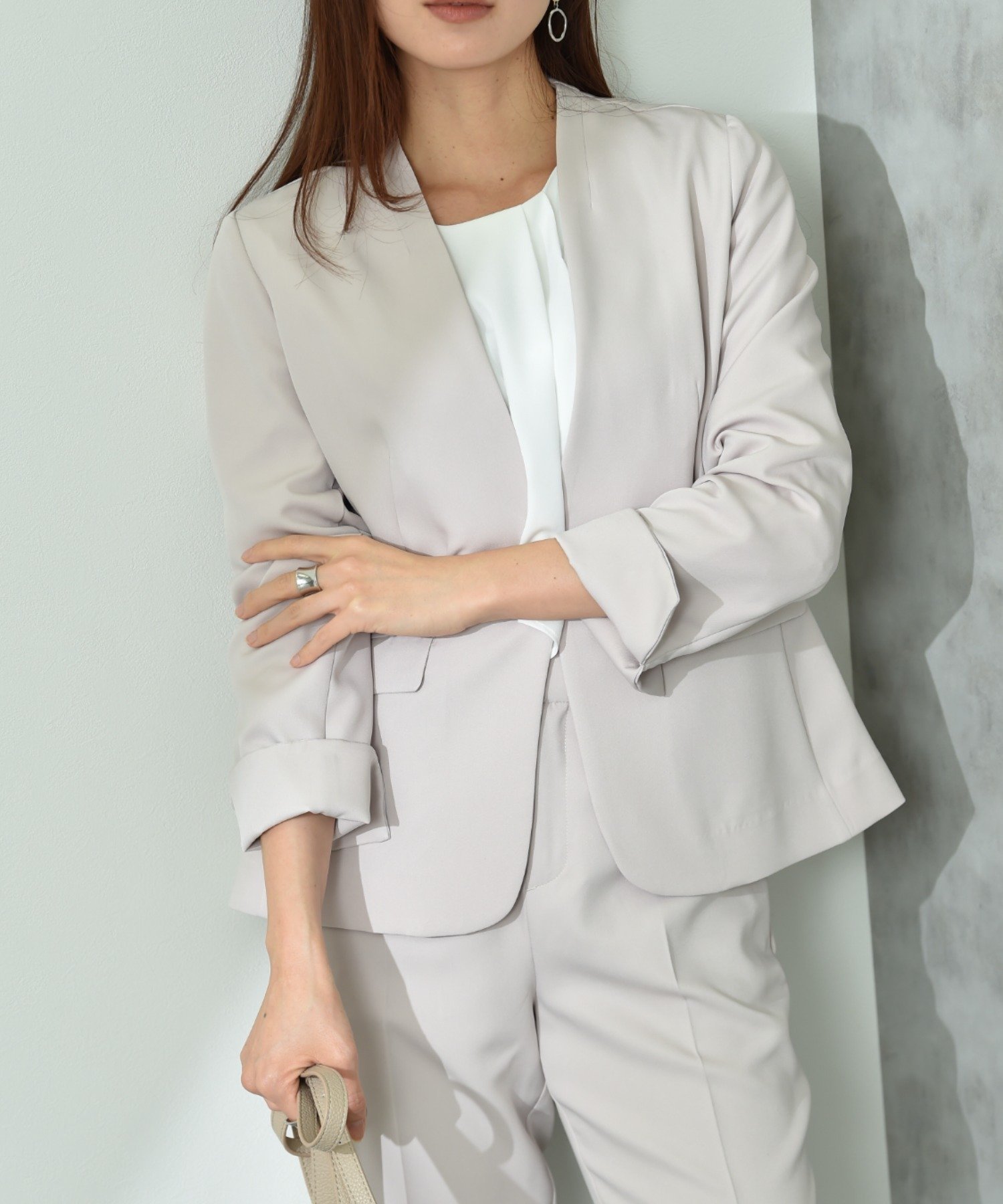 【SALE/40%OFF】INTERPLANET 【マシーンウォッシャブル】ダブルクロスカラーレスジャケット インタープラネット ジャケット・アウター ノーカラージャケット ブラック ネイビー ベージュ【送料無料】