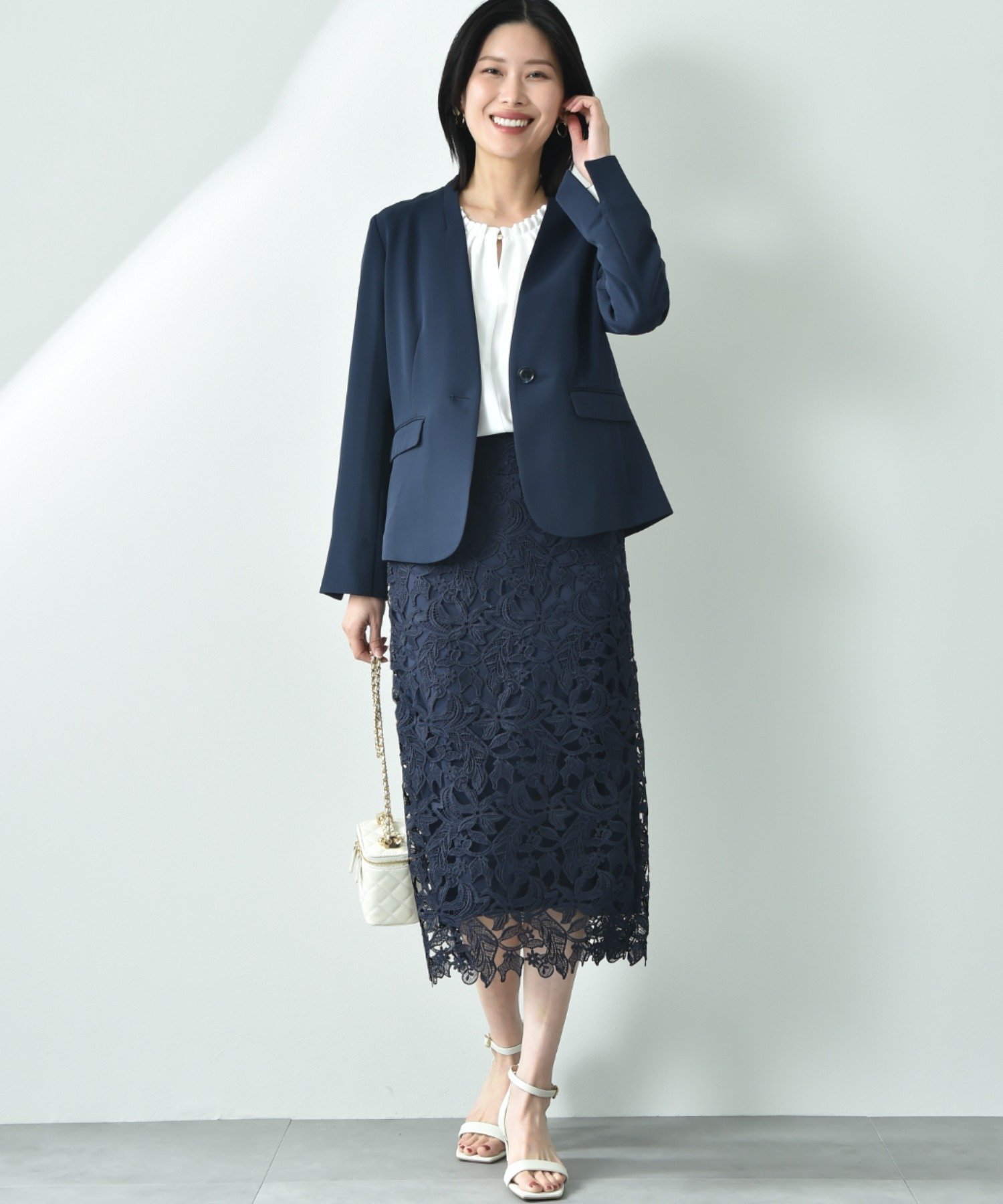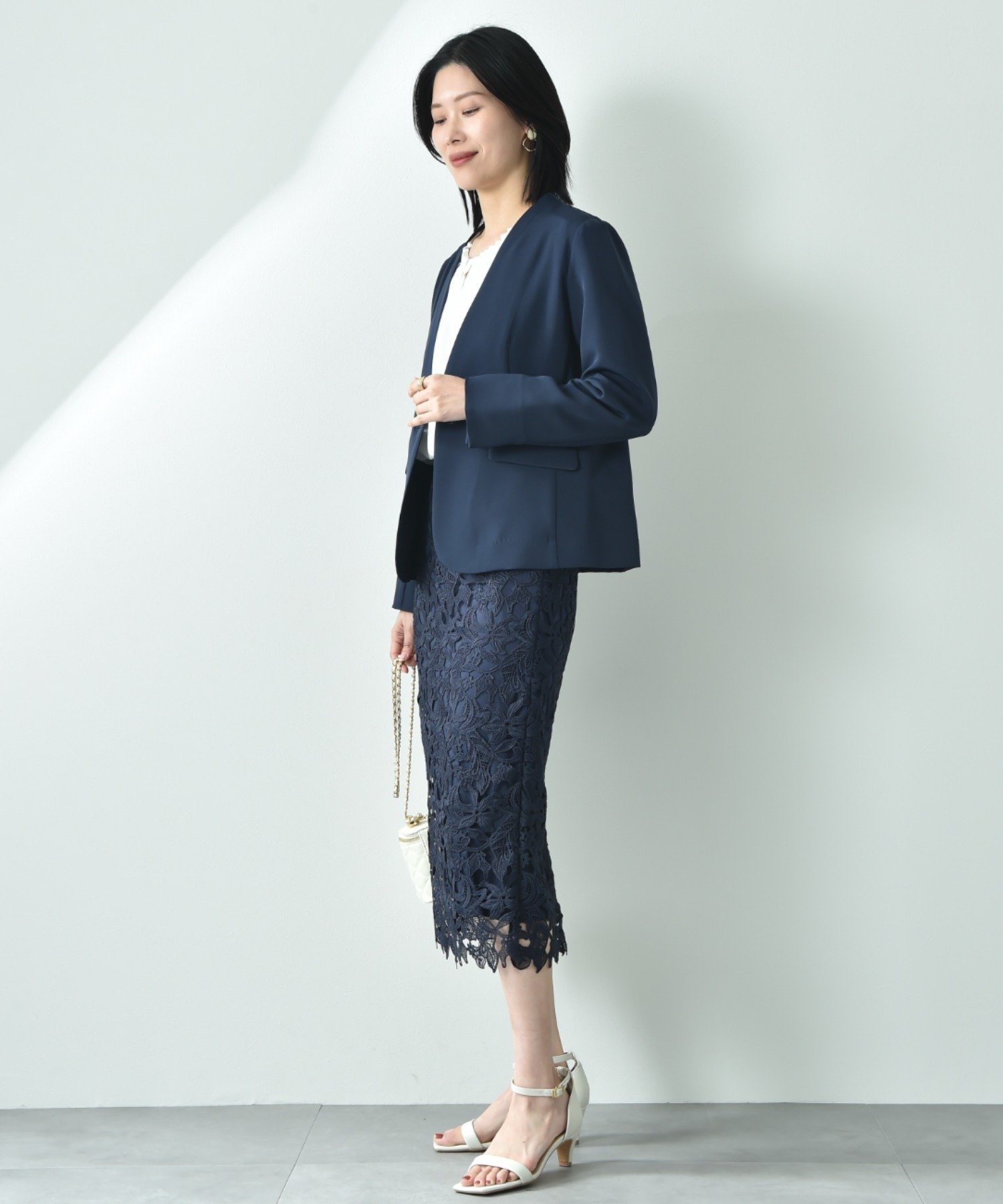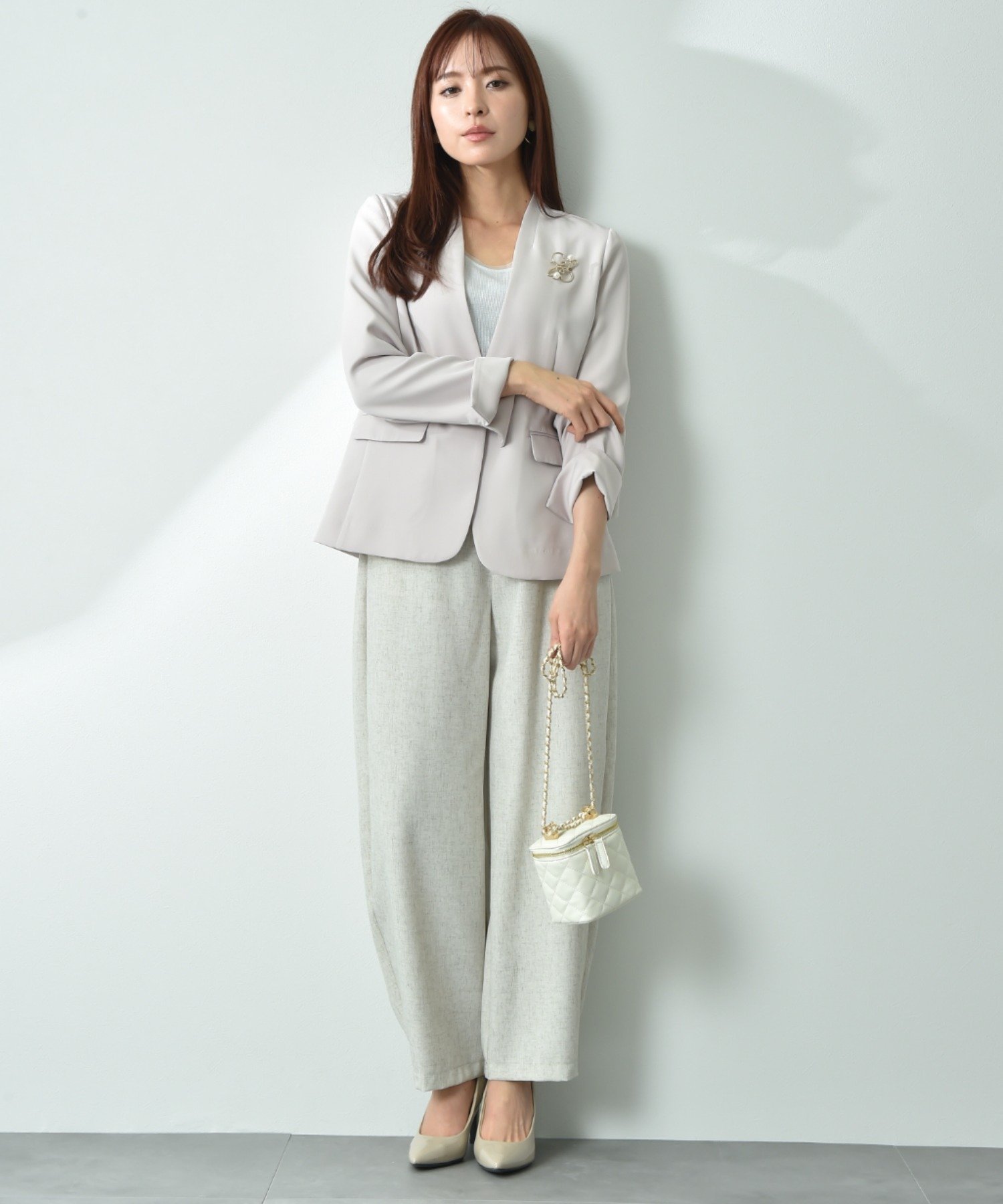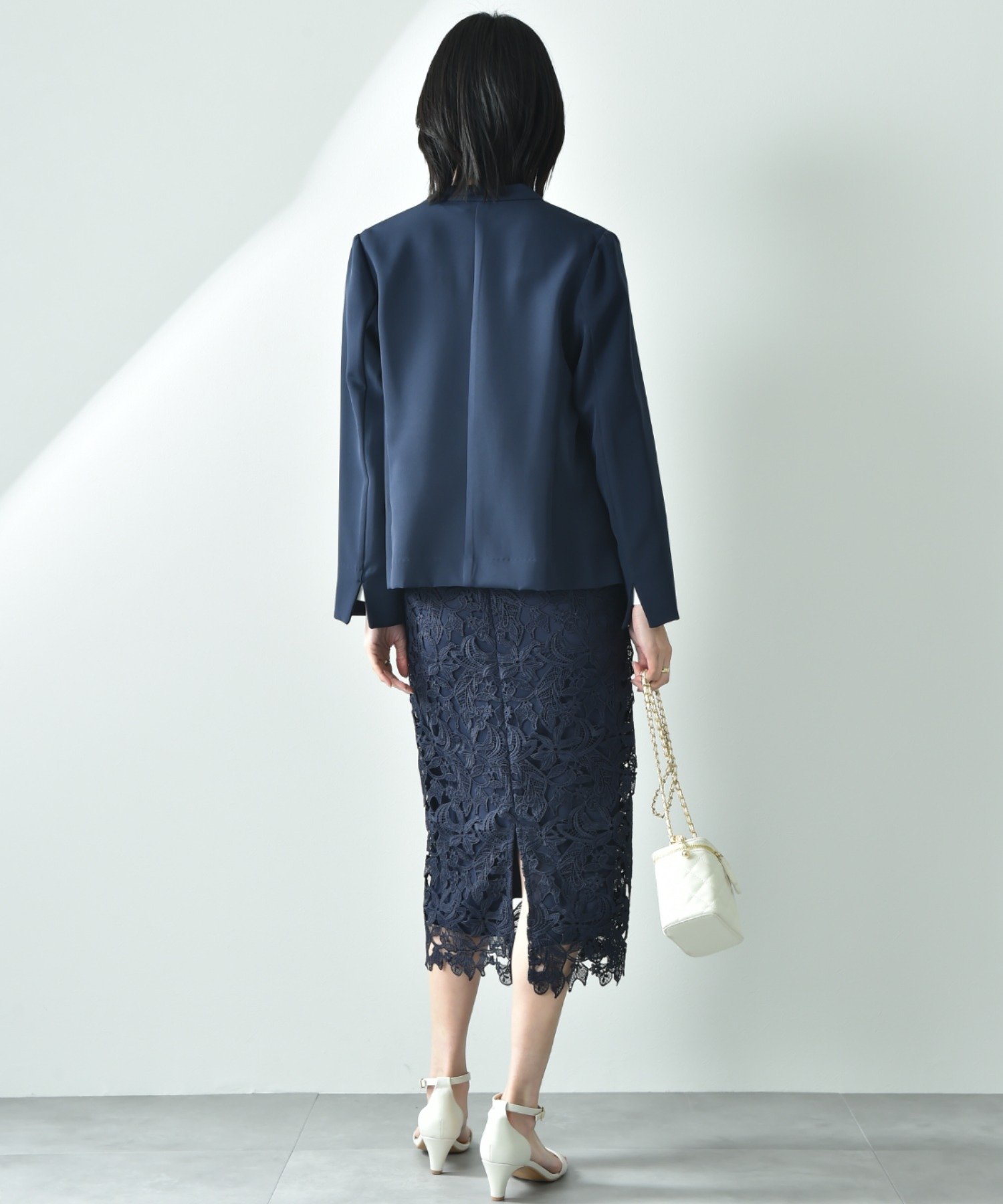 【SALE/40%OFF】INTERPLANET 【マシーンウォッシャブル】ダブルクロスカラーレスジャケット インタープラネット ジャケット・アウター ノーカラージャケット ブラック ネイビー ベージュ【送料無料】