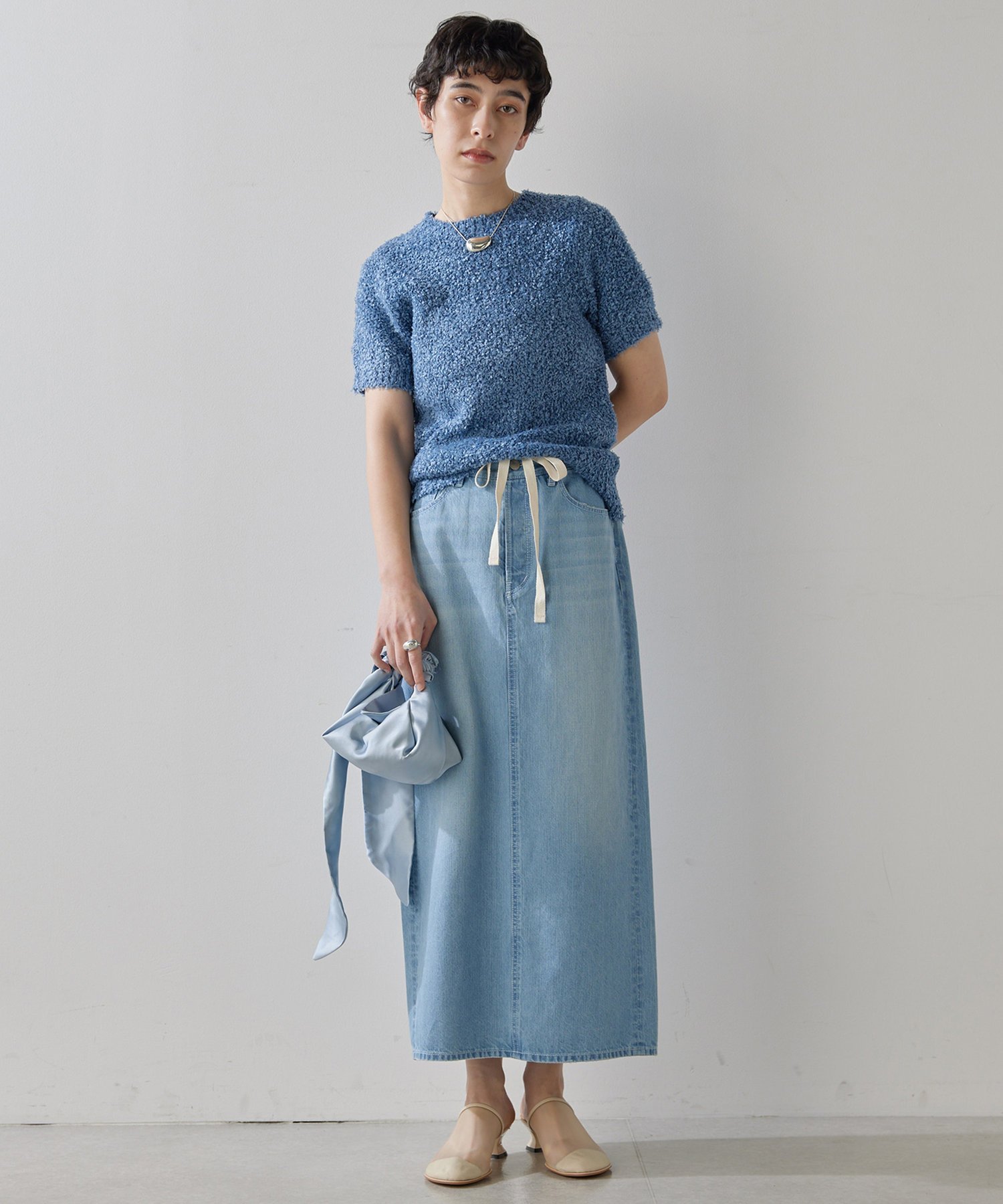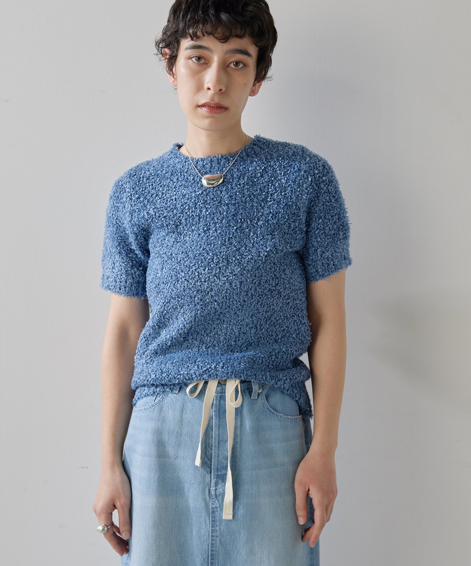Whim Gazette ハンソデTWEEDYニットプルオーバー ウィム ガゼット トップス ニット ベージュ ブルー【送料無料】