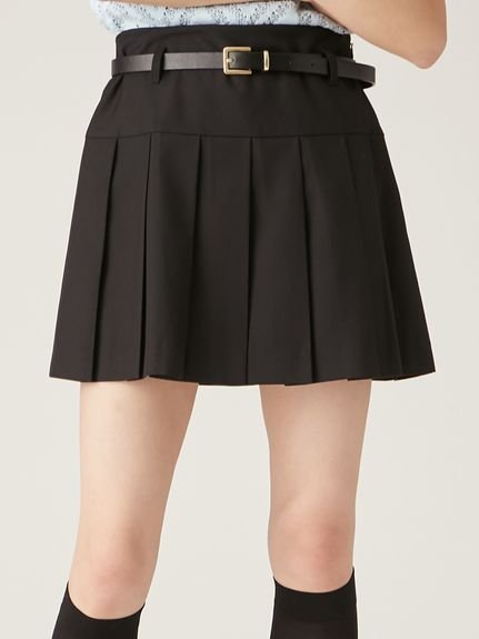 LILY BROWN ベルト付きプリーツスカショ リリーブラウン パンツ その他のパンツ ブラック グレー ホワイト【送料無料】
