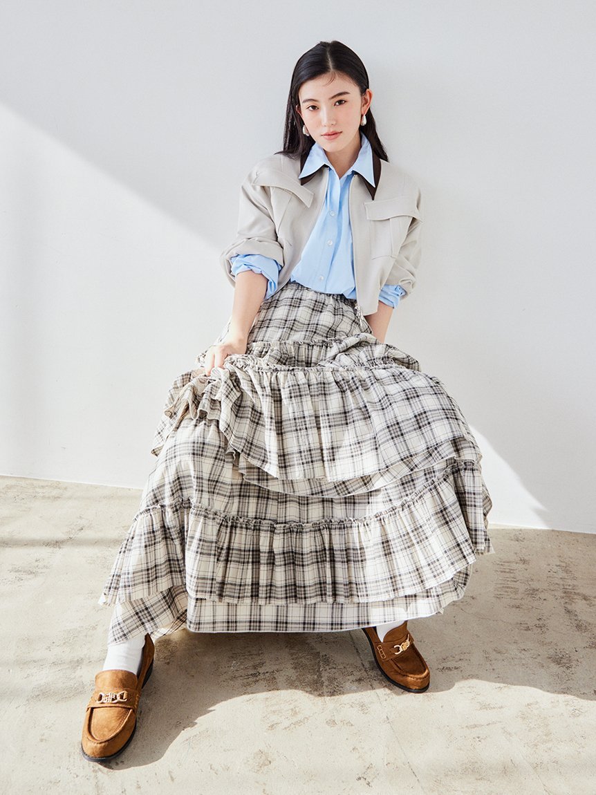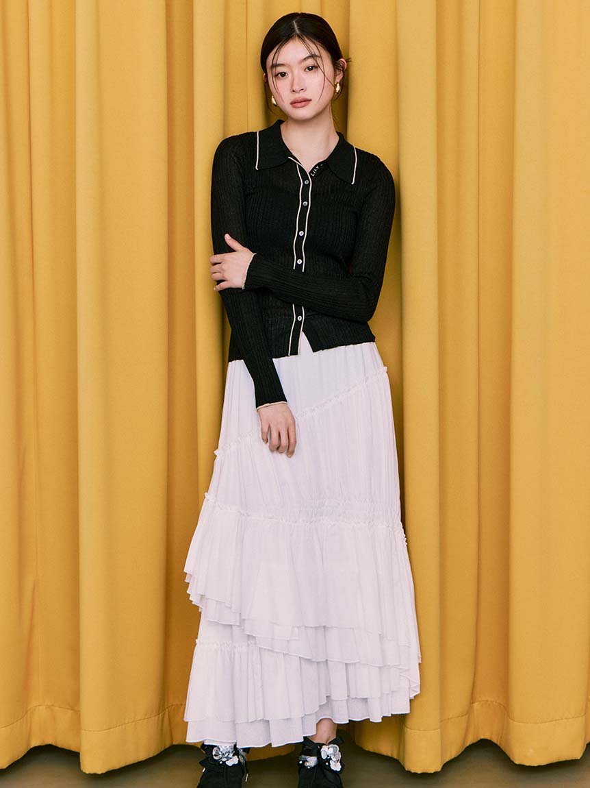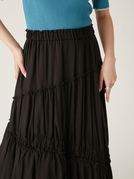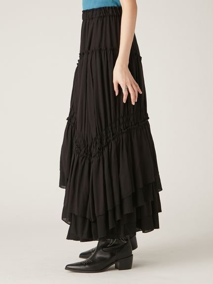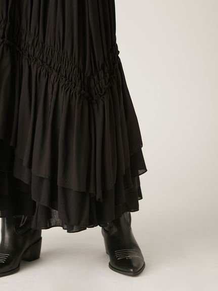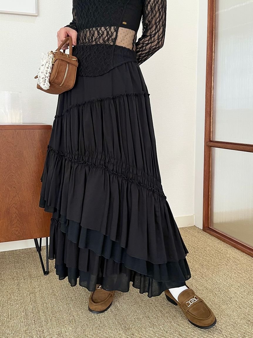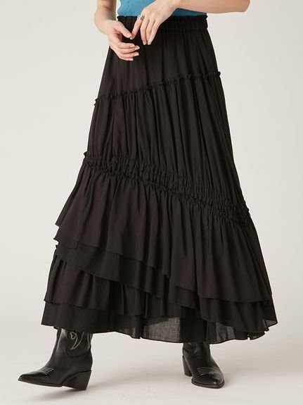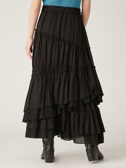 LILY BROWN 【WEB限定00サイズ】アシンメトリーティアードスカート リリーブラウン スカート ロング・マキシスカート ブラック ホワイト【送料無料】