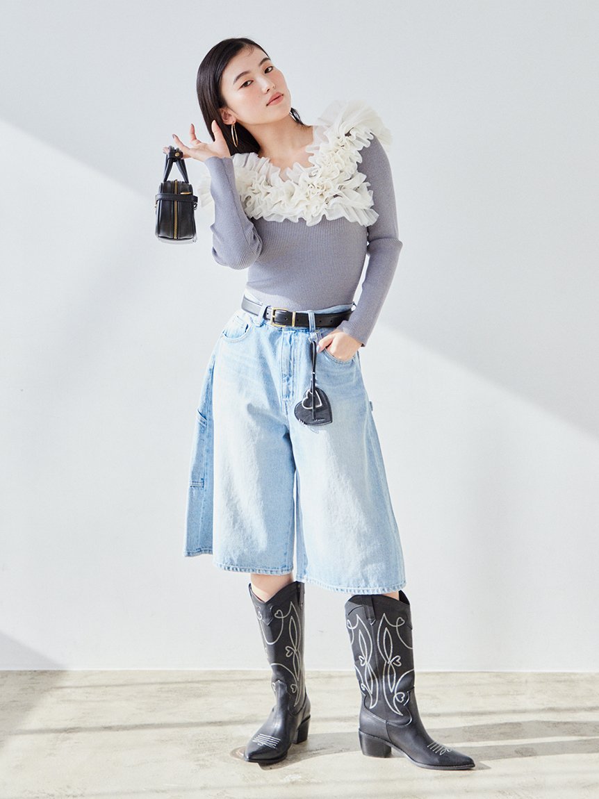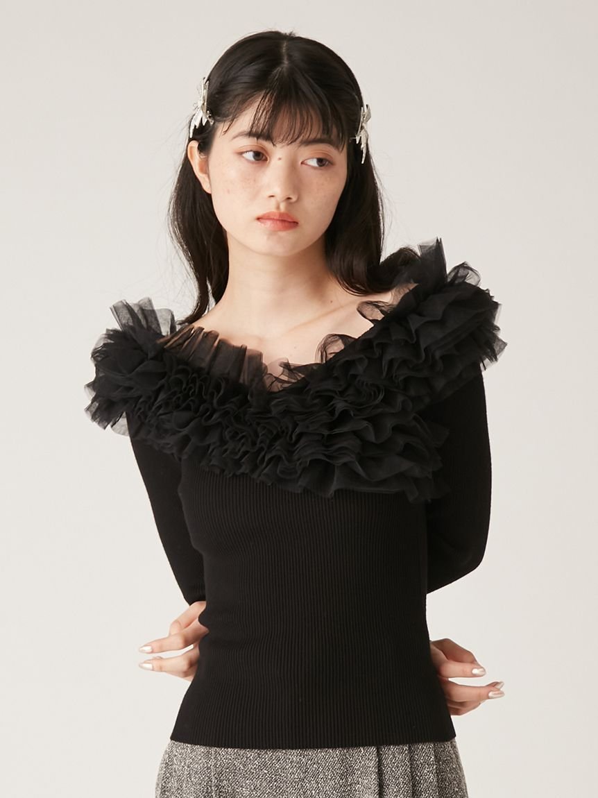 【SALE/20%OFF】LILY BROWN ボリュームチュールドッキングニットトップス リリーブラウン トップス ニット ブラック グレー ホワイト【送料無料】