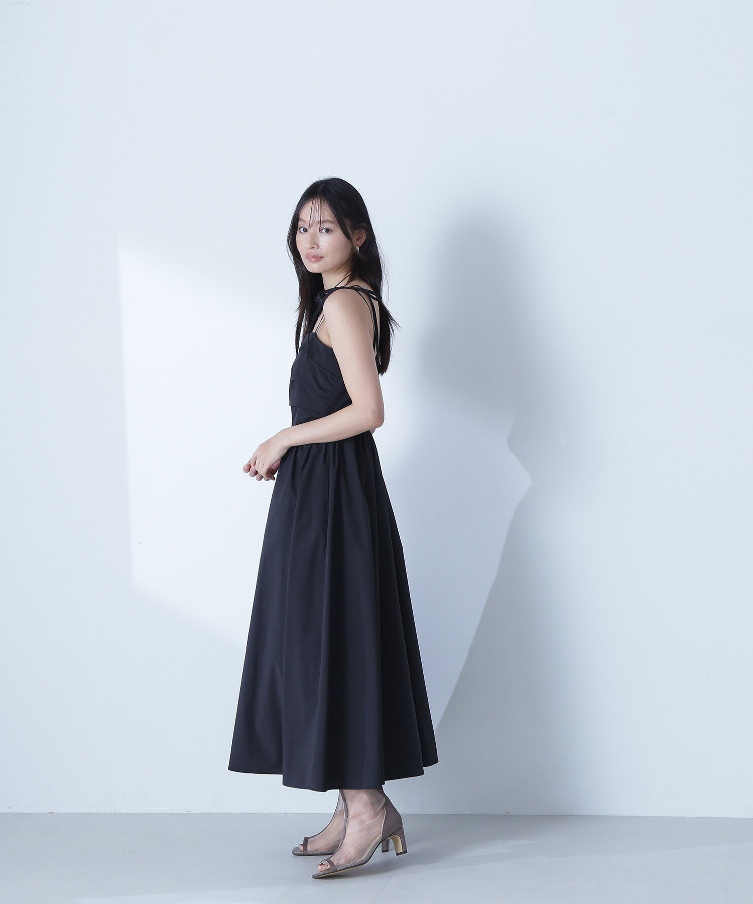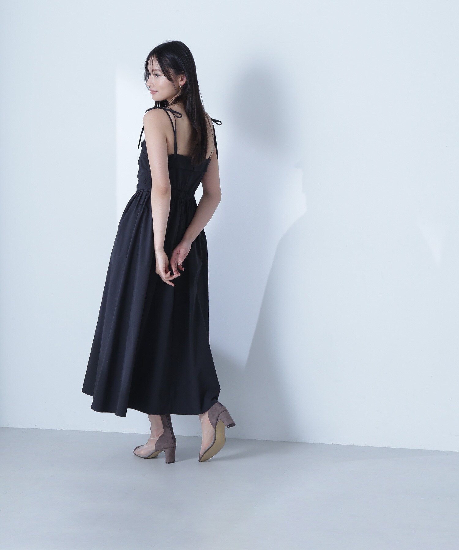 NATURAL BEAUTY BASIC ギャザータフタキャミワンピース ナチュラルビューティベーシック ワンピース・ドレス ワンピース ベージュ ブラック【送料無料】