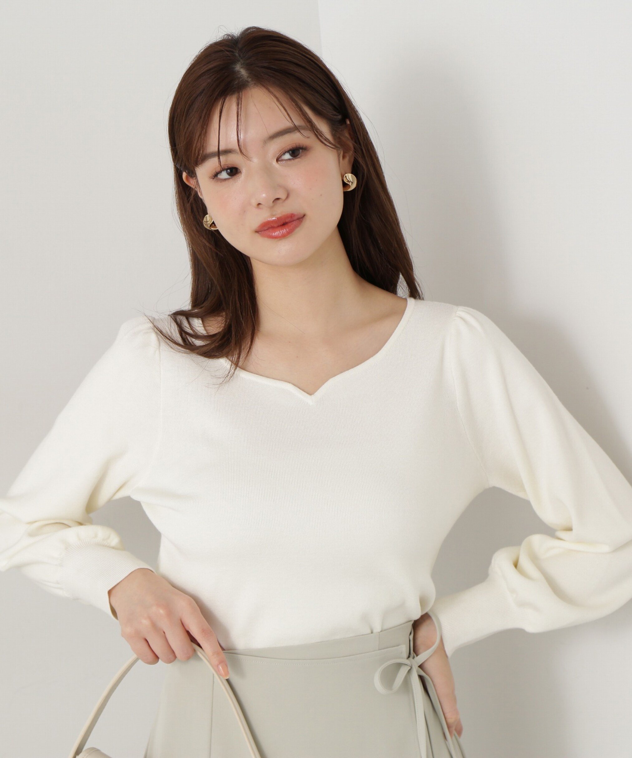 PROPORTION BODY DRESSING ハートネック総針ニット プロポーションボディドレッシング トップス ニット ピンク ホワイト グリーン【送料無料】