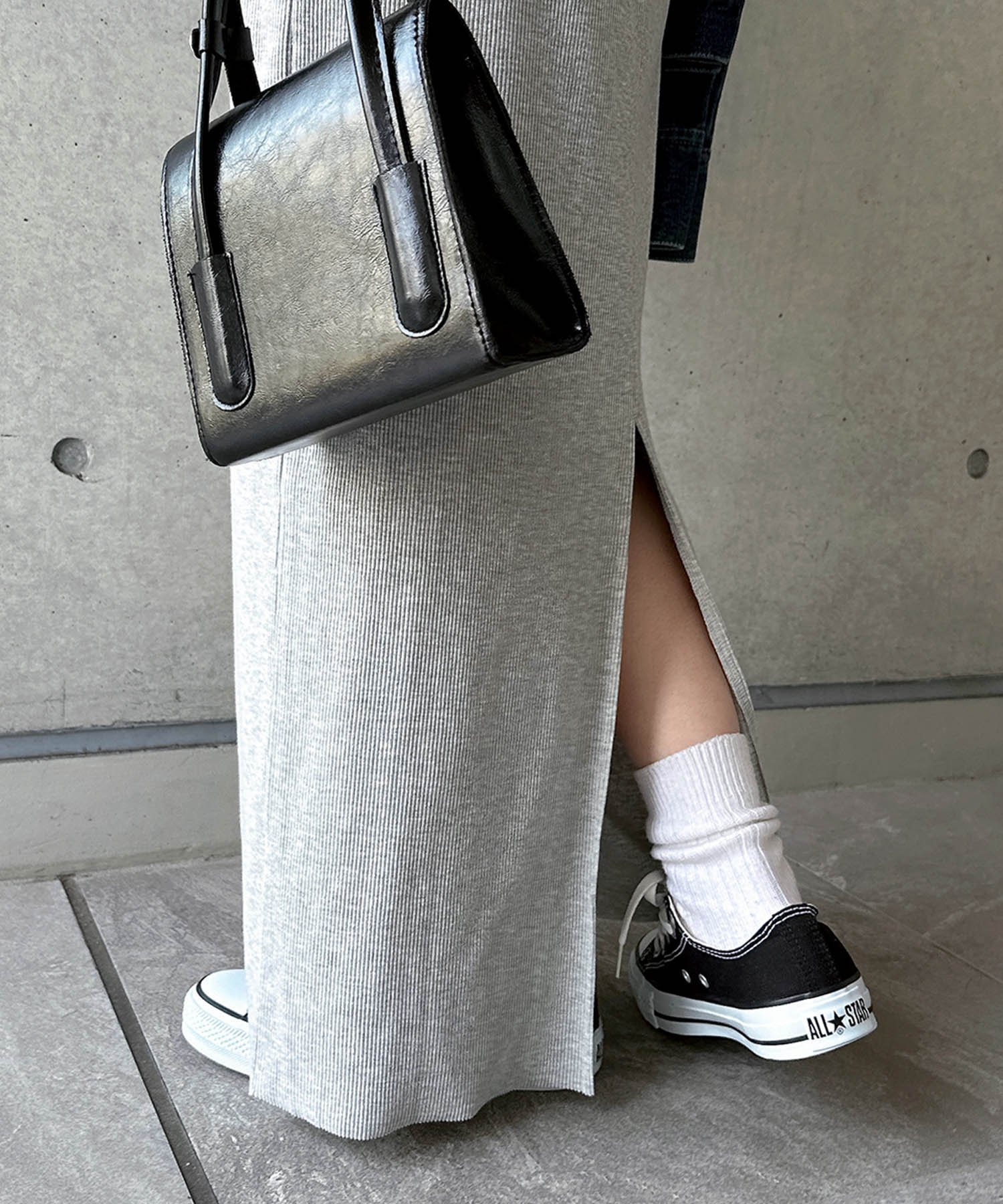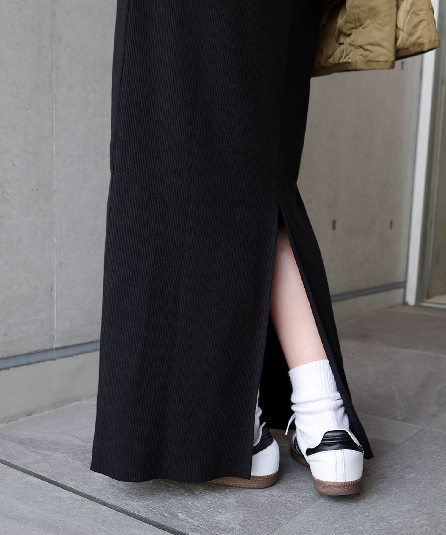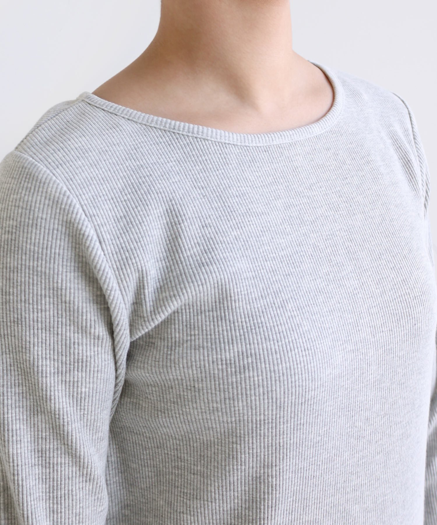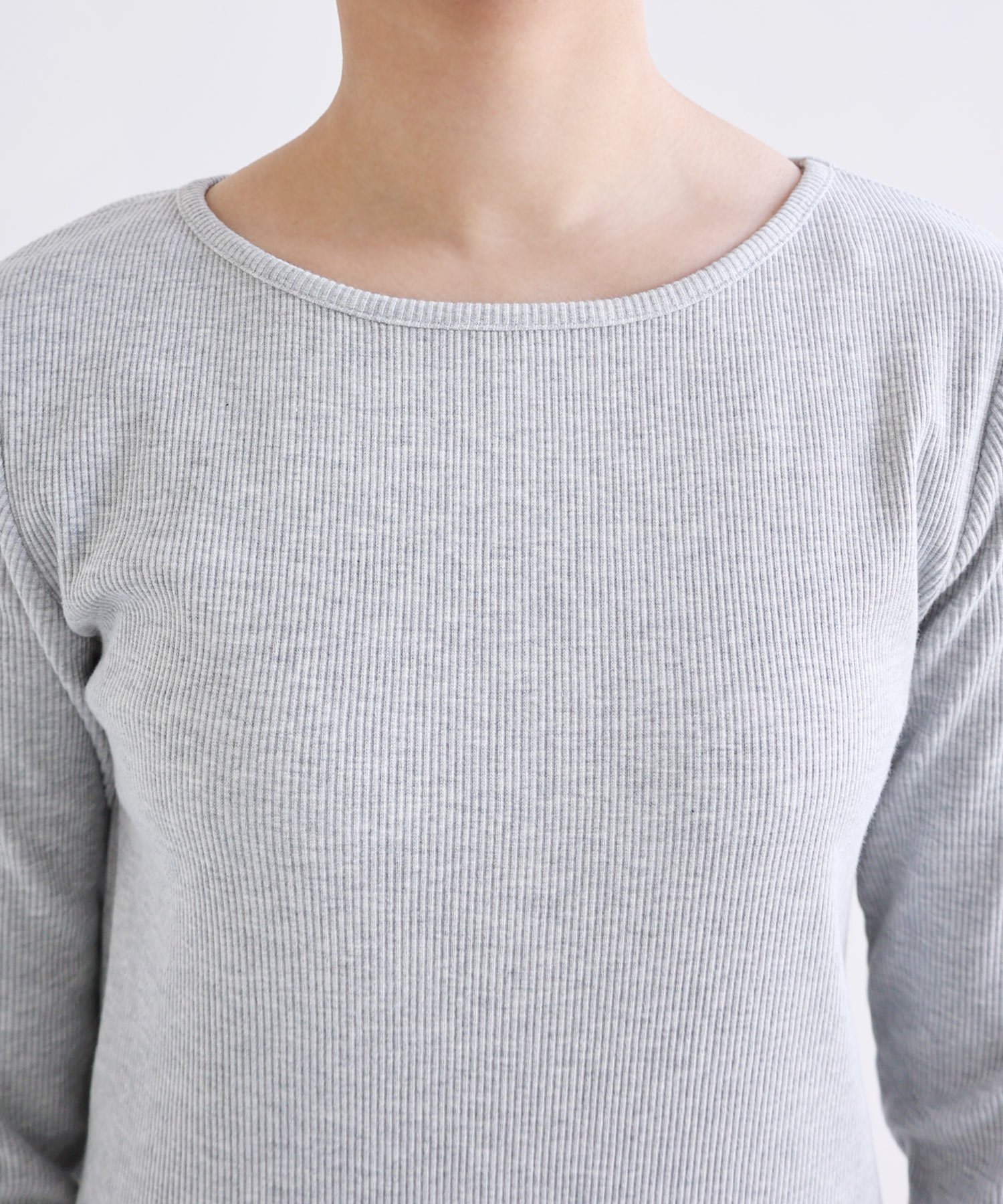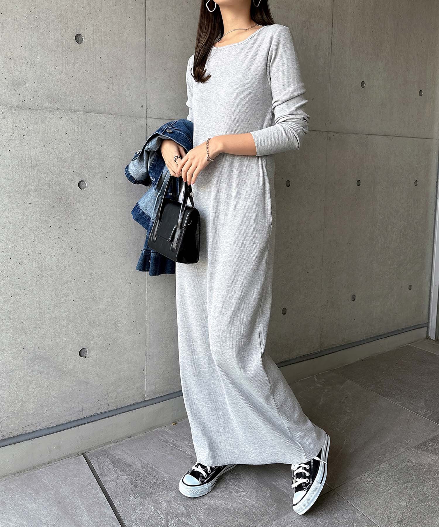 【SALE/25%OFF】andme セルフカットリブ ボートネック 長袖 ワンピース アンドミー ワンピース・ドレス ワンピース ブラック グレー【送料無料】