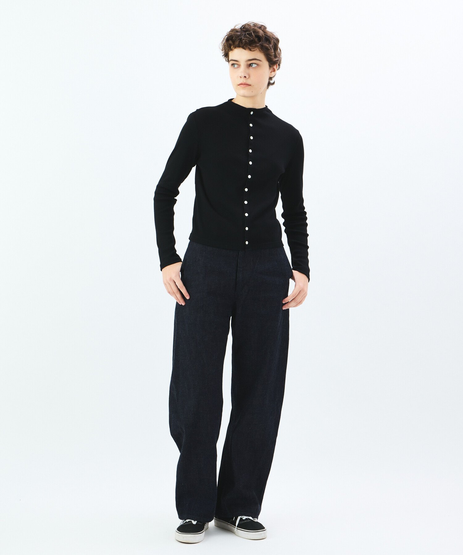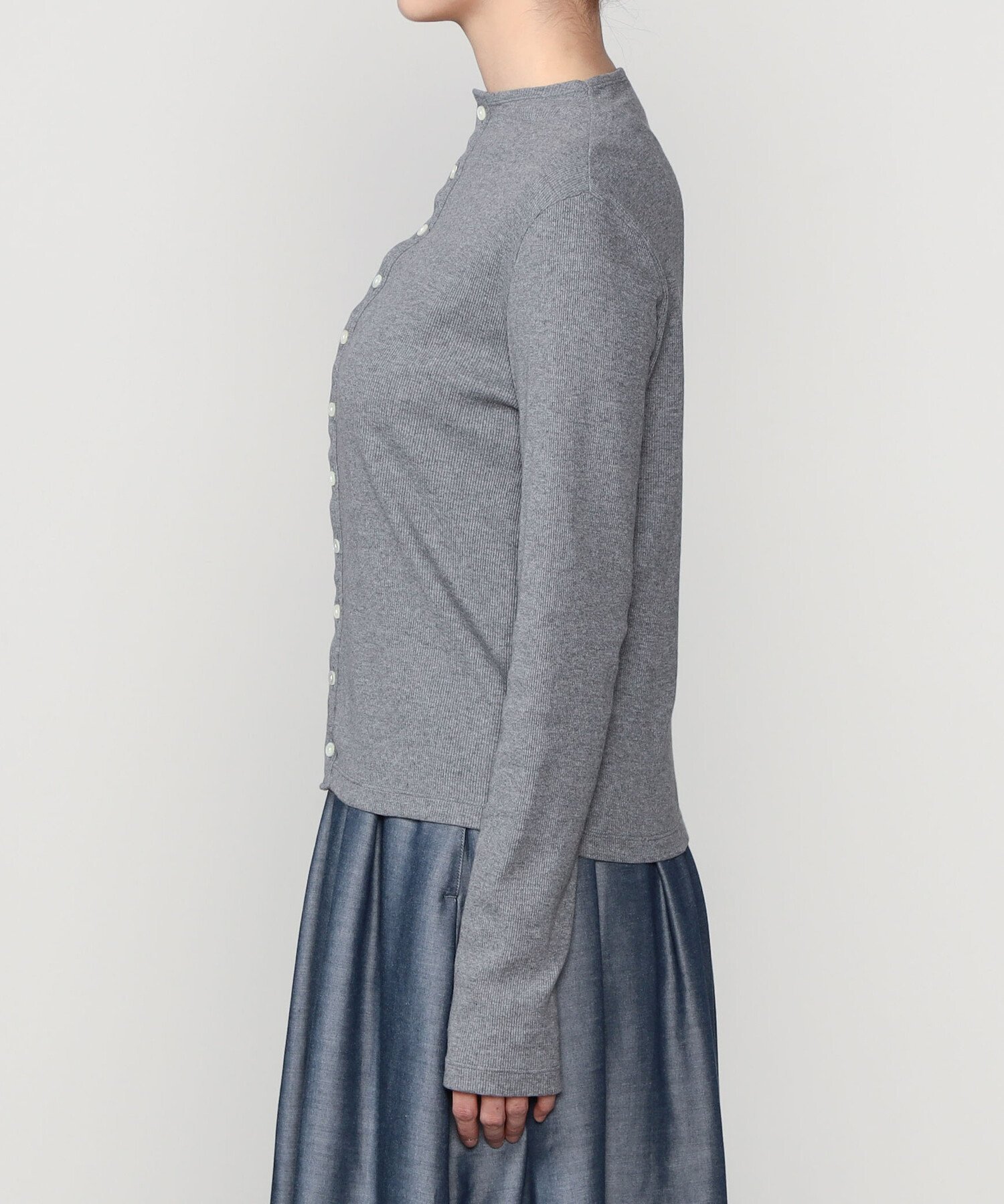 Bshop ORCIVAL | リブ モックネックカーディガン WOMEN ビショップ トップス カーディガン ベージュ ブラック【送料無料】