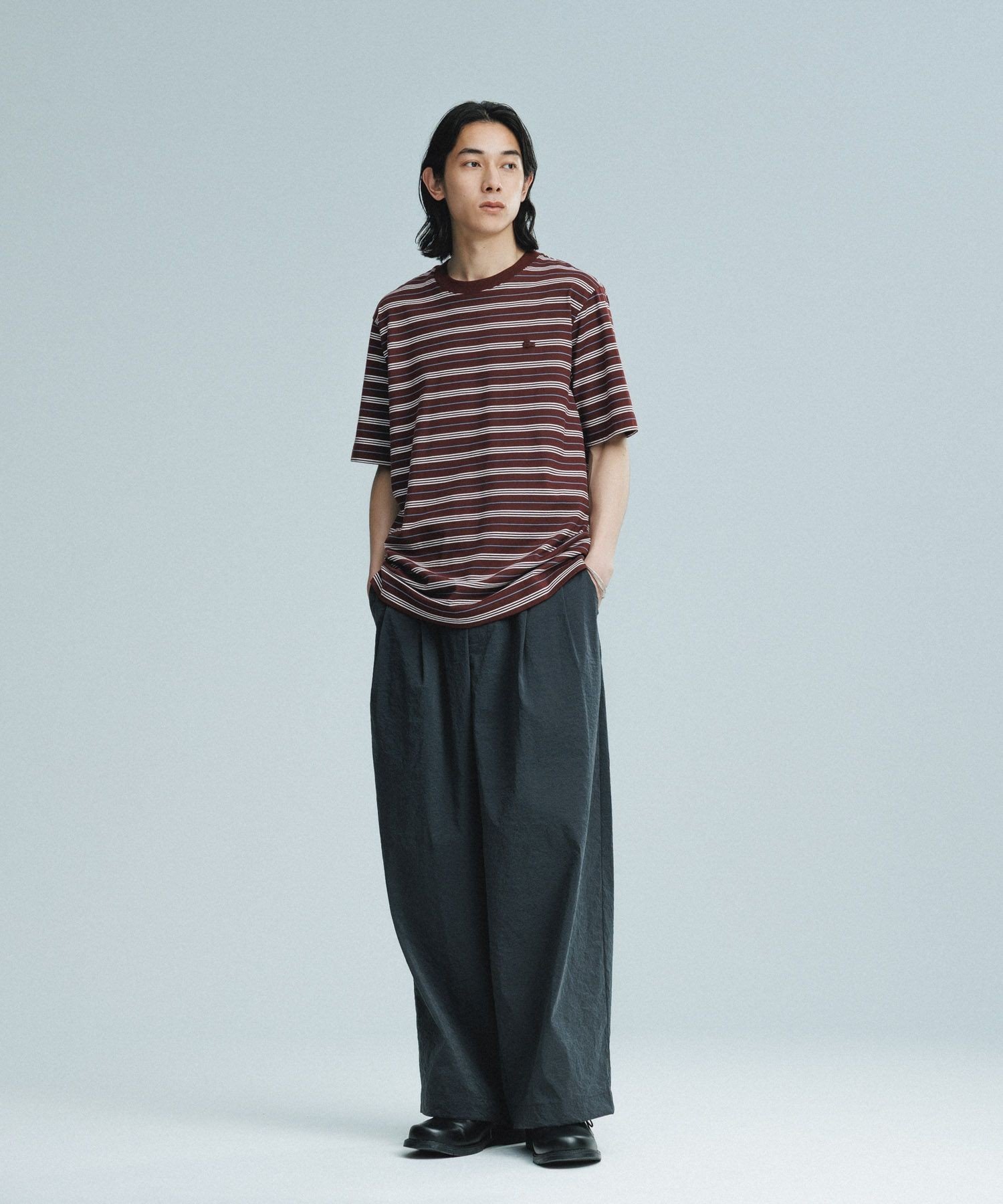ADAM ET ROPE' HOMME ストレッチナイロン ボリューム イージー ワイドパンツ / 接触冷感 / セットアップ対応 アダムエロペ パンツ その他のパンツ グレー ブラック【送料無料】
