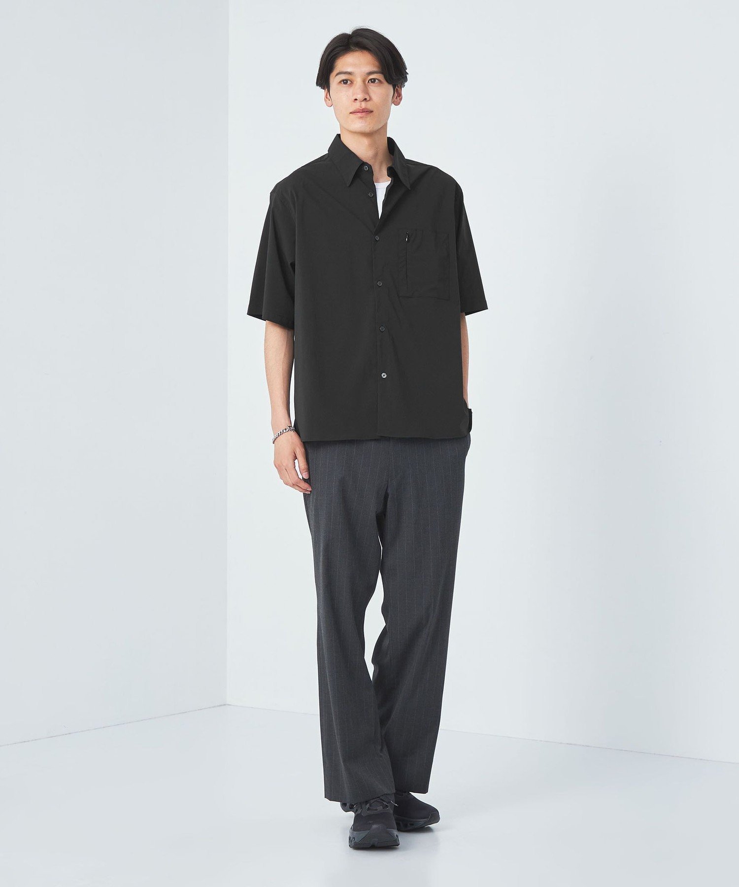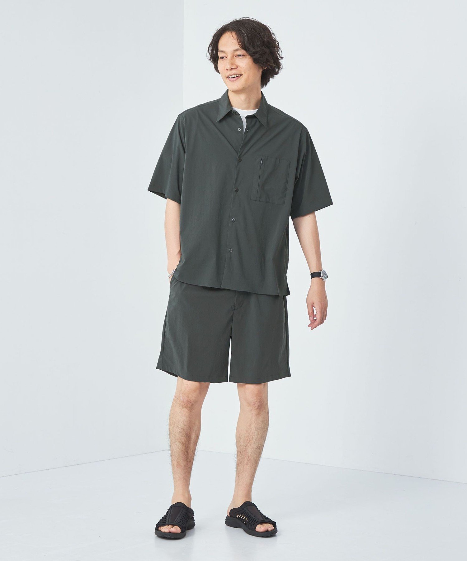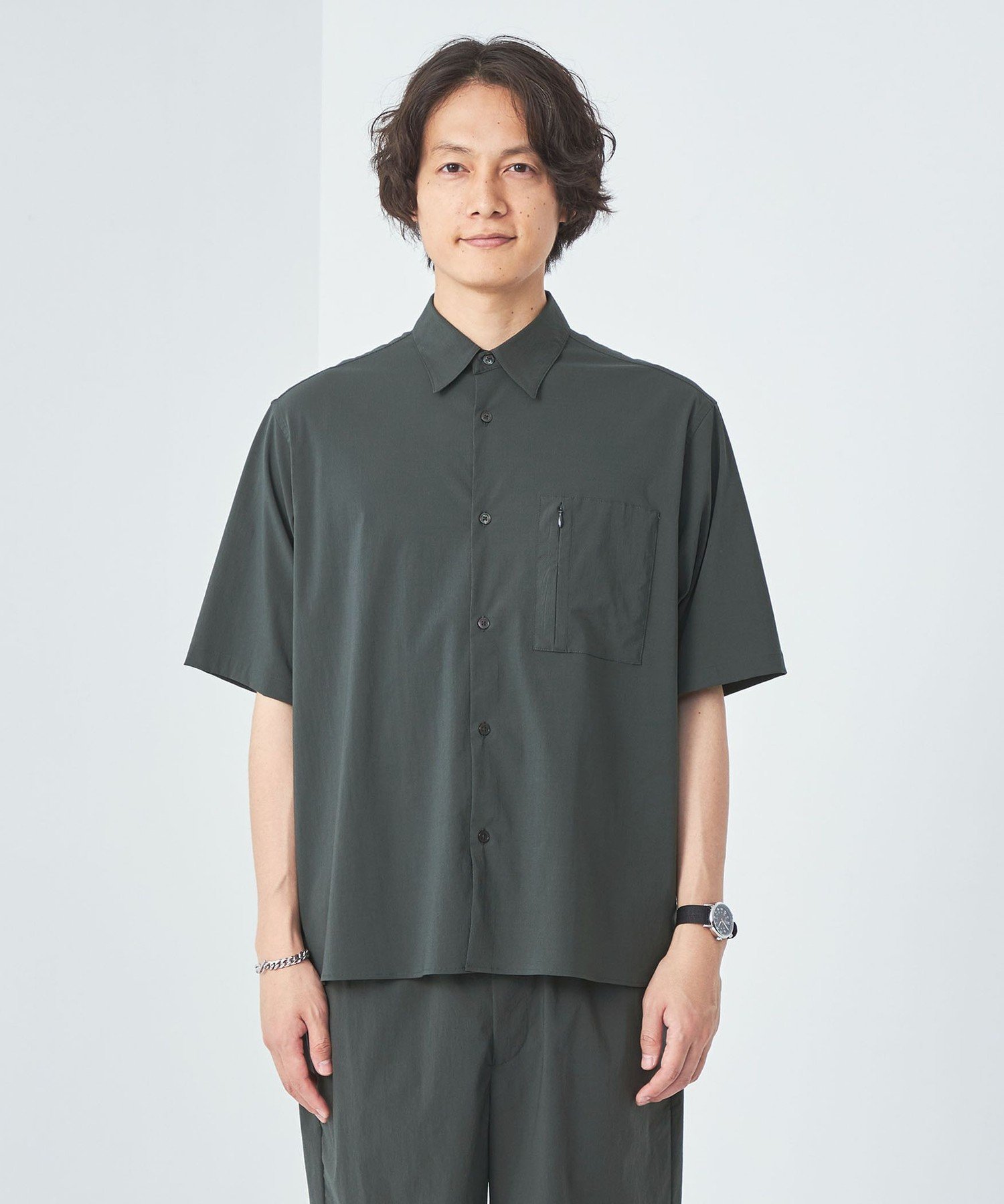 【SALE/30%OFF】UNITED ARROWS green label relaxing WONDER CLOTH ジャストルーズ レギュラーカラー シャツ -ストレッチ・接触冷感- ユナイテッドアローズ アウトレット トップス シャツ・ブラウス グレー ブラック【送料無料】