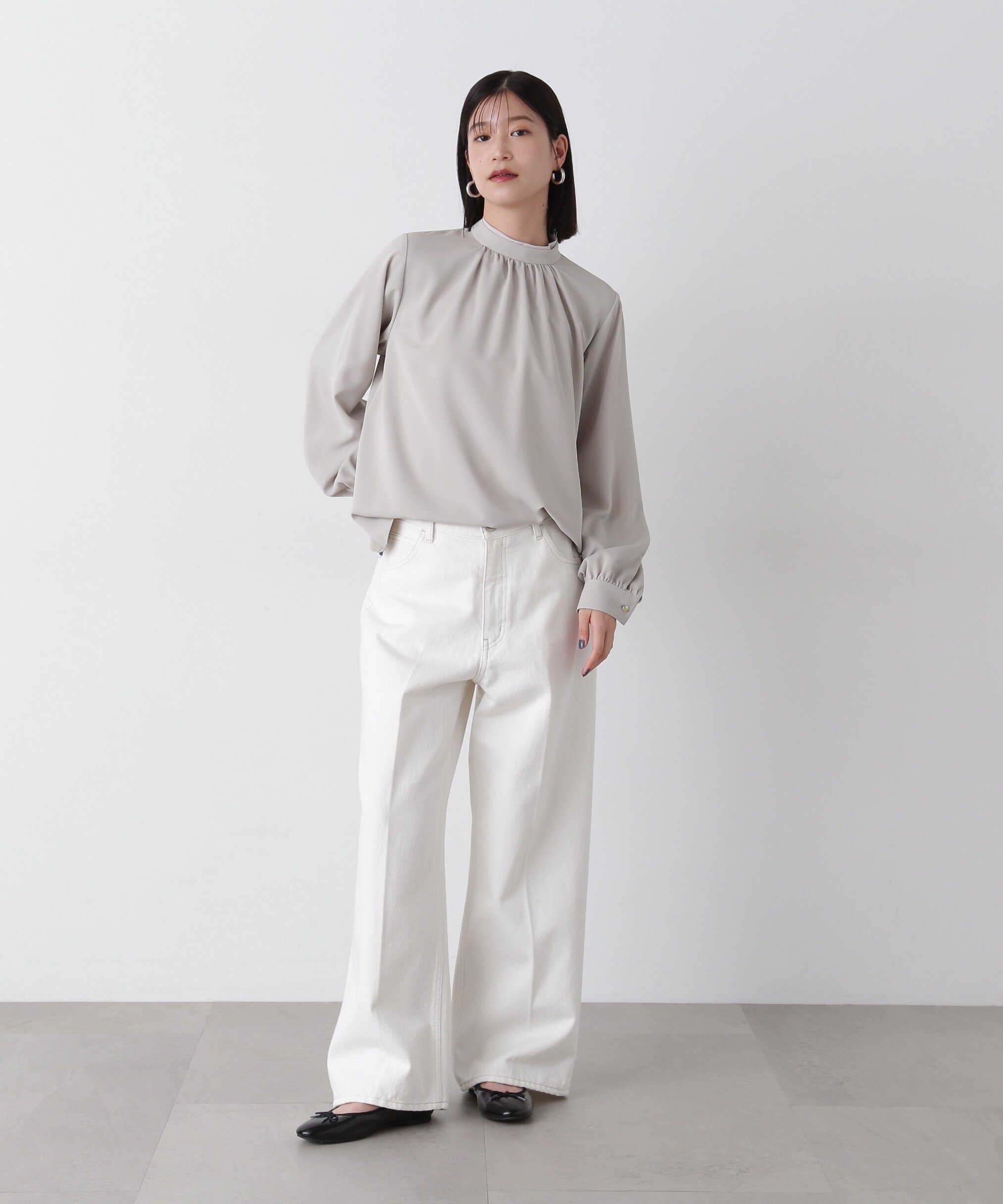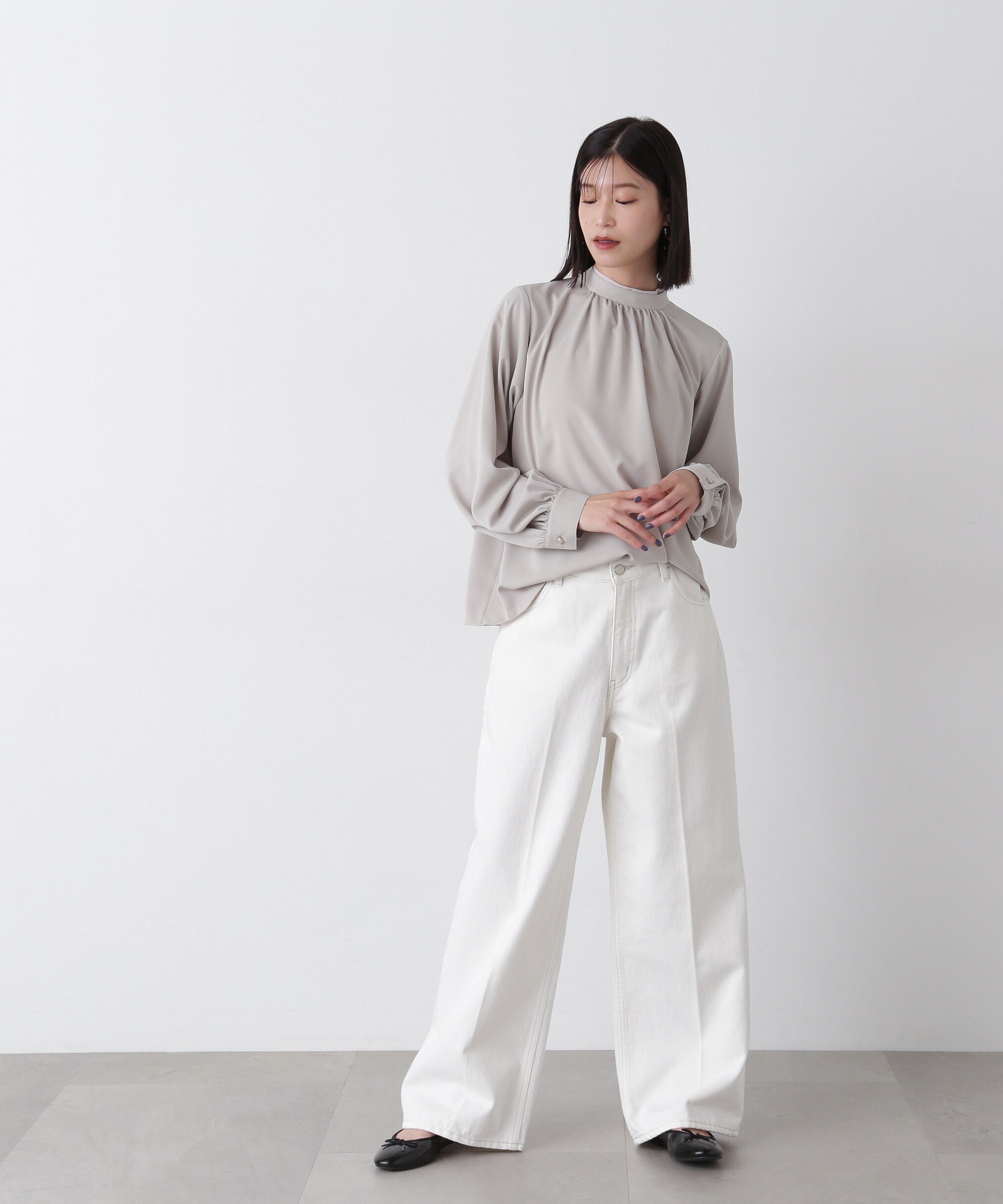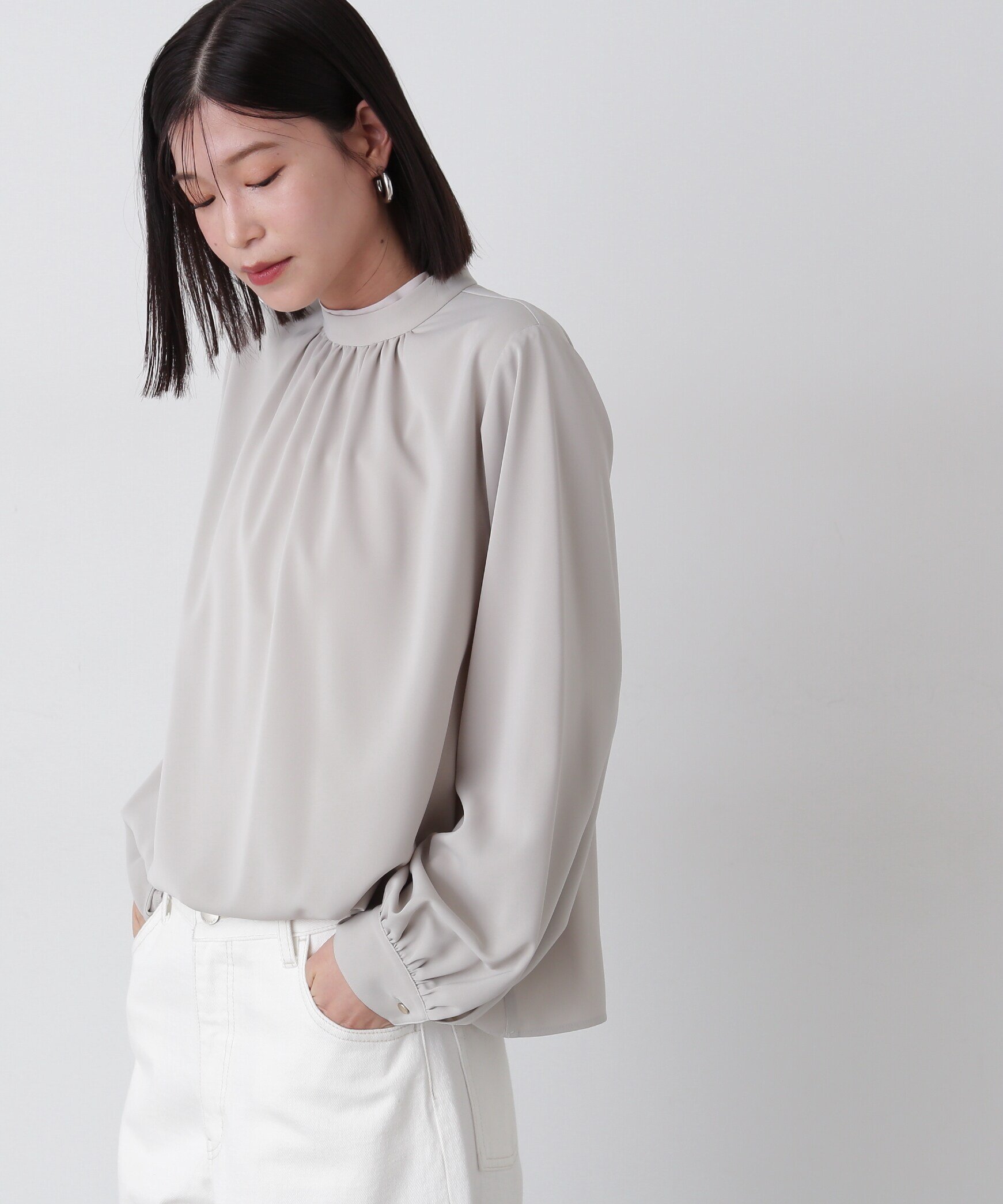 N. Natural Beauty Basic シアーレイヤードネックブラウス エヌ ナチュラルビューティーベーシック* トップス シャツ・ブラウス ホワイト グレー ブルー【送料無料】