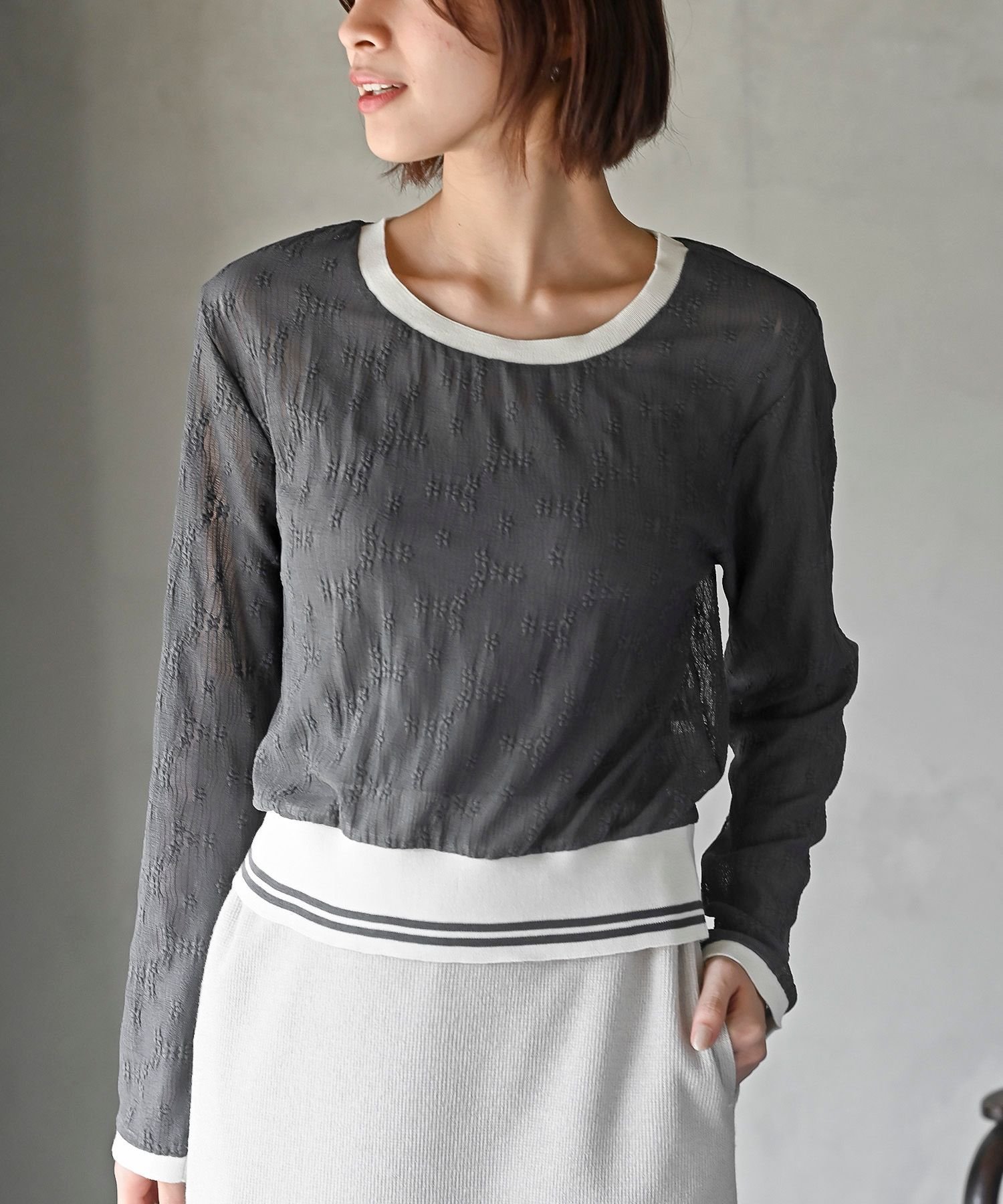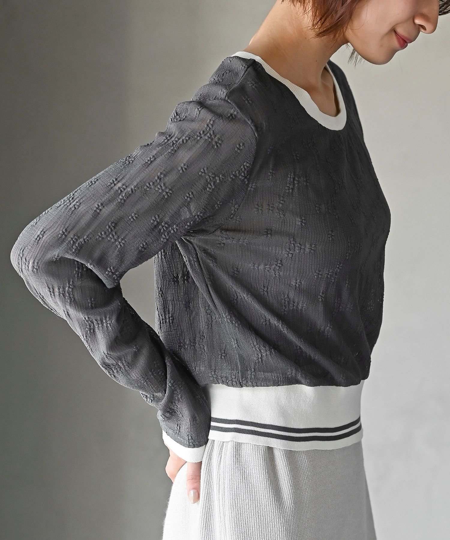 rps ラインリブレースプルオーバー アールピーエス トップス その他のトップス グレー ホワイト ブラック