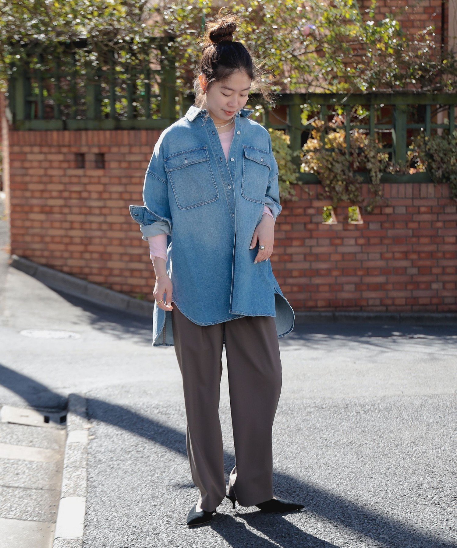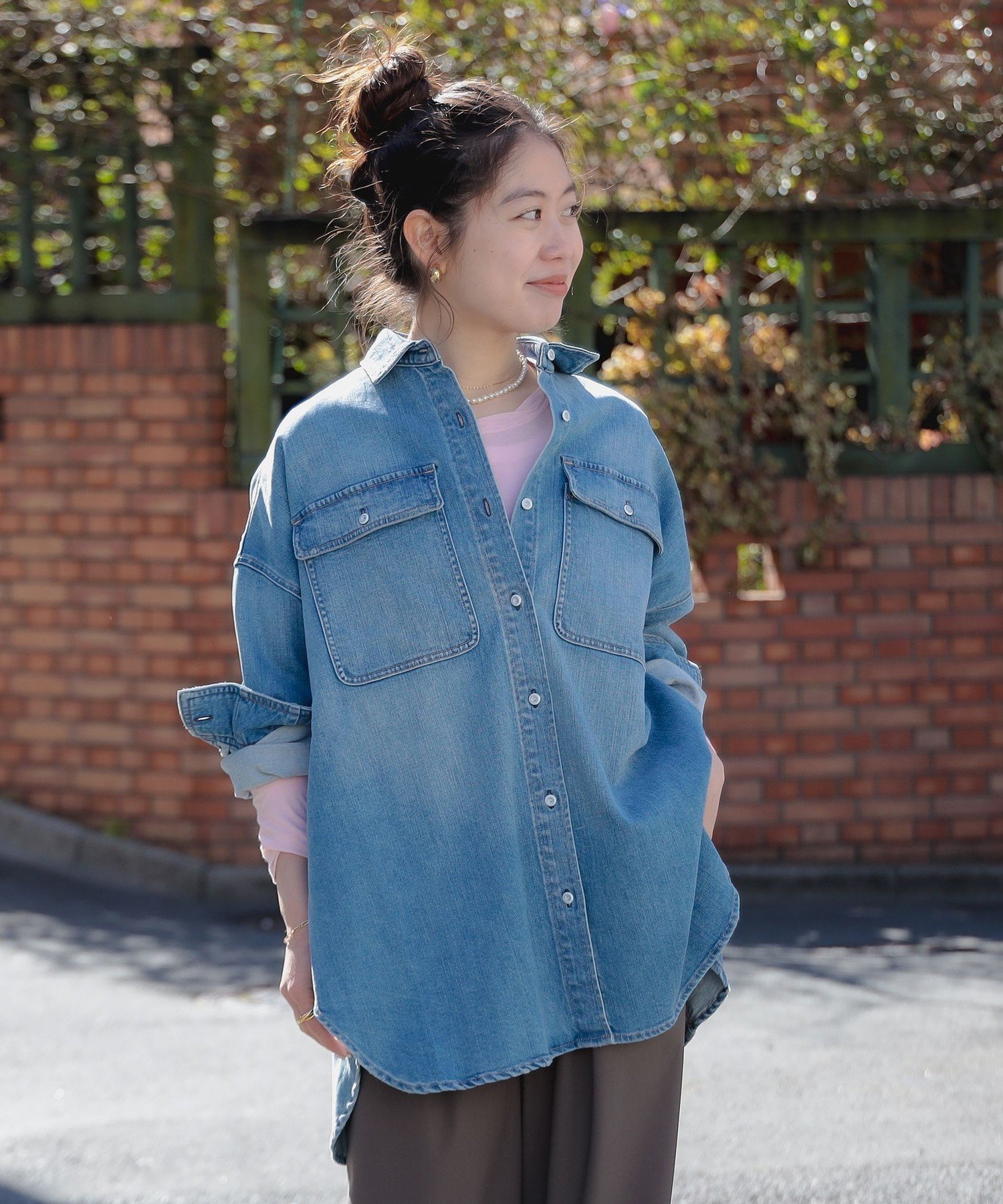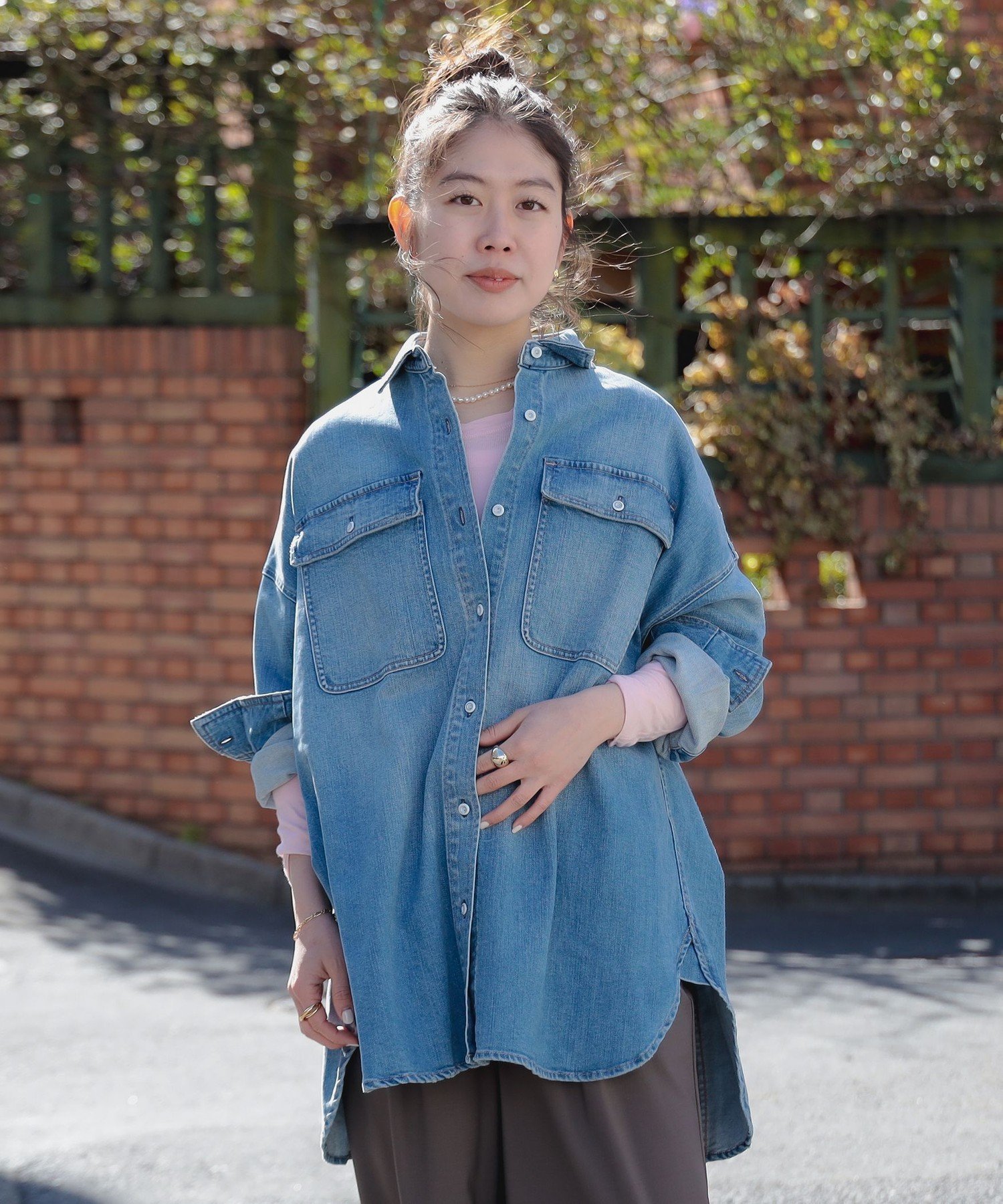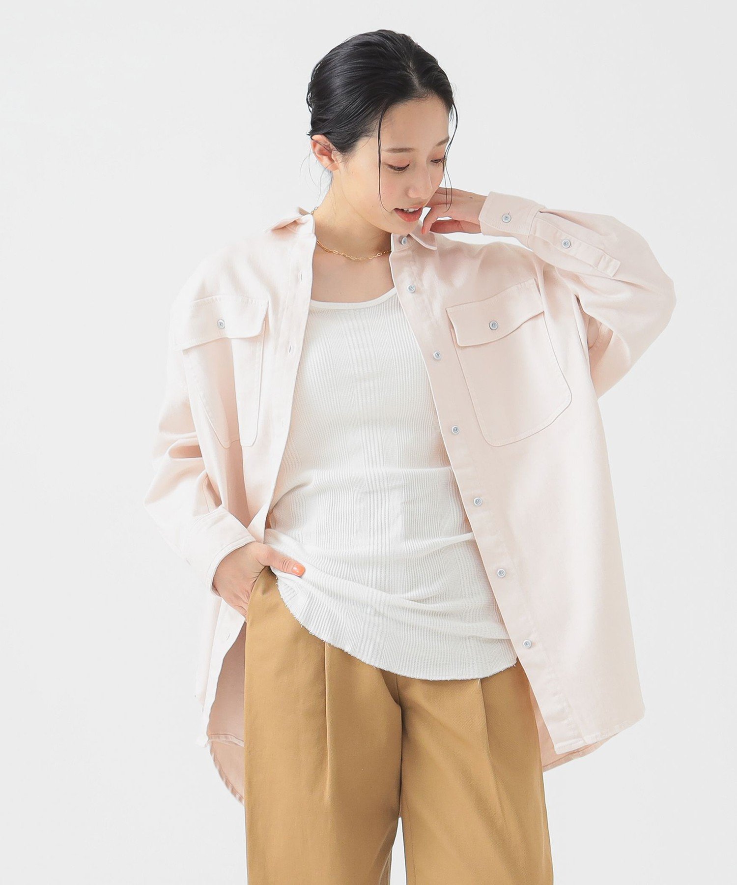B:MING by BEAMS Healthy DENIM / Almond ビーミング ライフストア バイ ビームス トップス シャツ・ブラウス グレー ピンク【送料無料】