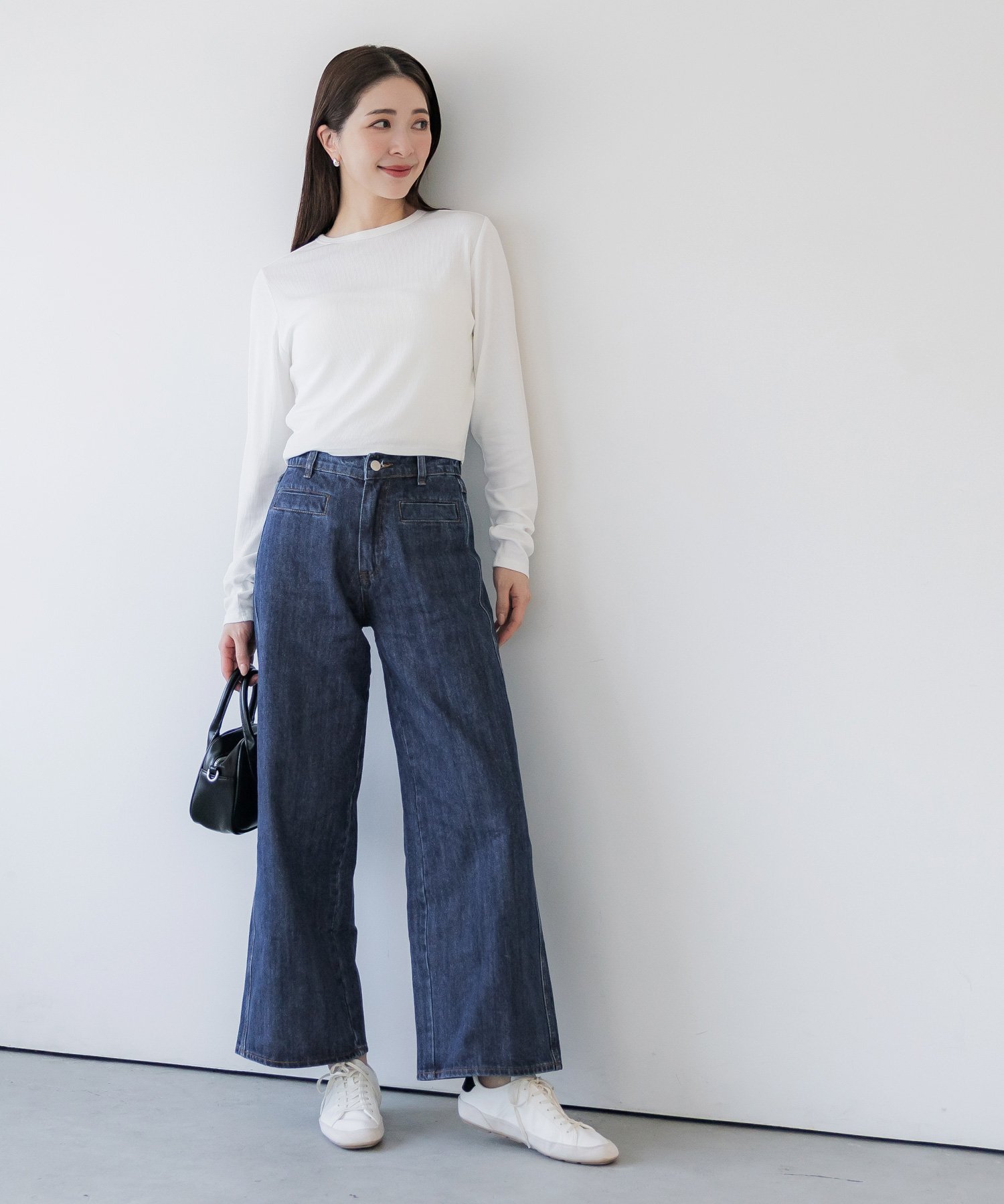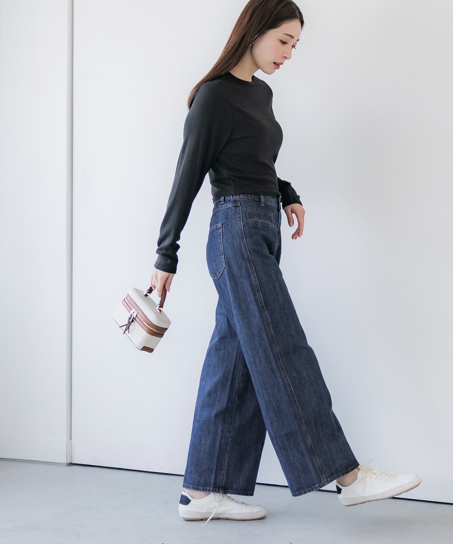 coca ワイドデニムパンツ コカ パンツ ジーンズ・デニムパンツ ブラック ブルー【送料無料】