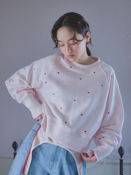 FURFUR 【限定カラー】ミニハート刺繍スウェット ファーファー トップス スウェット・トレーナー ピンク ブラック ホワイト グレー【送料無料】