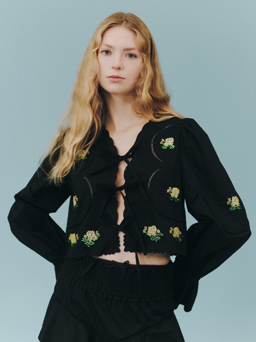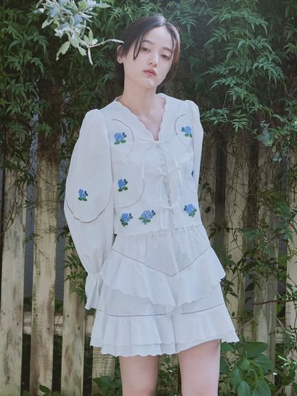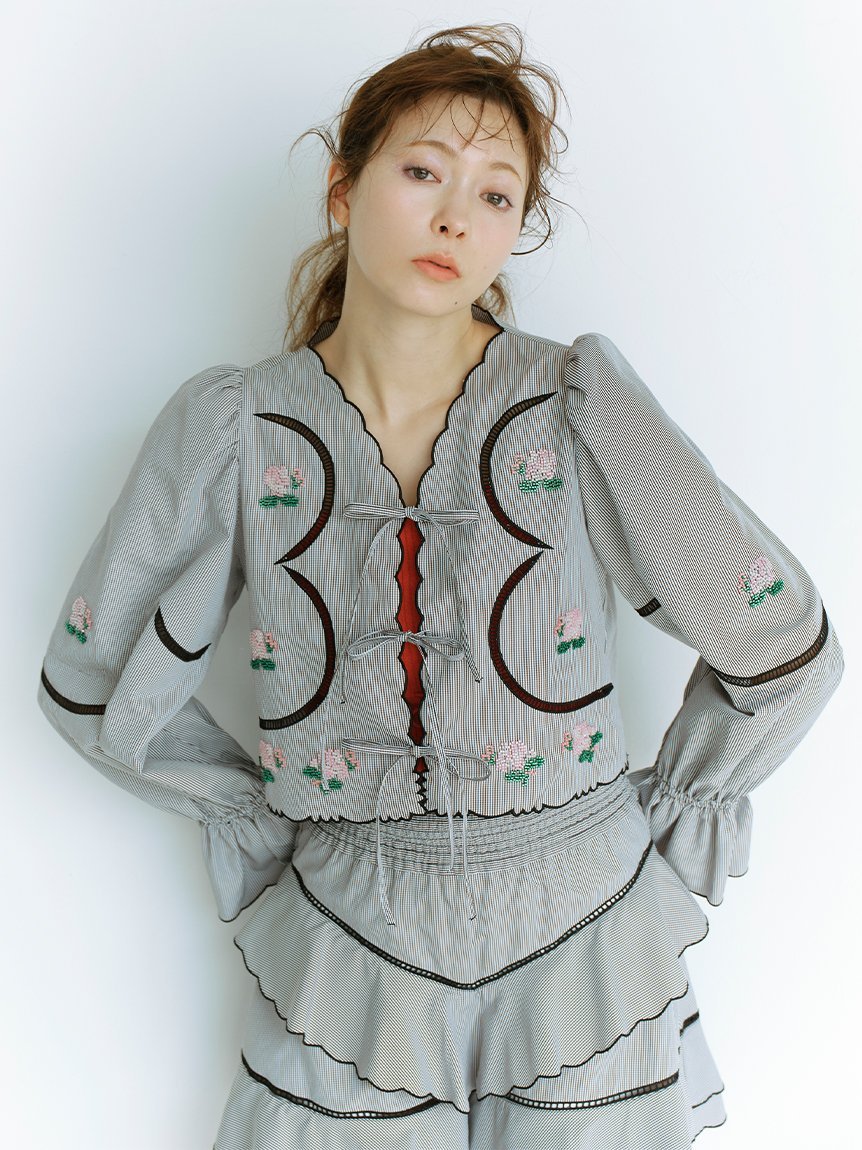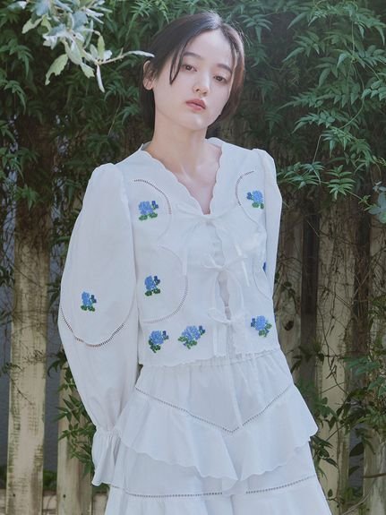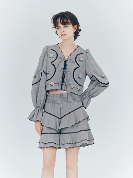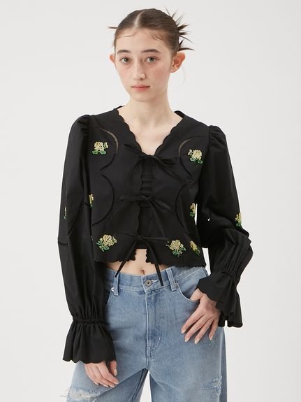 FURFUR ビーズ刺繍スカラップブラウス ファーファー トップス シャツ・ブラウス ホワイト ブラック【送料無料】