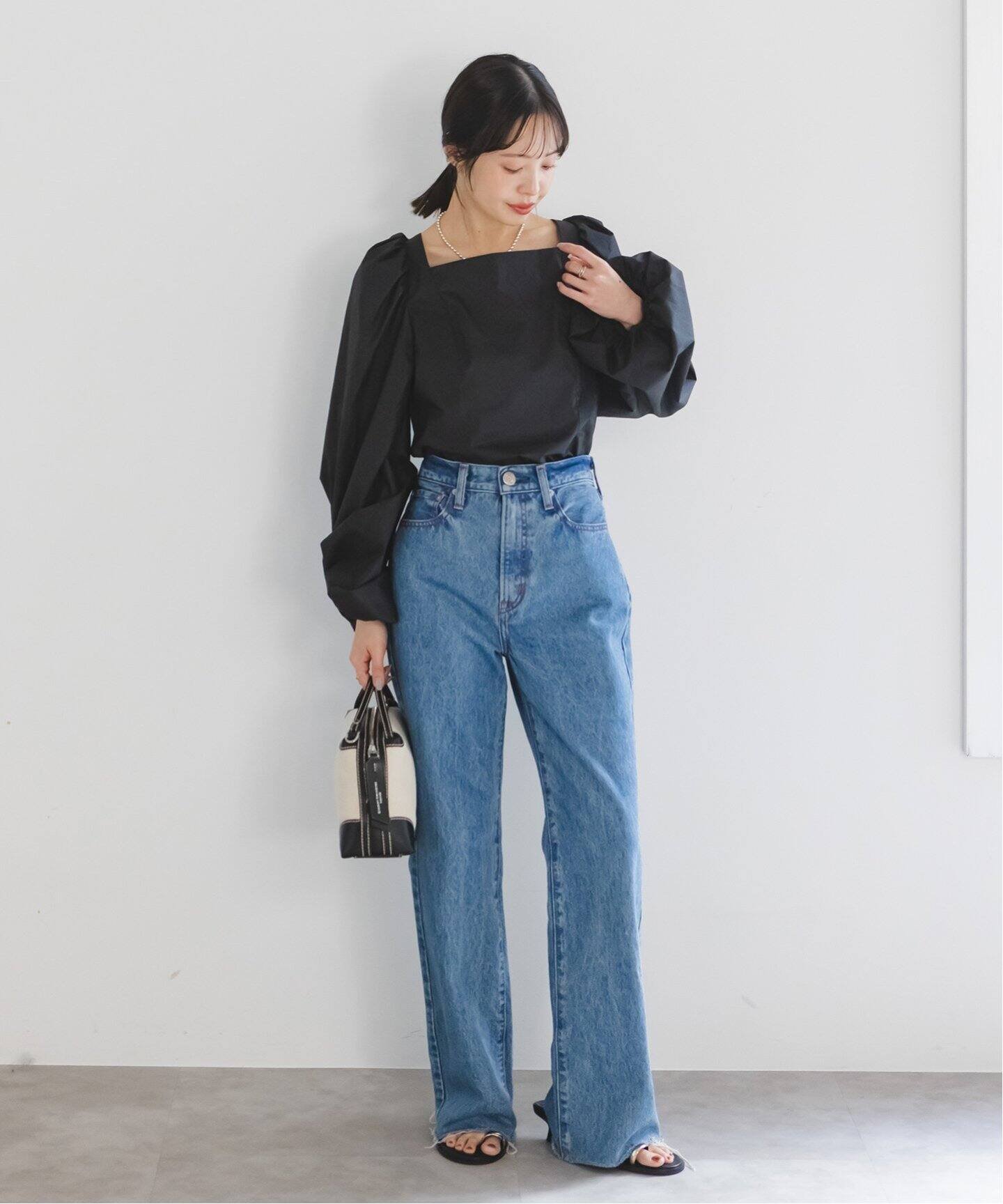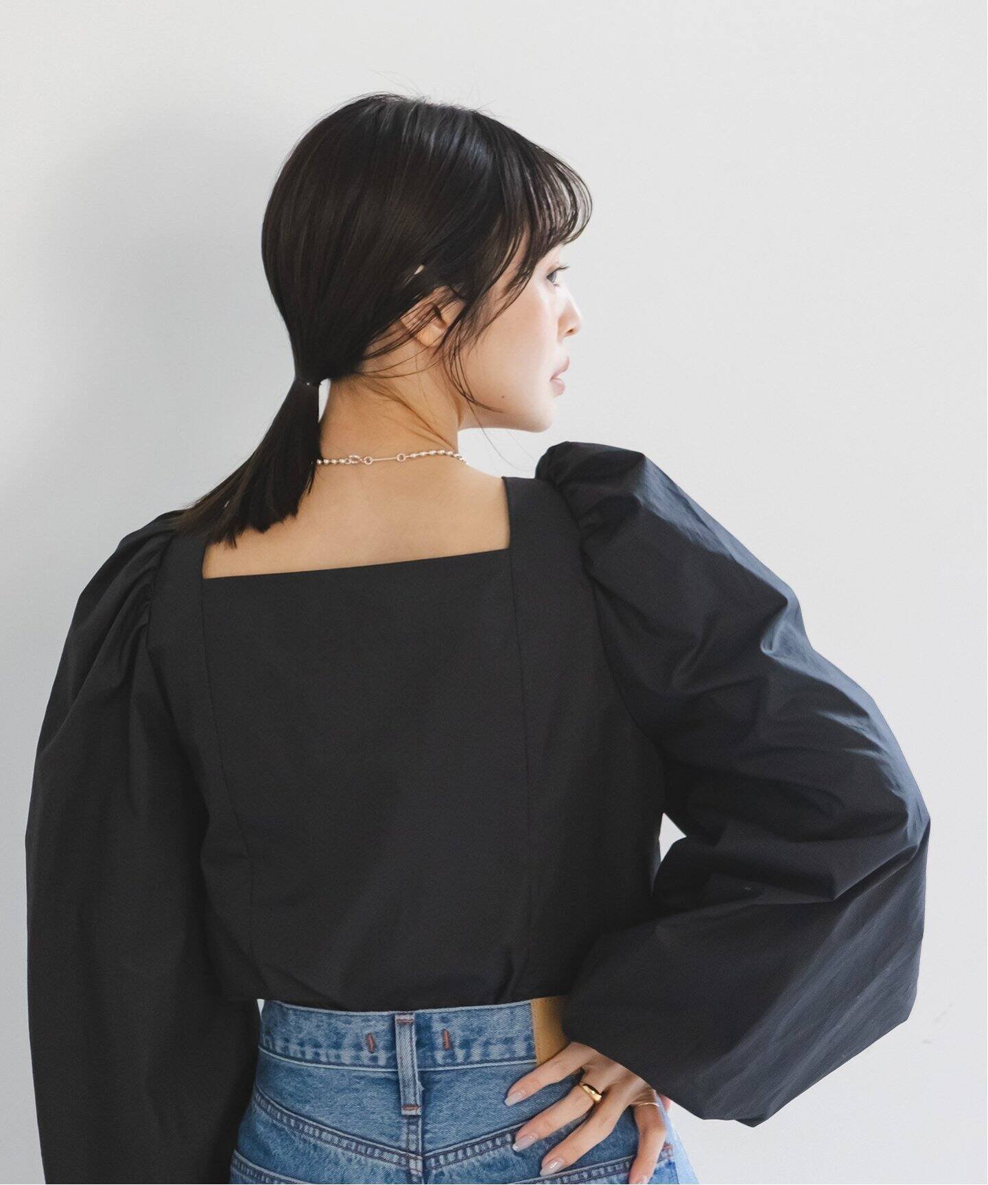 NOBLE ボリュームスリーブスクエアネックブラウス ノーブル トップス シャツ・ブラウス ホワイト ブラック【送料無料】