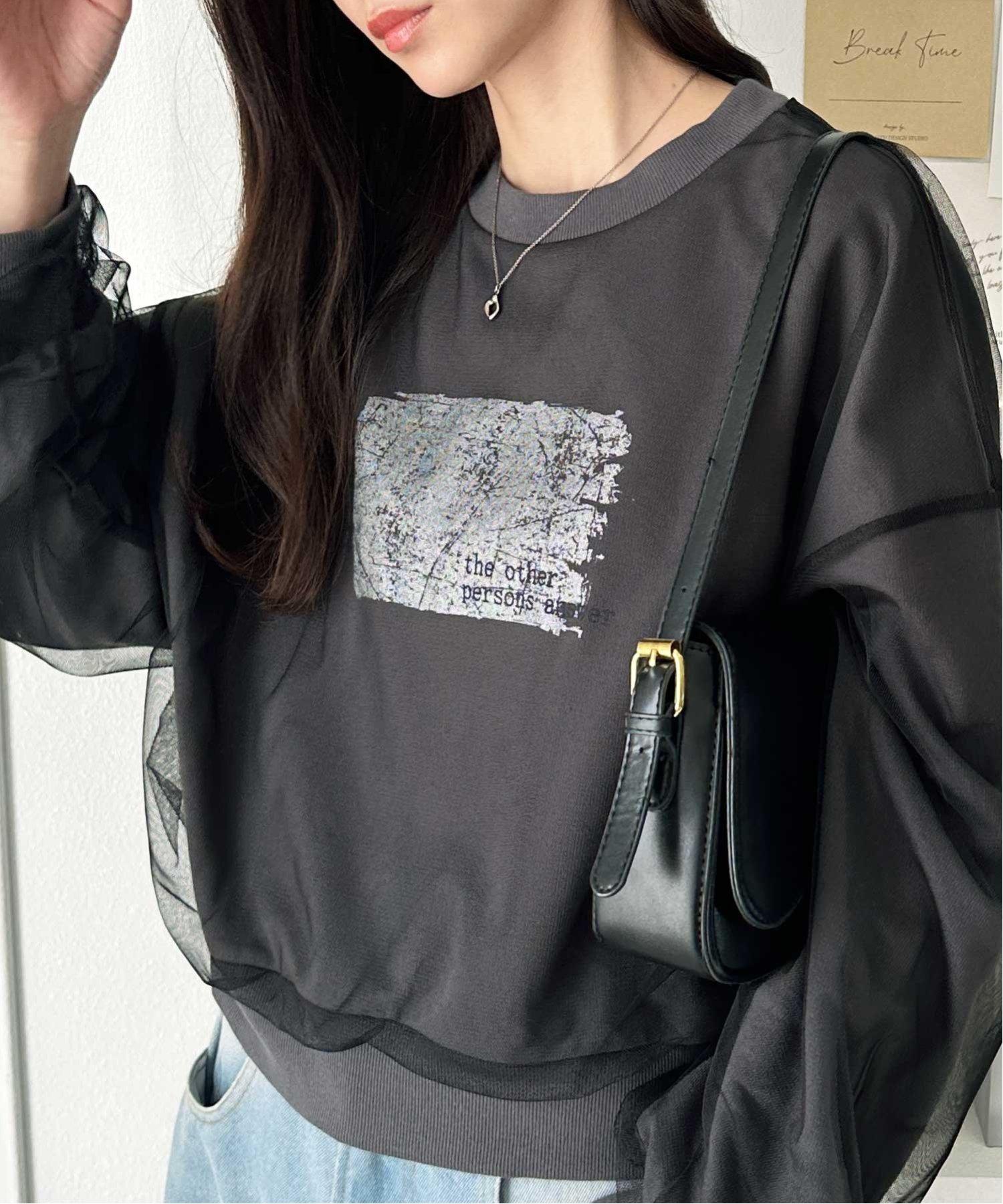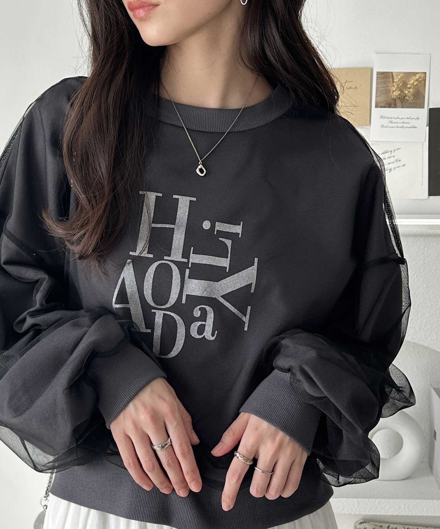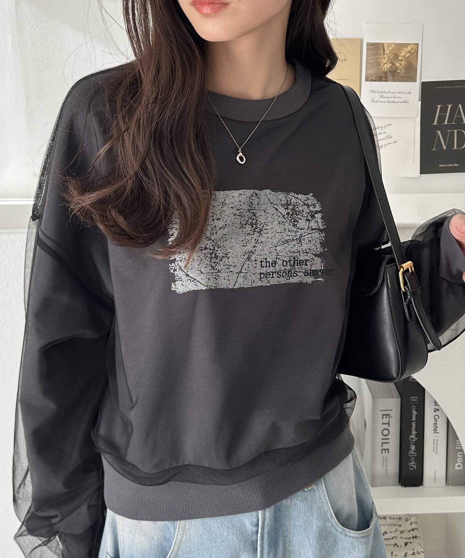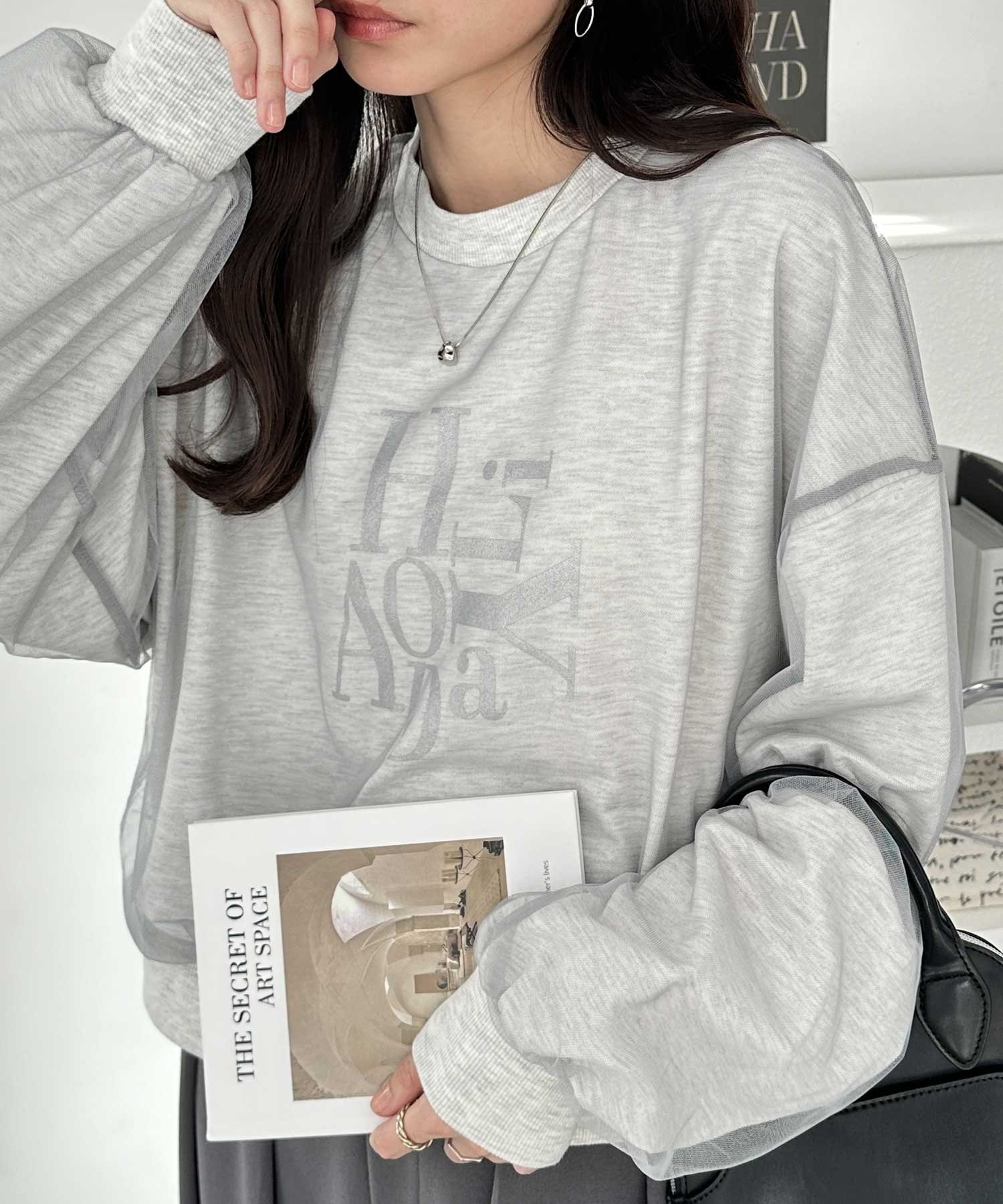 【SALE/31%OFF】GeeRA チュールカバー箔プリントスウェット ジーラ トップス スウェット・トレーナー グレー
