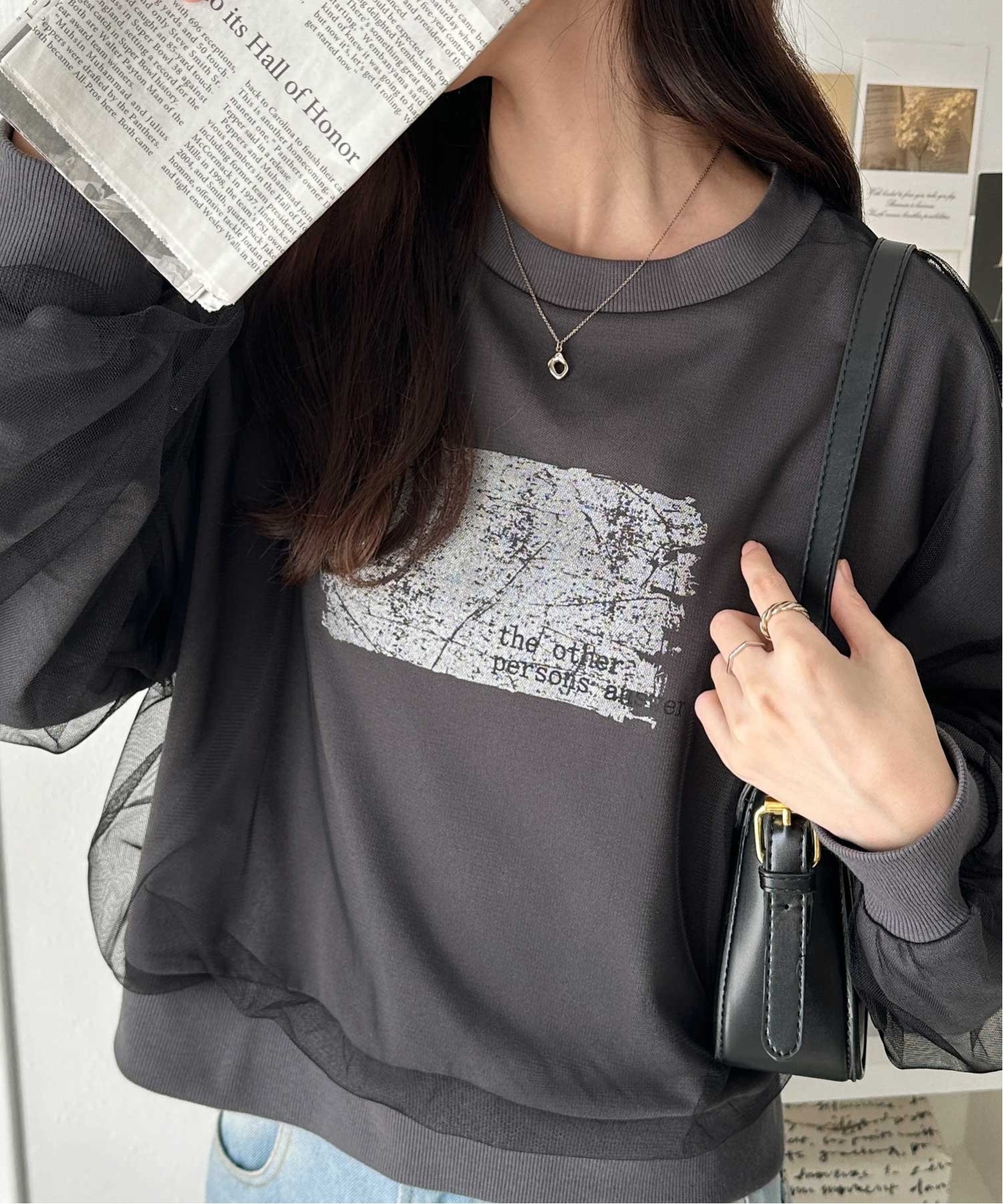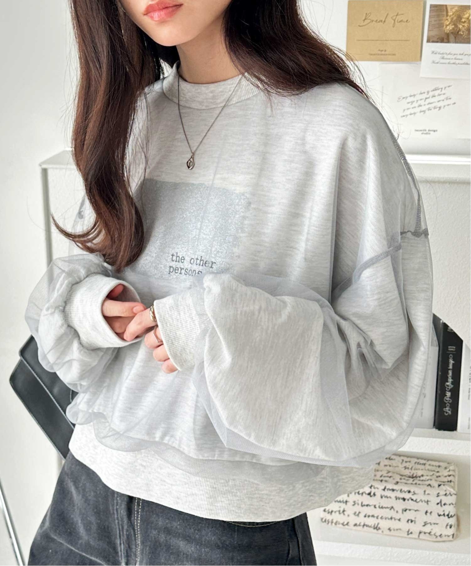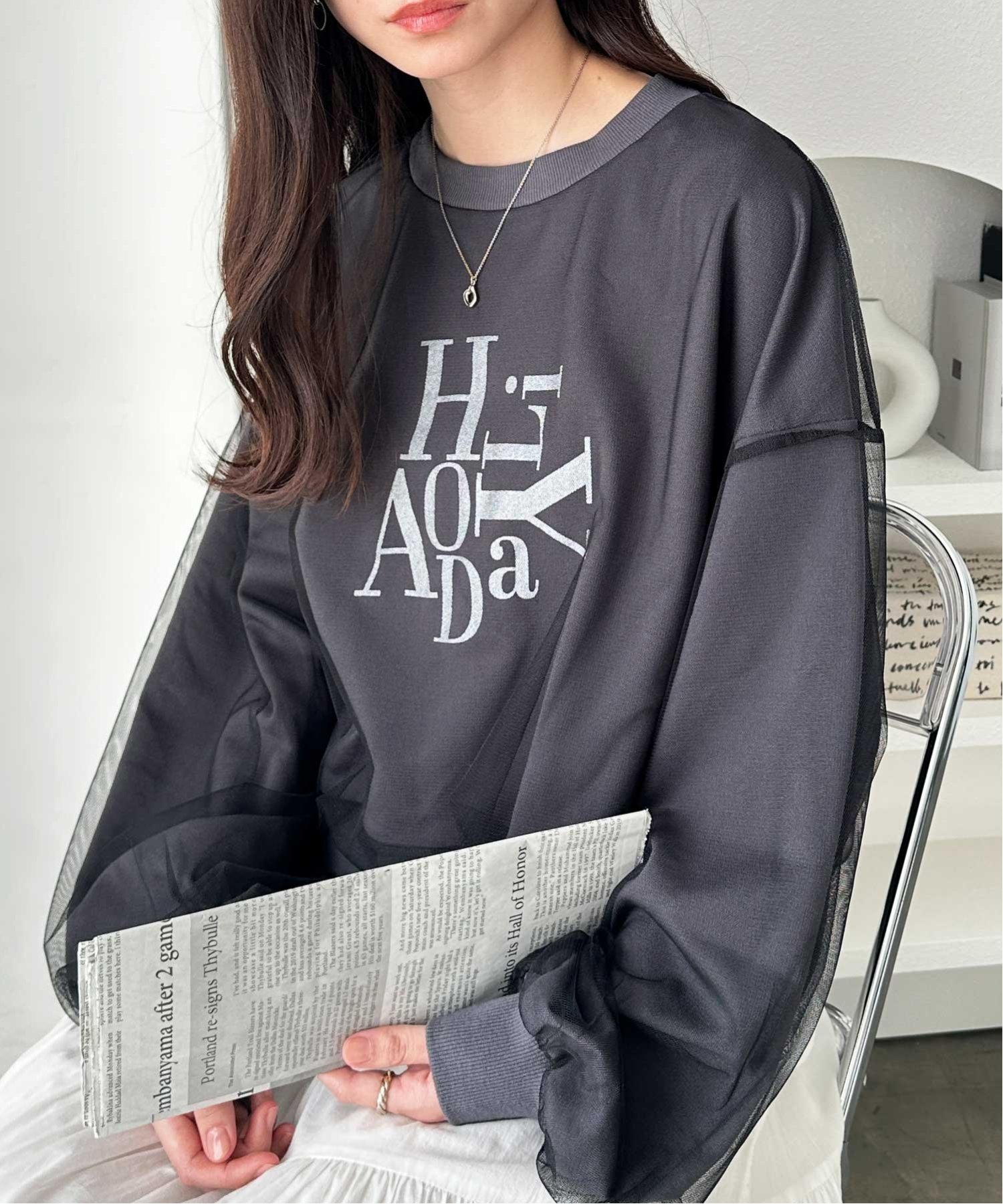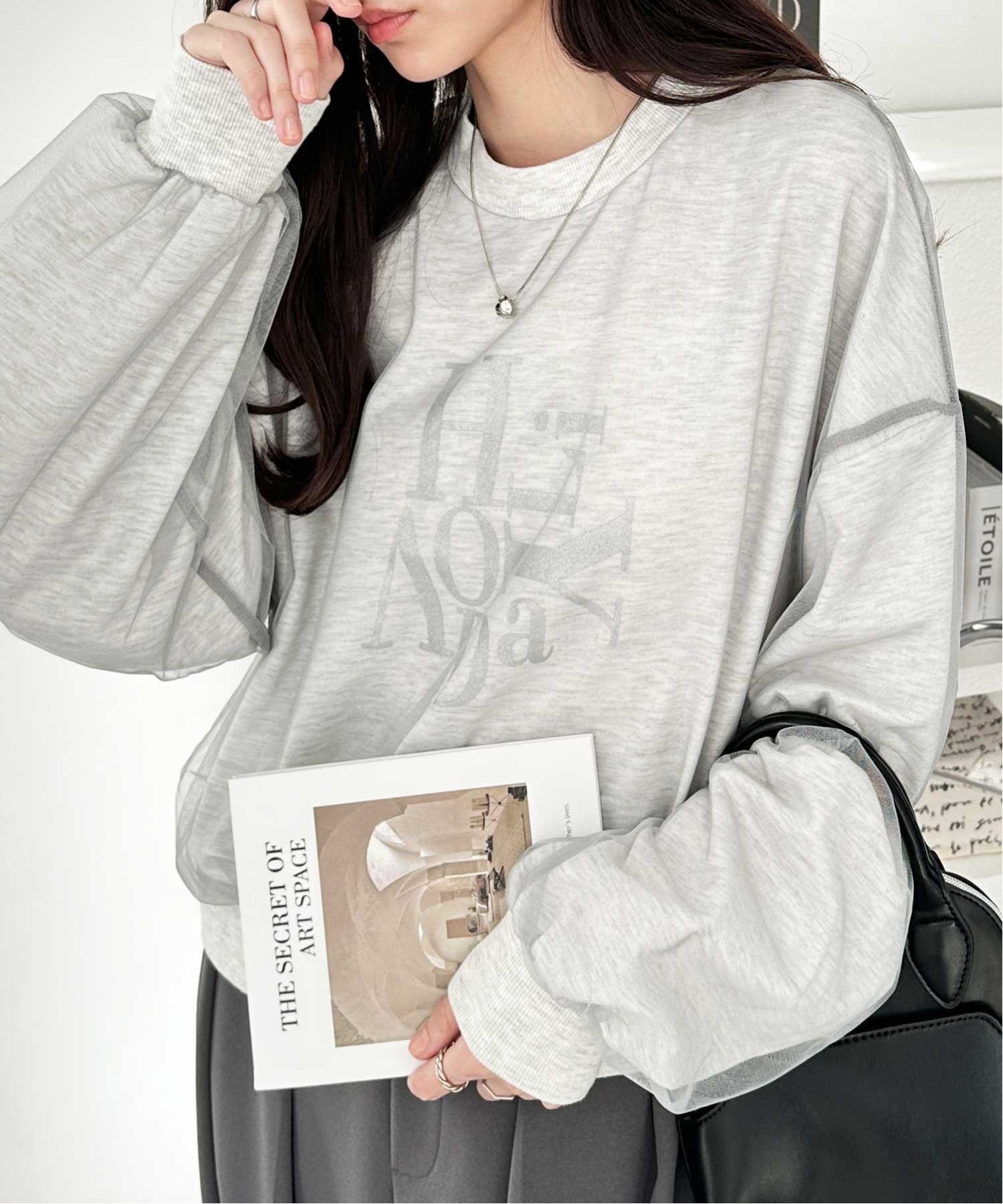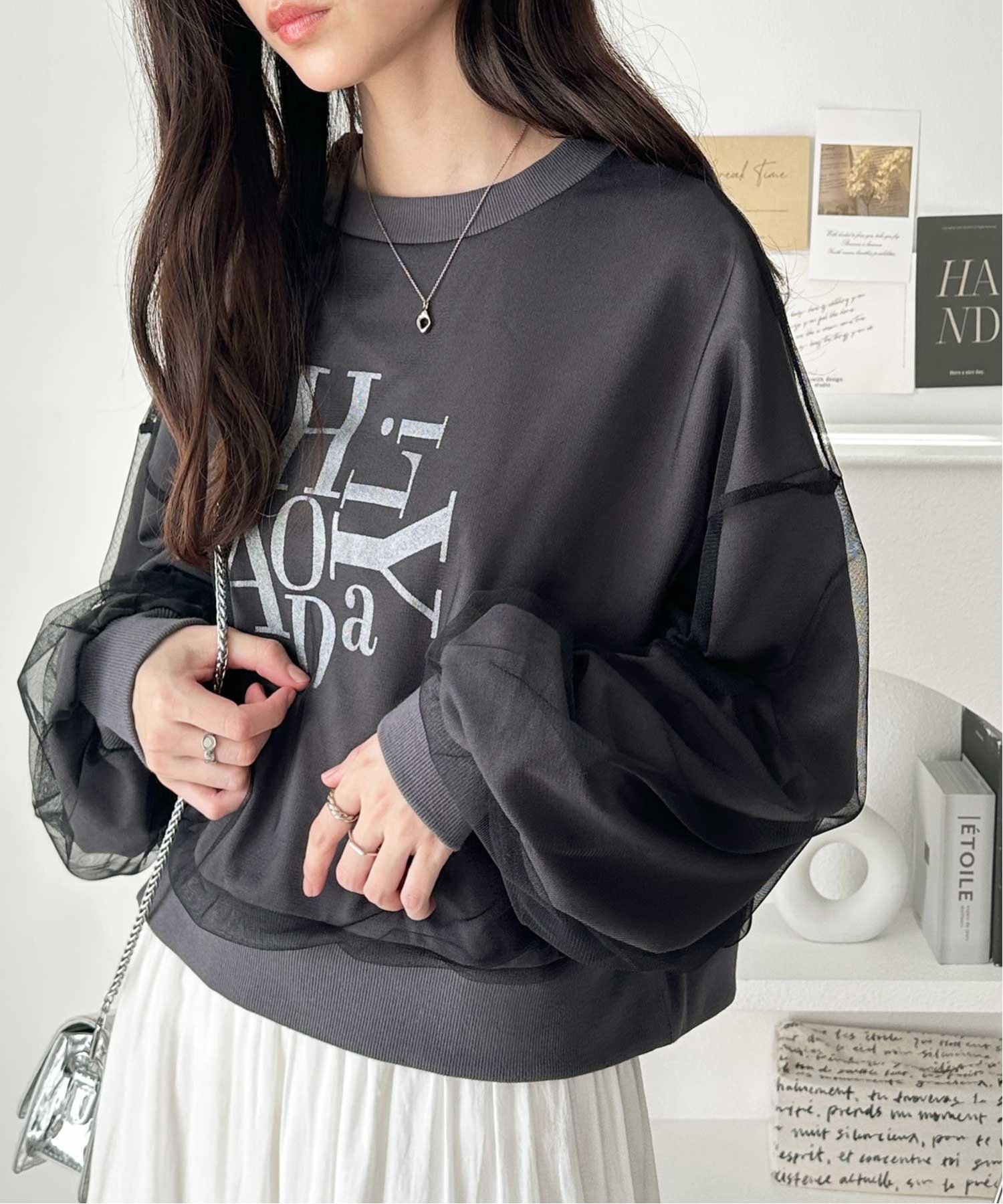 【SALE/31%OFF】GeeRA チュールカバー箔プリントスウェット ジーラ トップス スウェット・トレーナー グレー