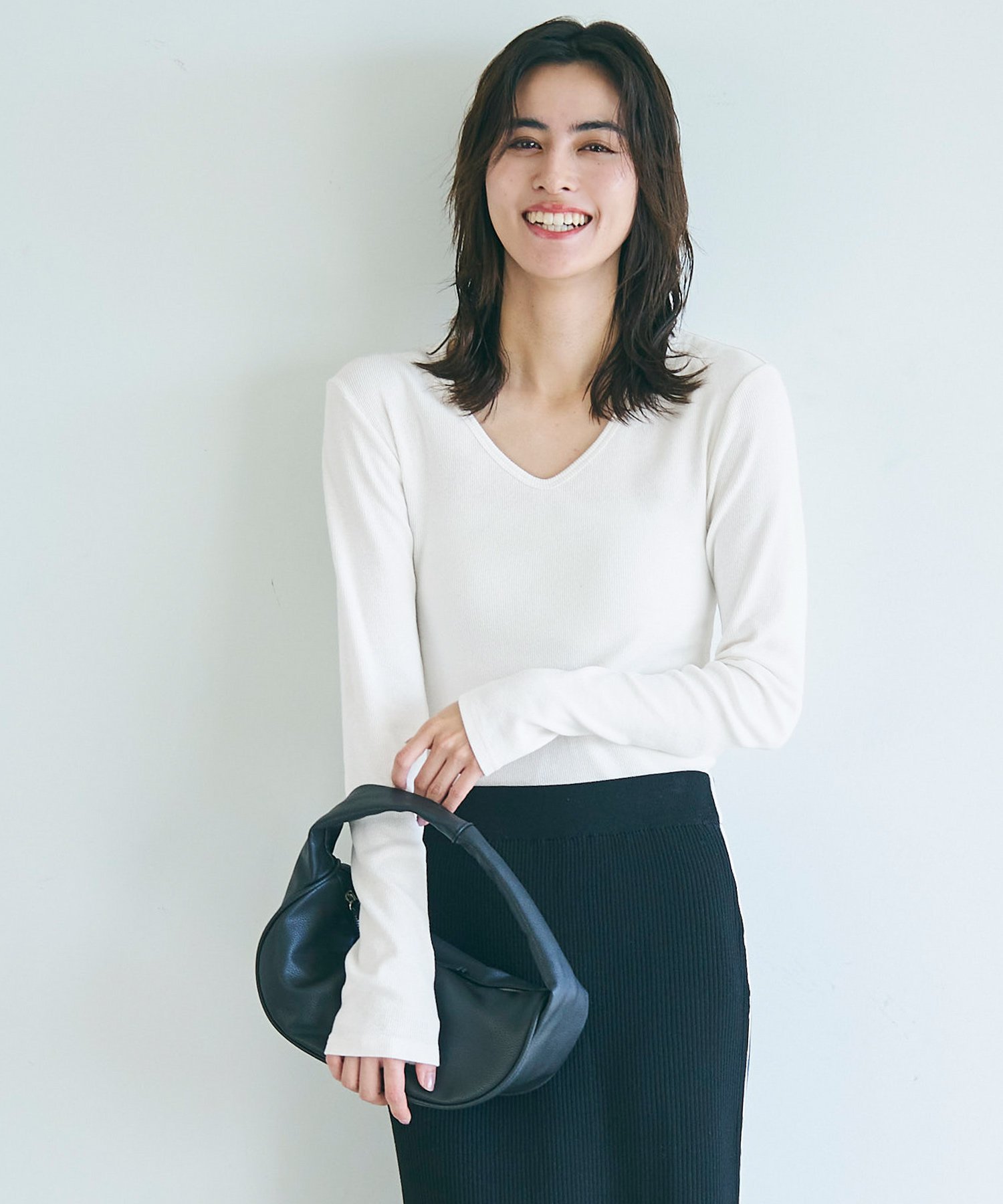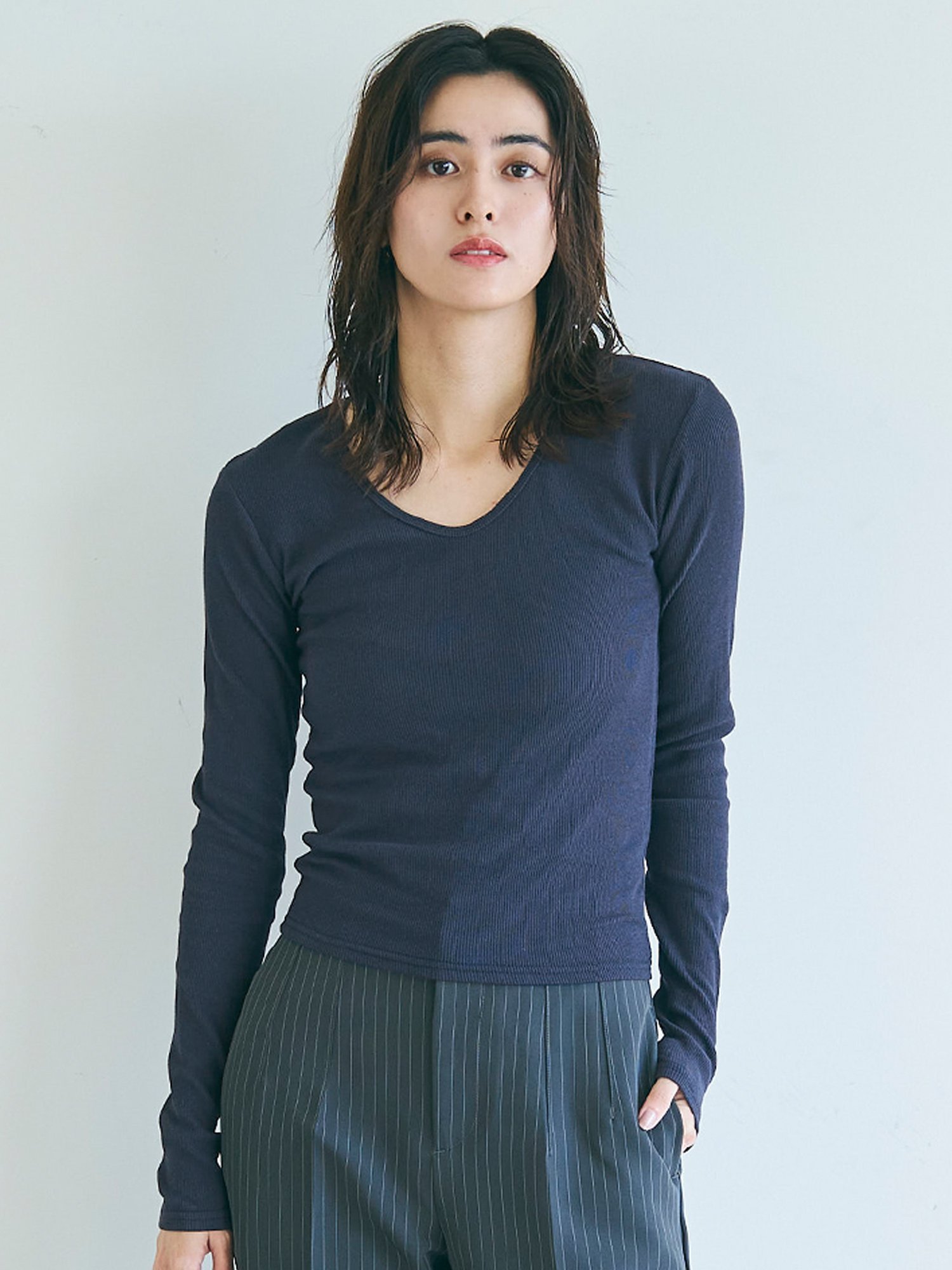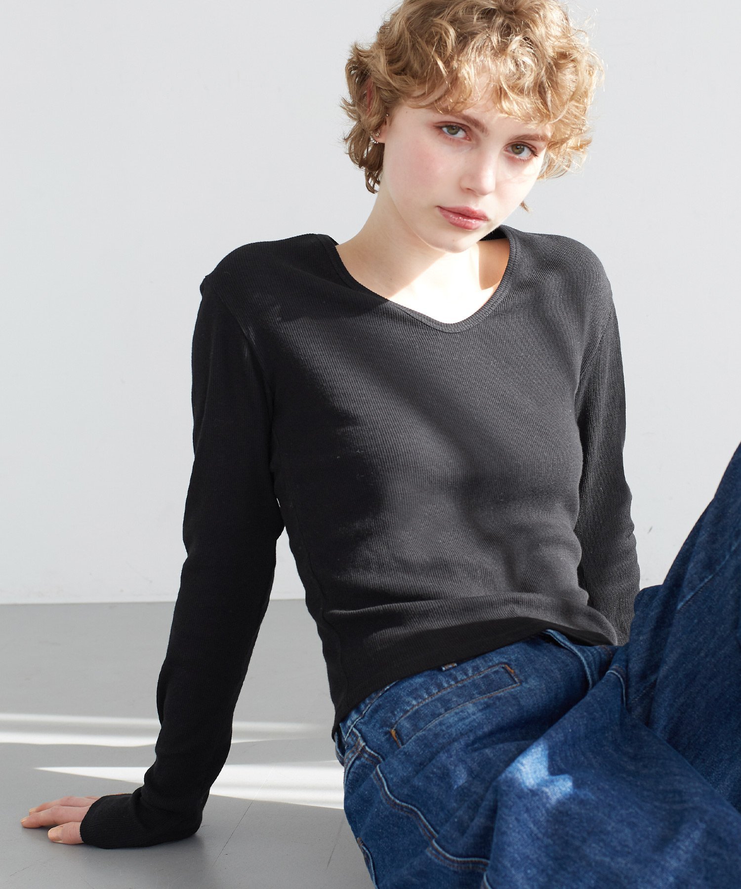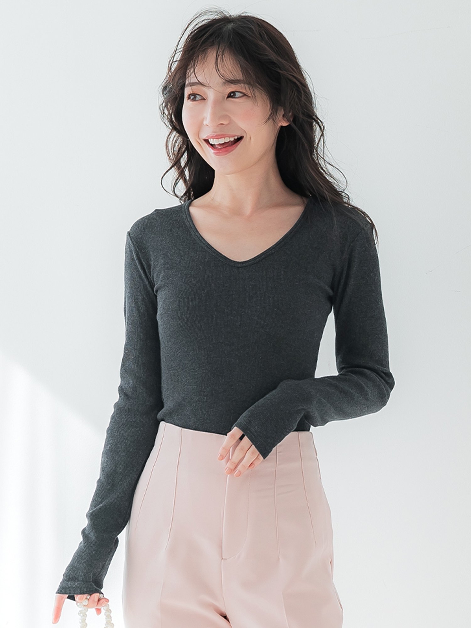 coca リブVネックトップス コカ トップス ニット グレー ネイビー ブラック ホワイト
