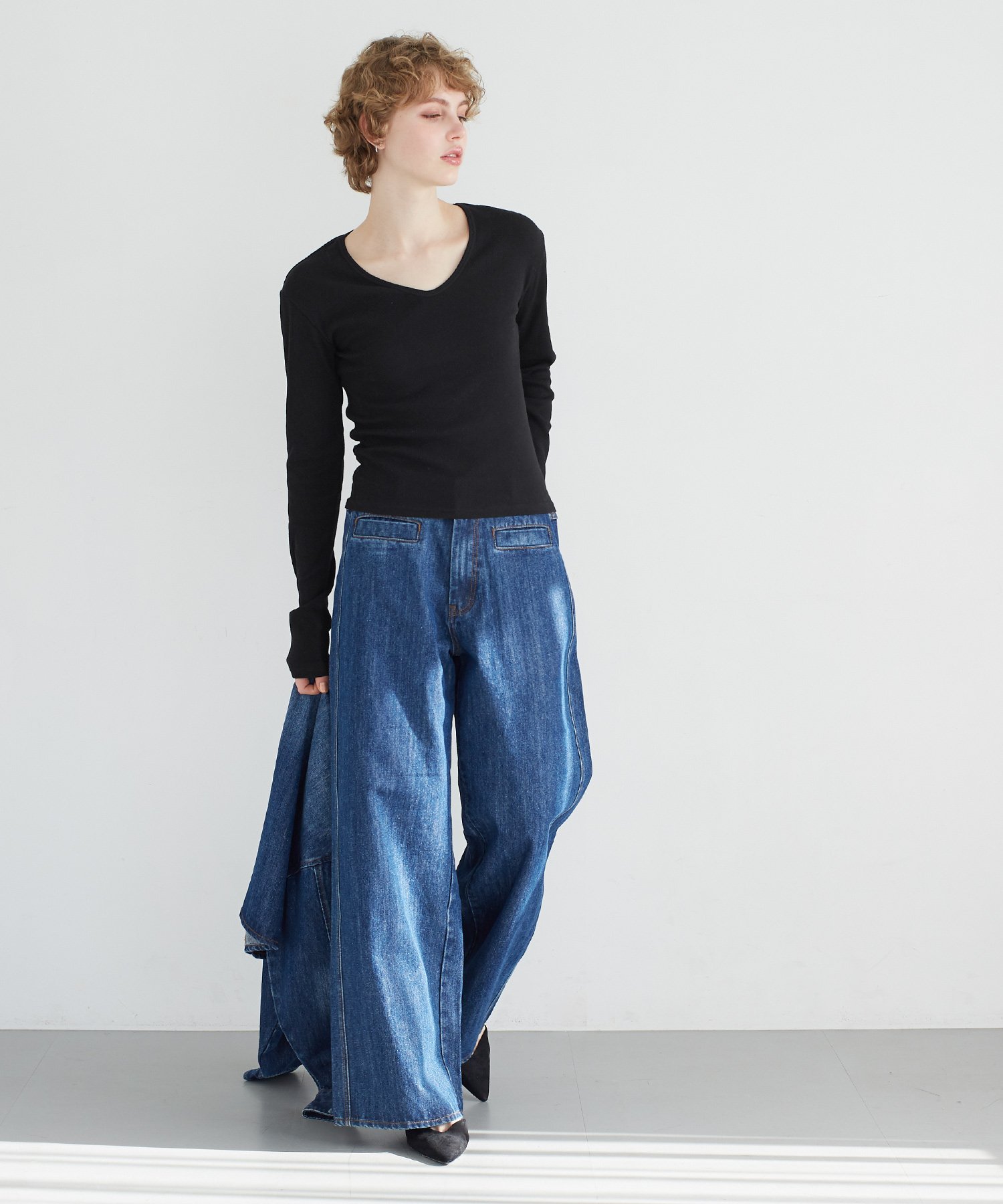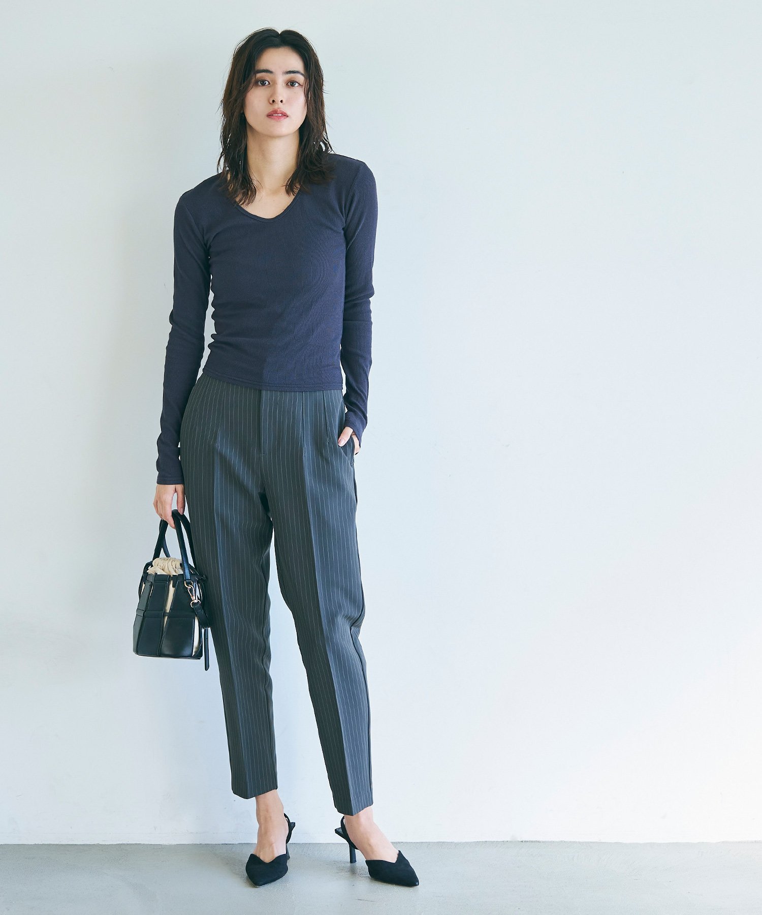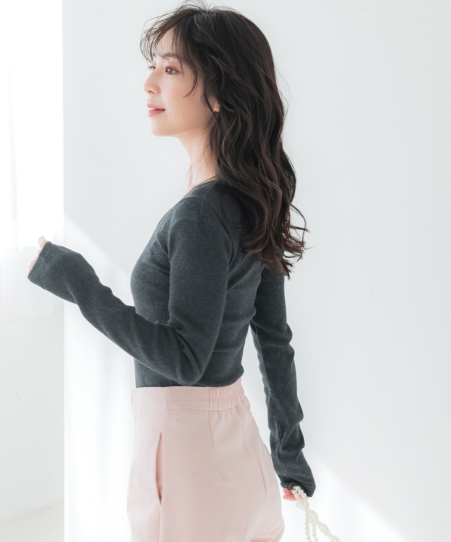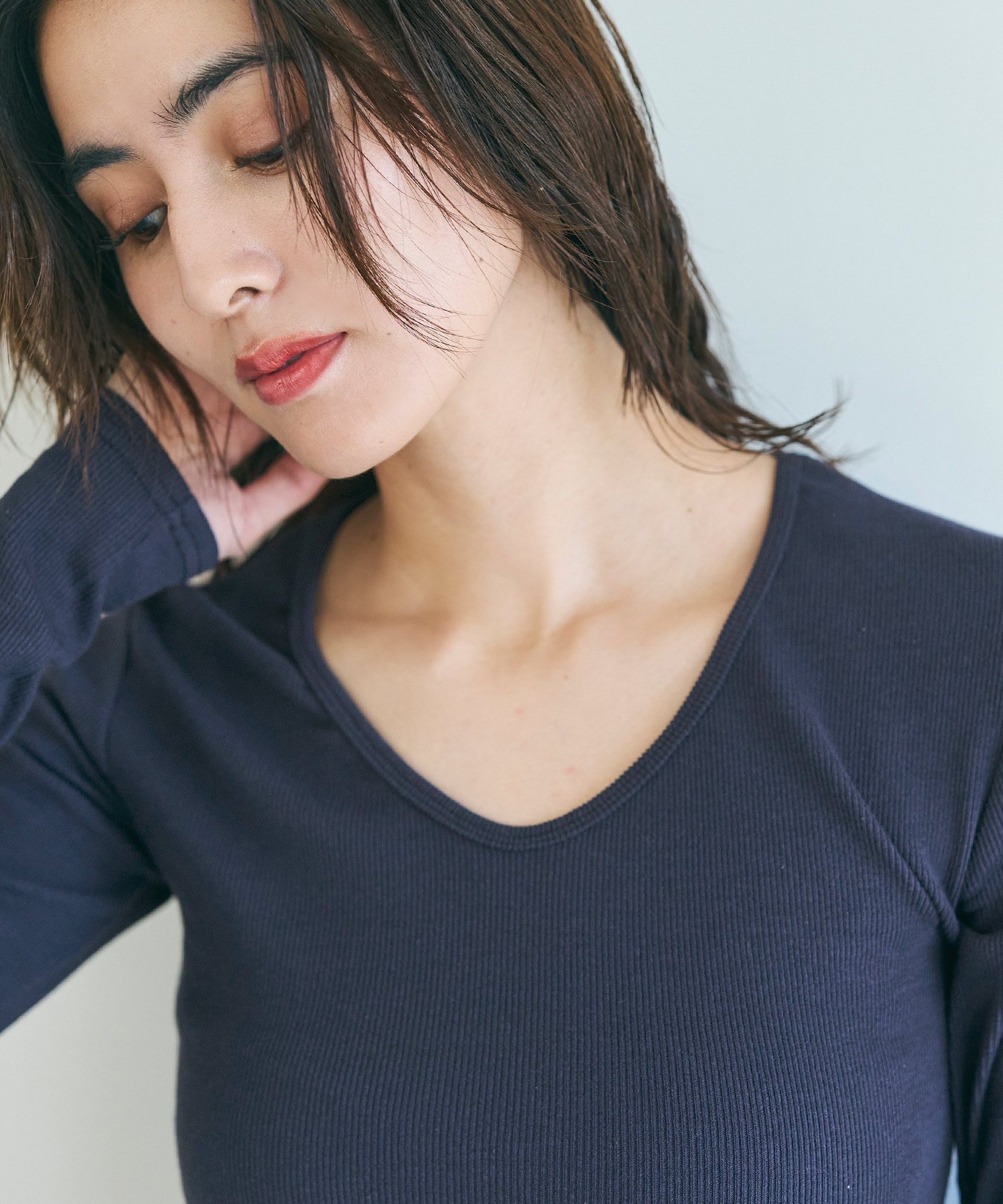 coca リブVネックトップス コカ トップス ニット グレー ネイビー ブラック ホワイト