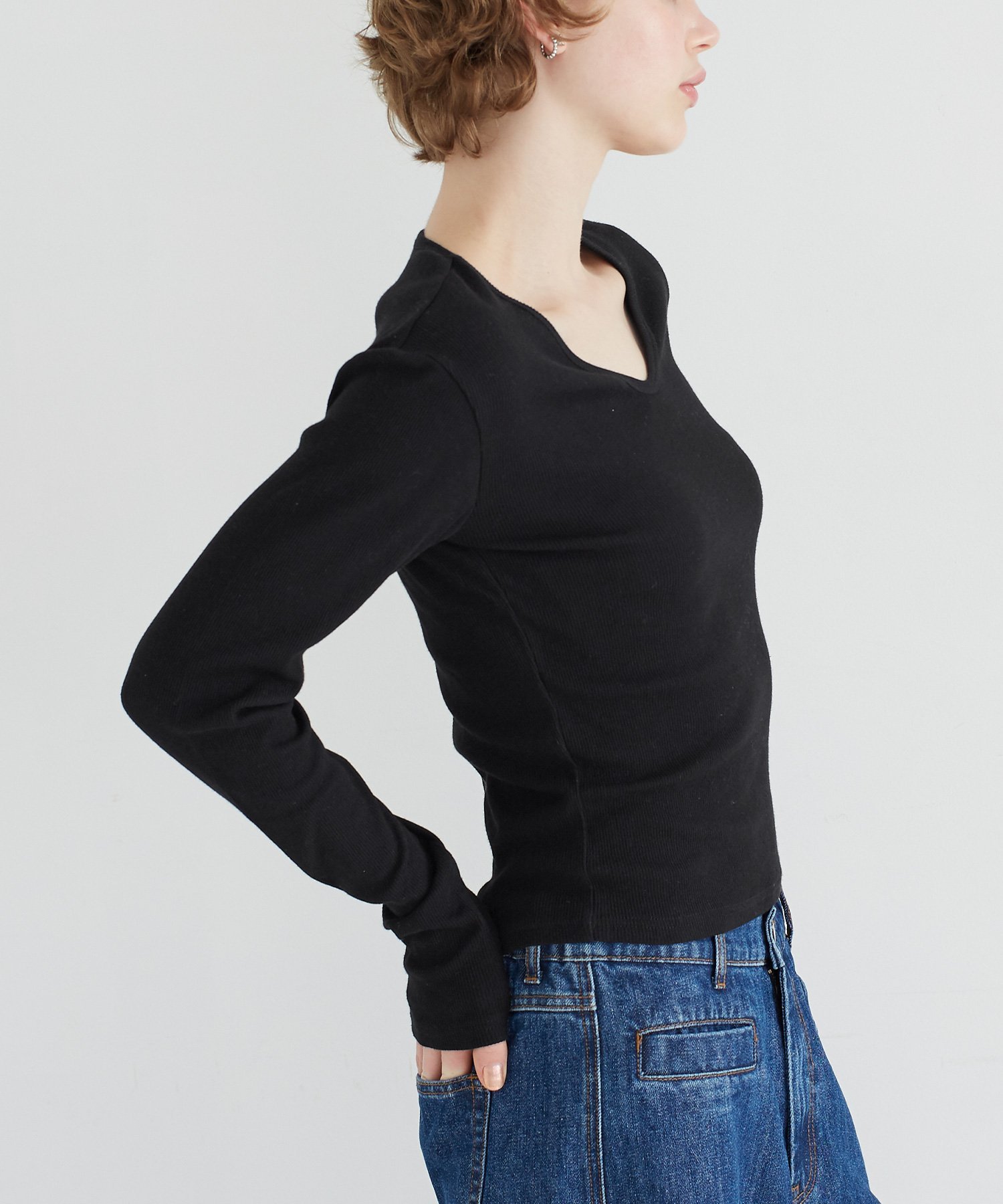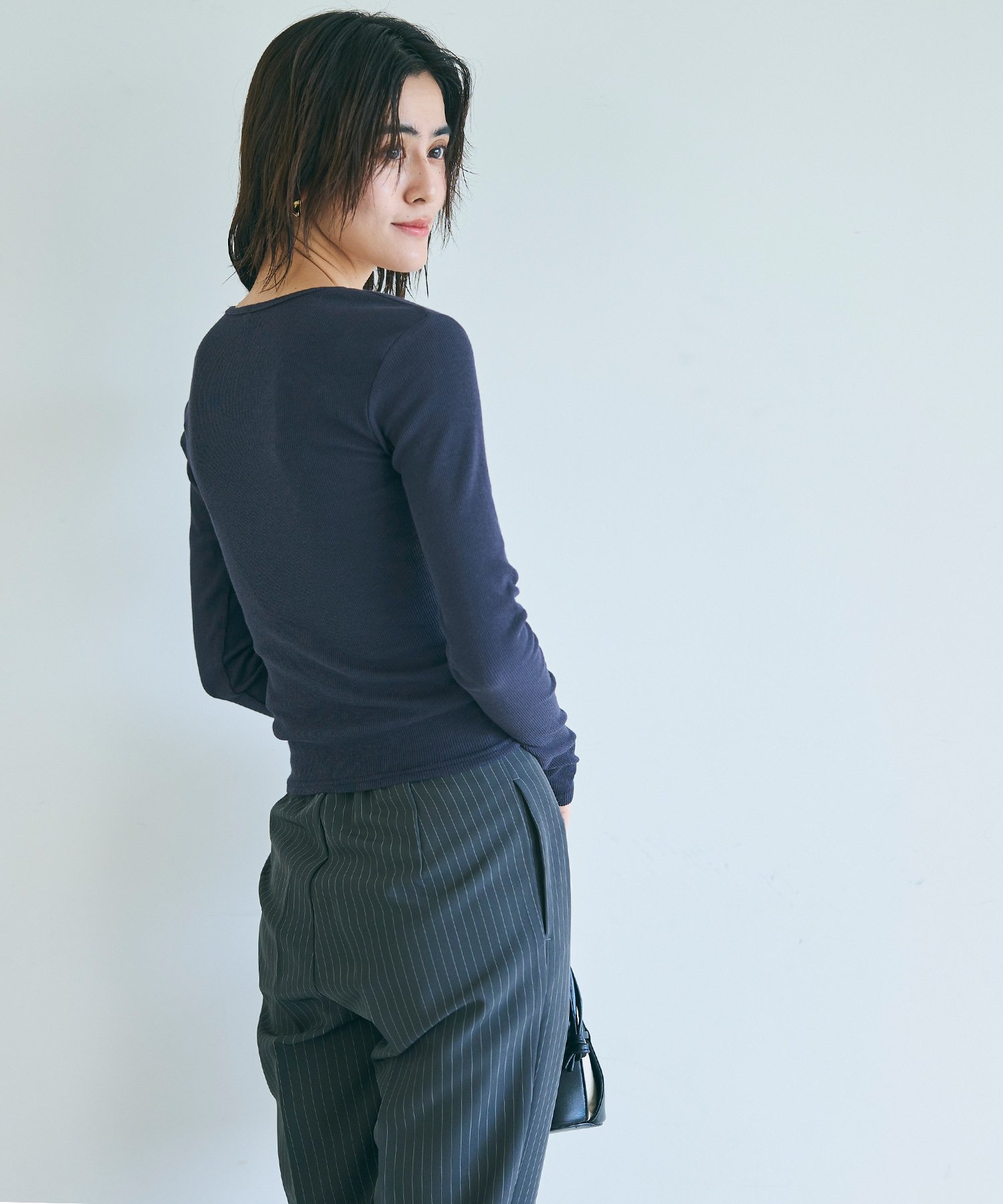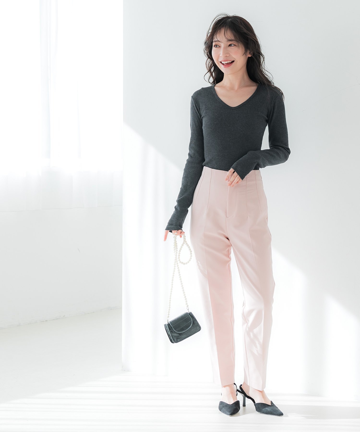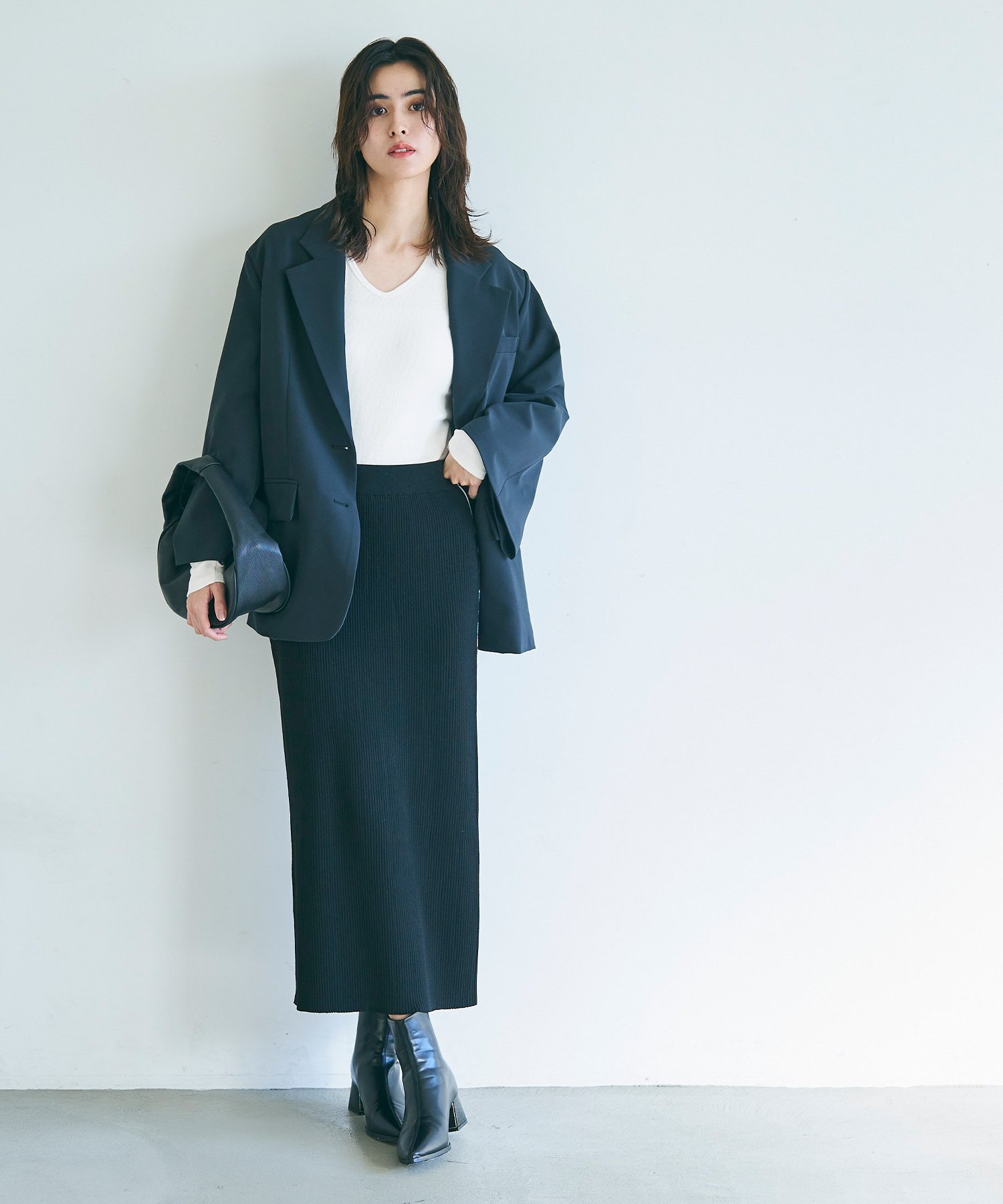 coca リブVネックトップス コカ トップス ニット グレー ネイビー ブラック ホワイト