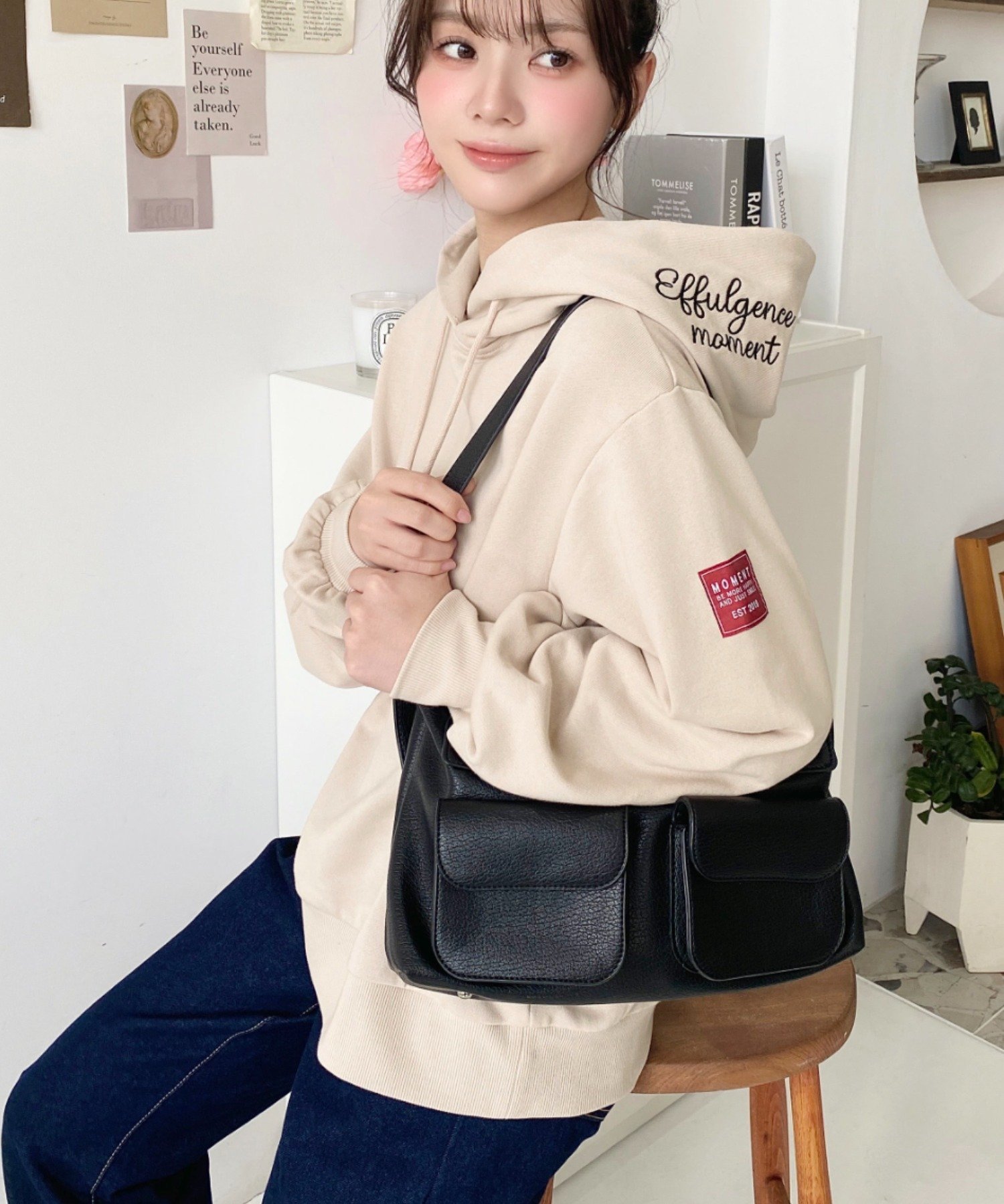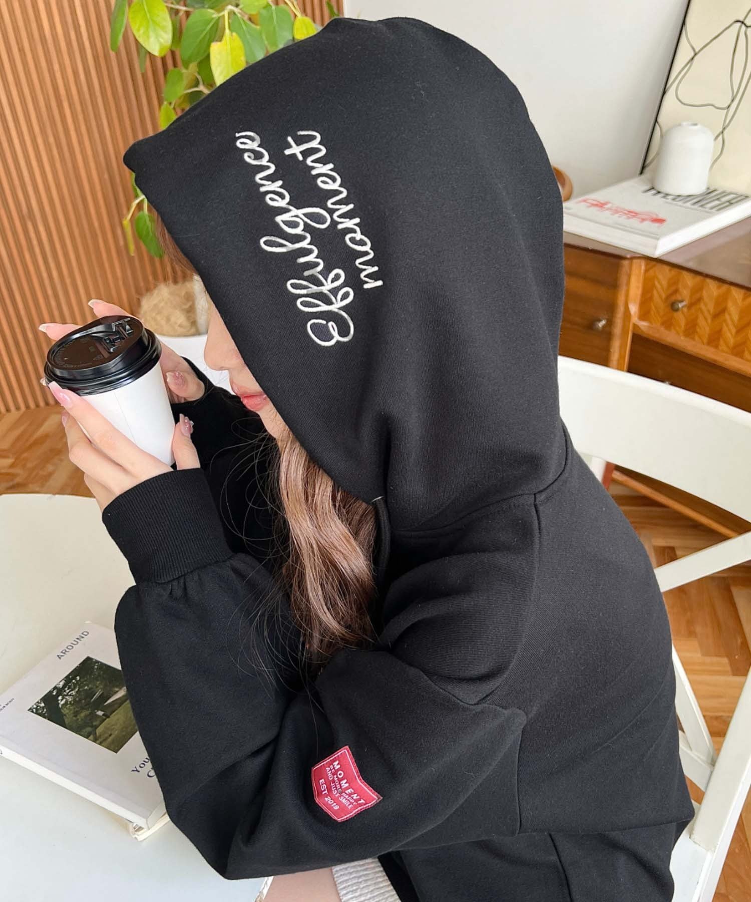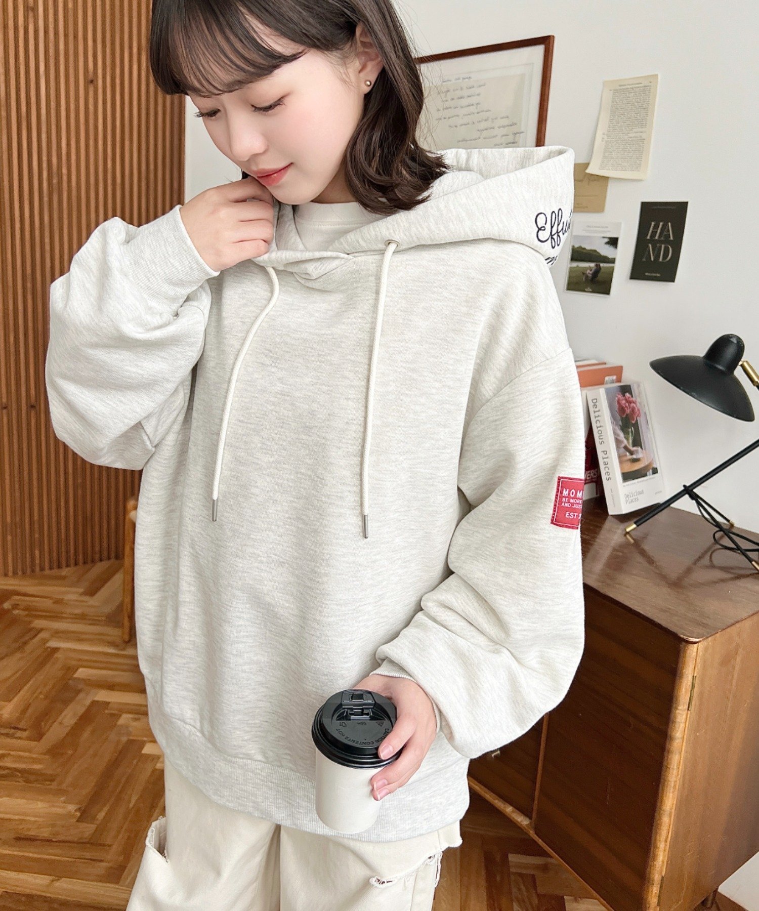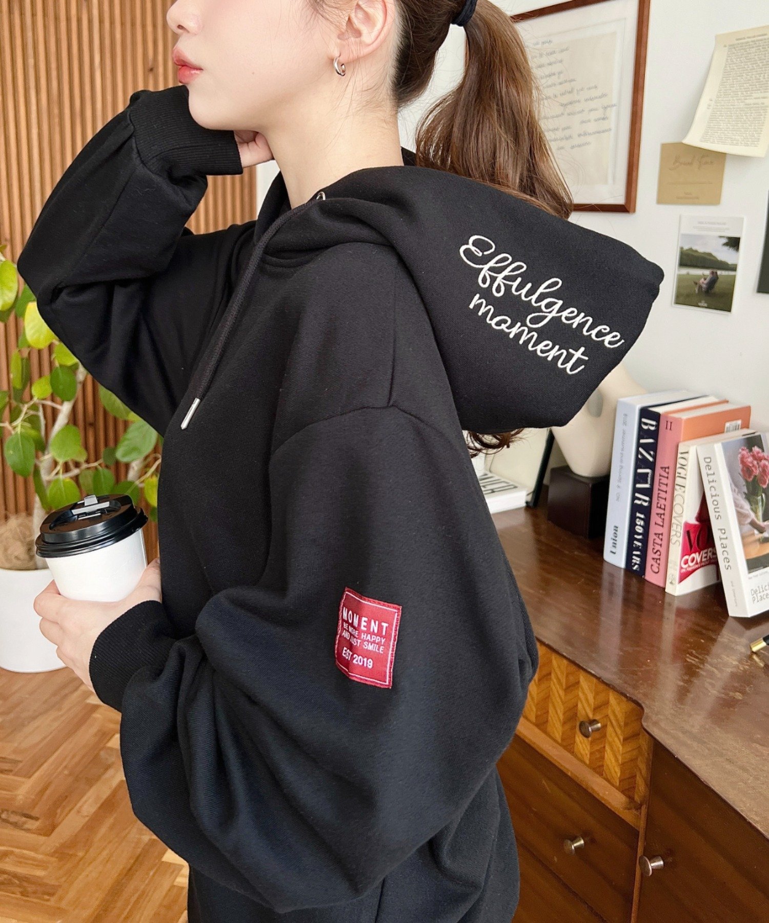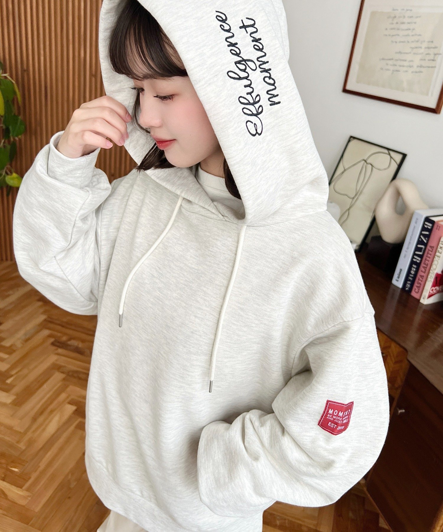 moment+ 裏毛ショート丈ロゴ刺繍ジップアップパーカー モーメントプラス トップス パーカー・フーディー ホワイト ベージュ ブラック【送料無料】