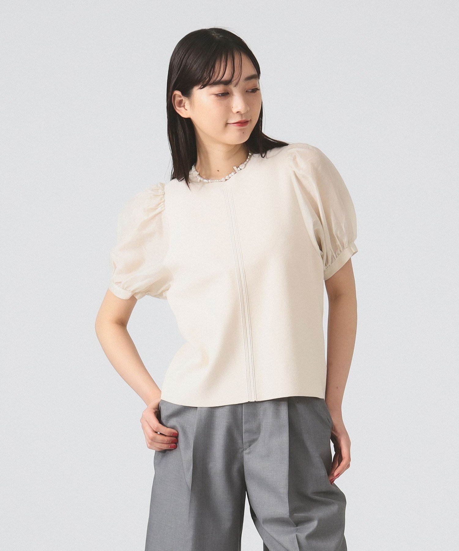 Ray BEAMS シアー パフスリーブ キリカエ プルオーバー ビームス ウイメン トップス その他のトップス ブラック ホワイト【送料無料】