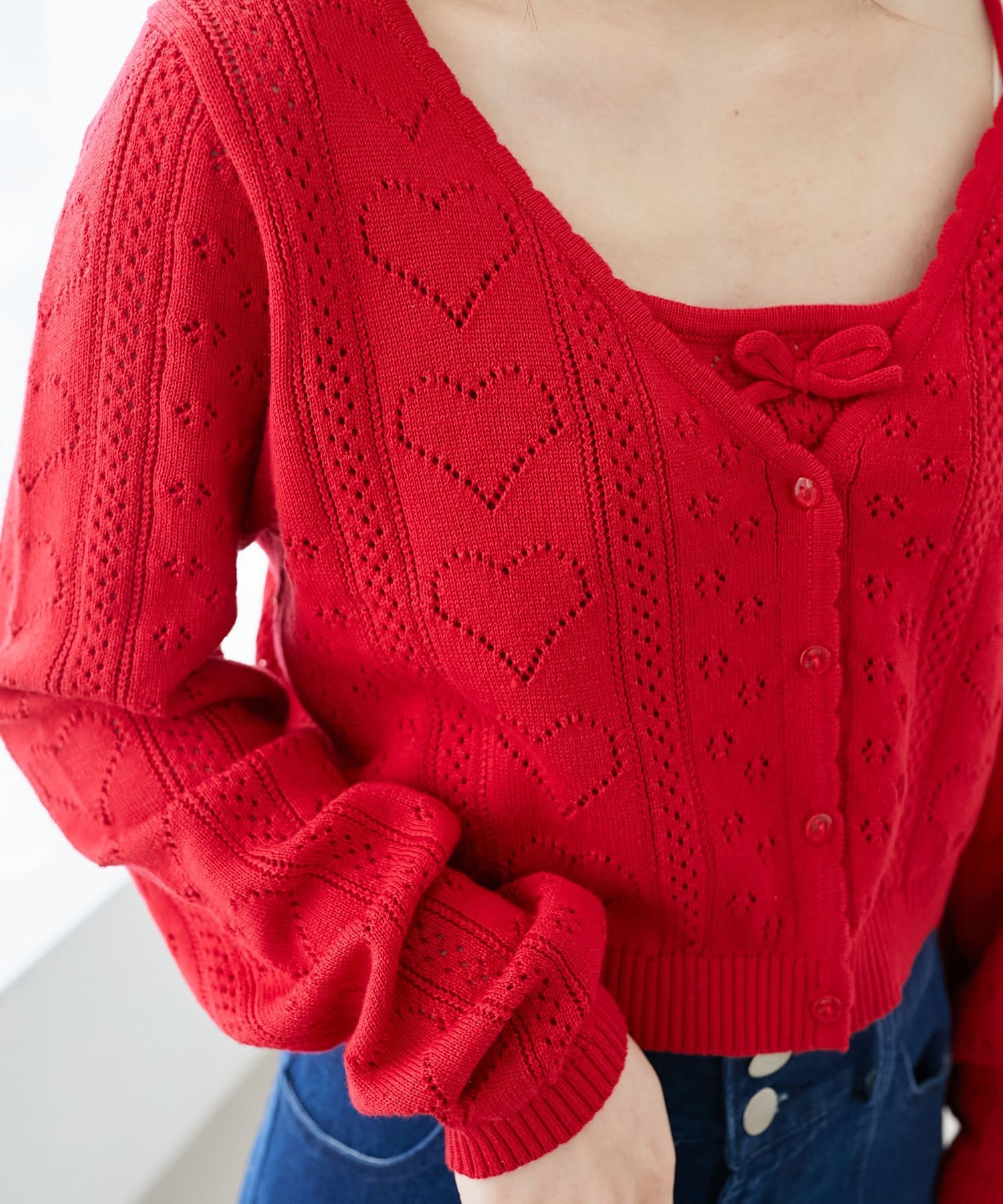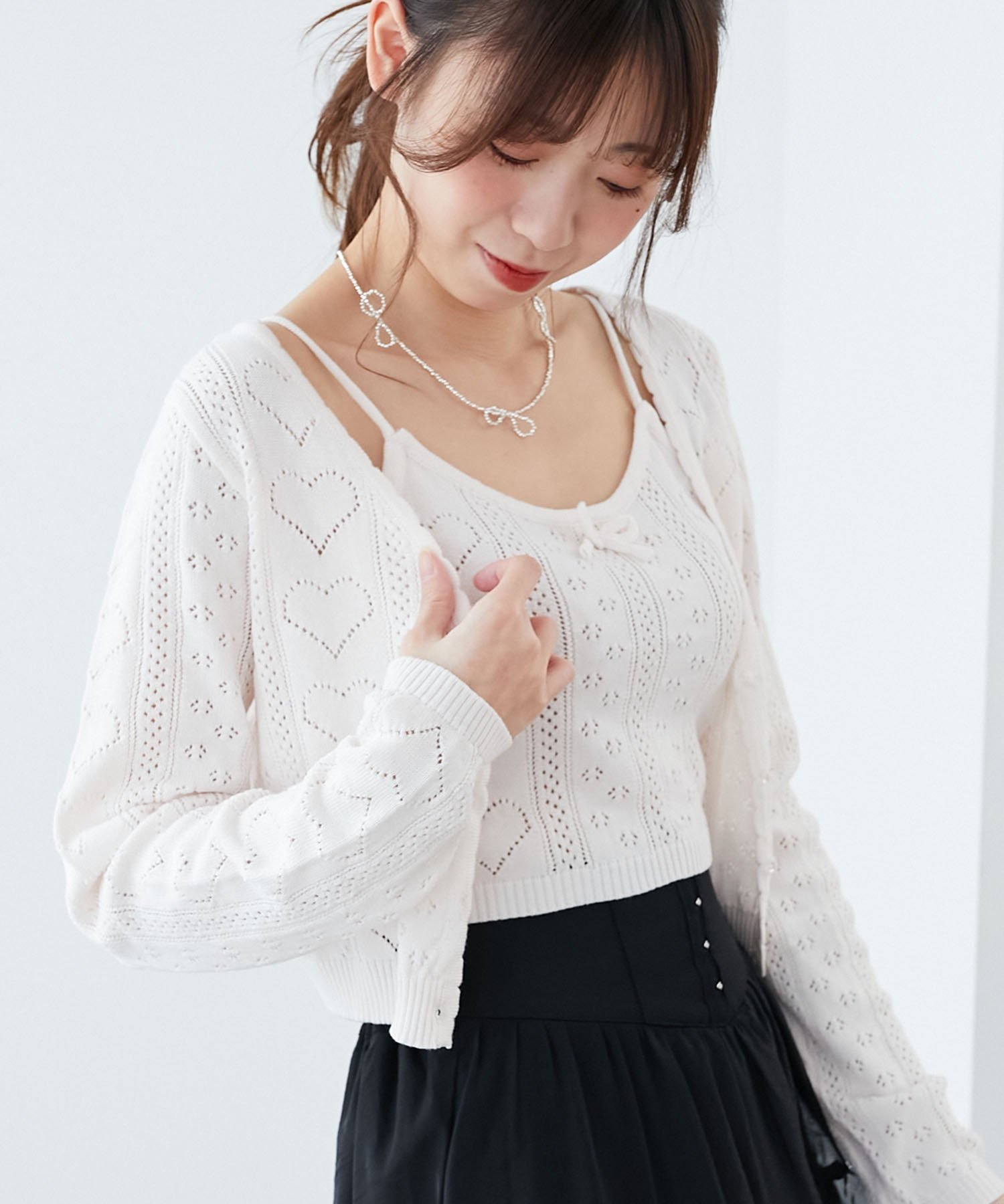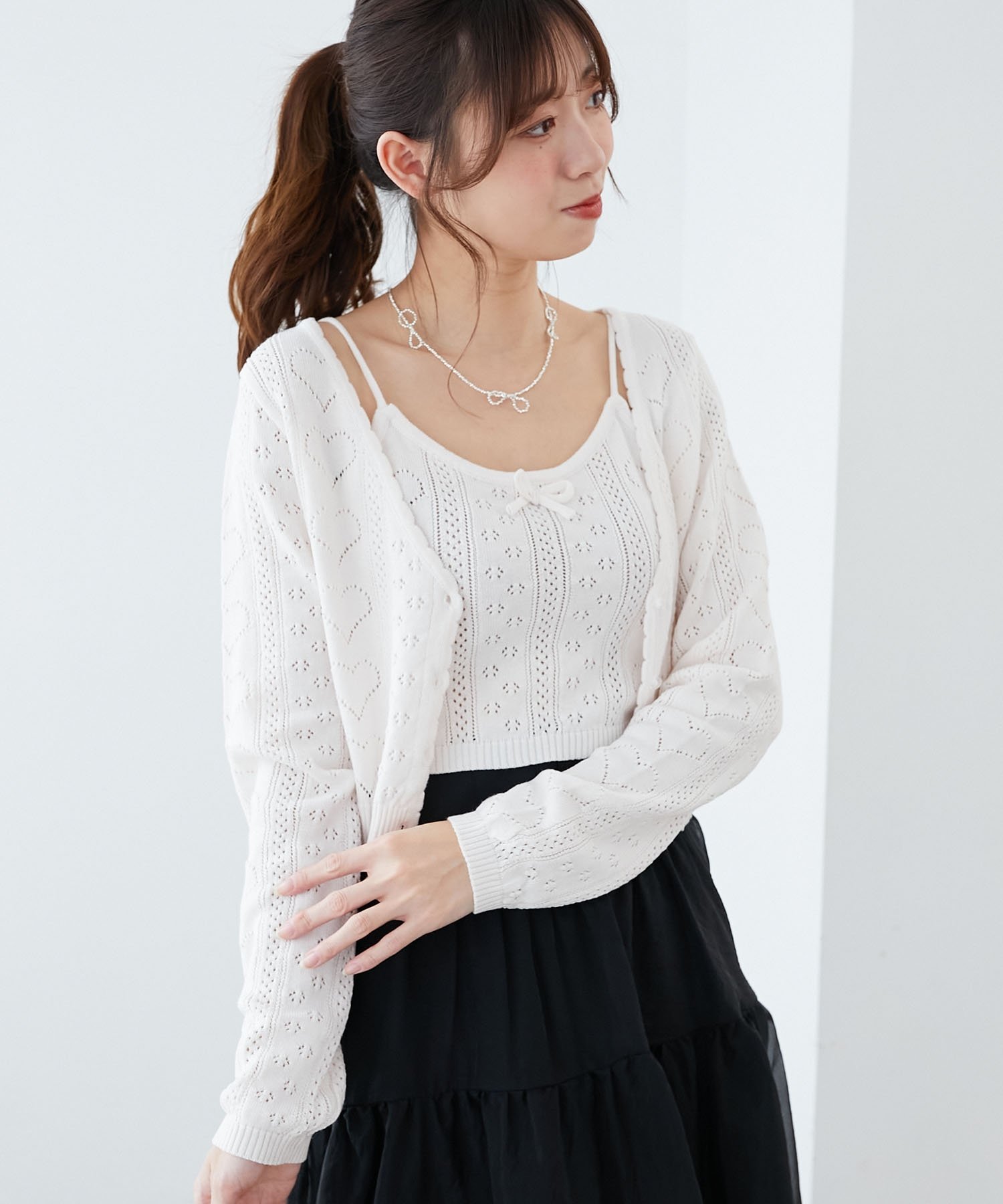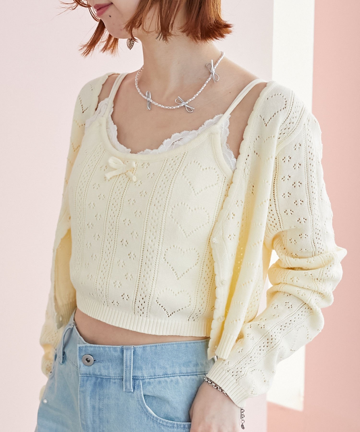 【SALE/10%OFF】MAJESTIC LEGON ハート透かし柄キャミセットカーデ マジェスティックレゴン トップス カーディガン ピンク レッド イエロー ホワイト ブルー【送料無料】