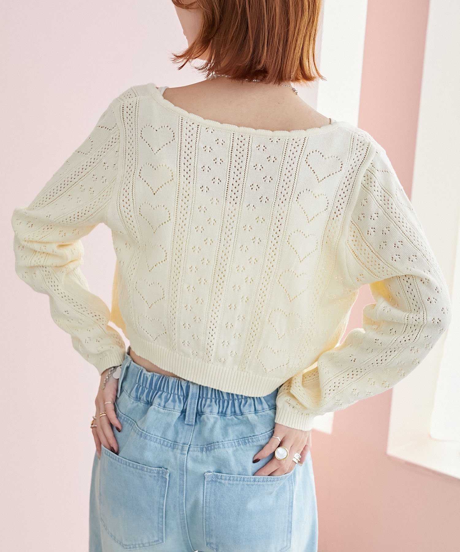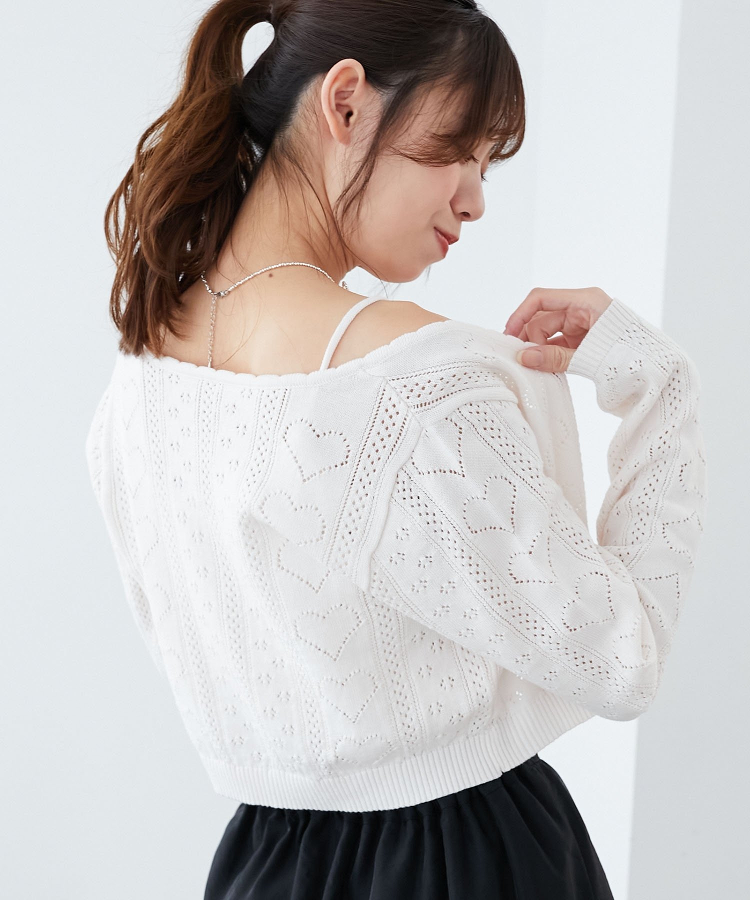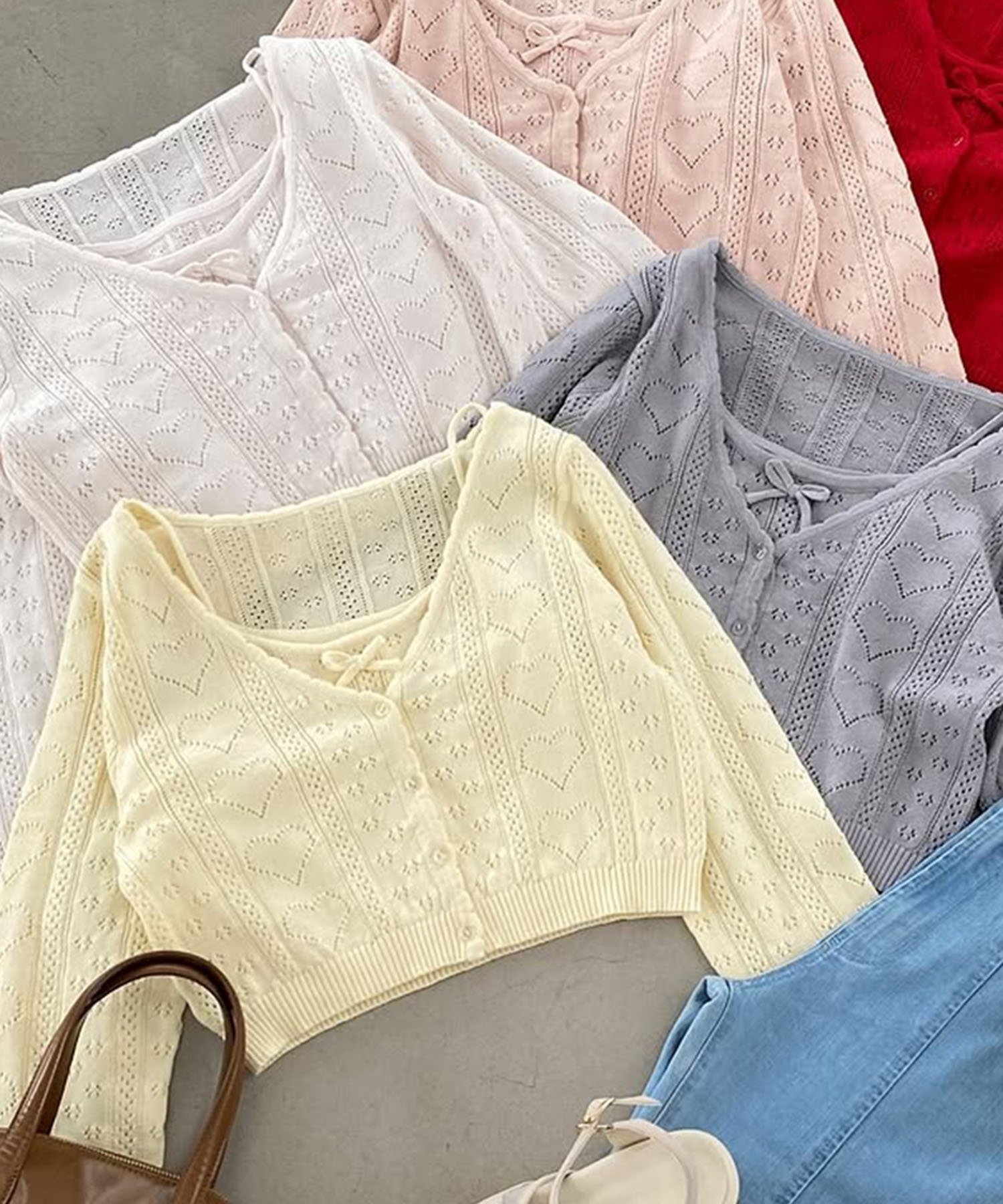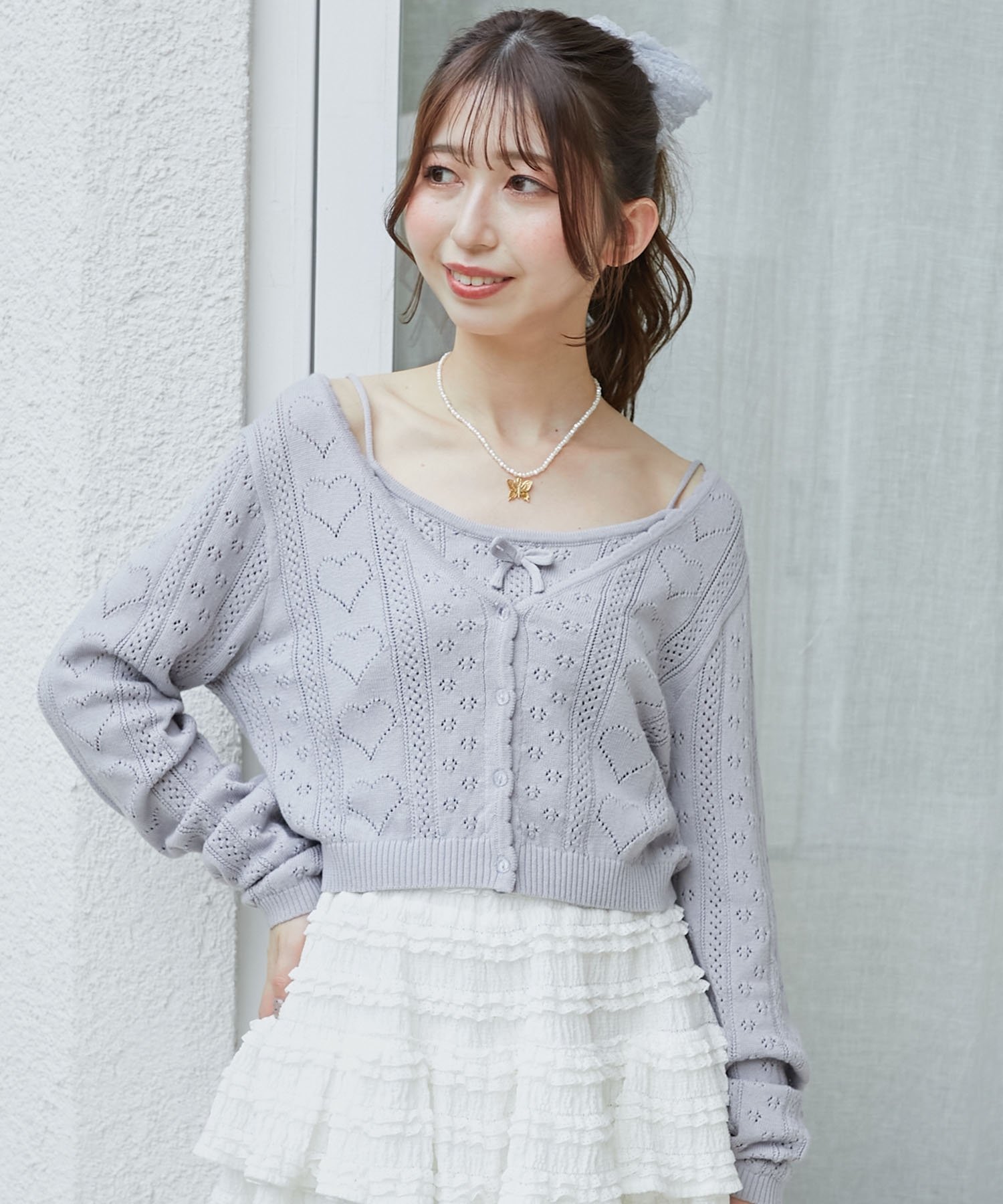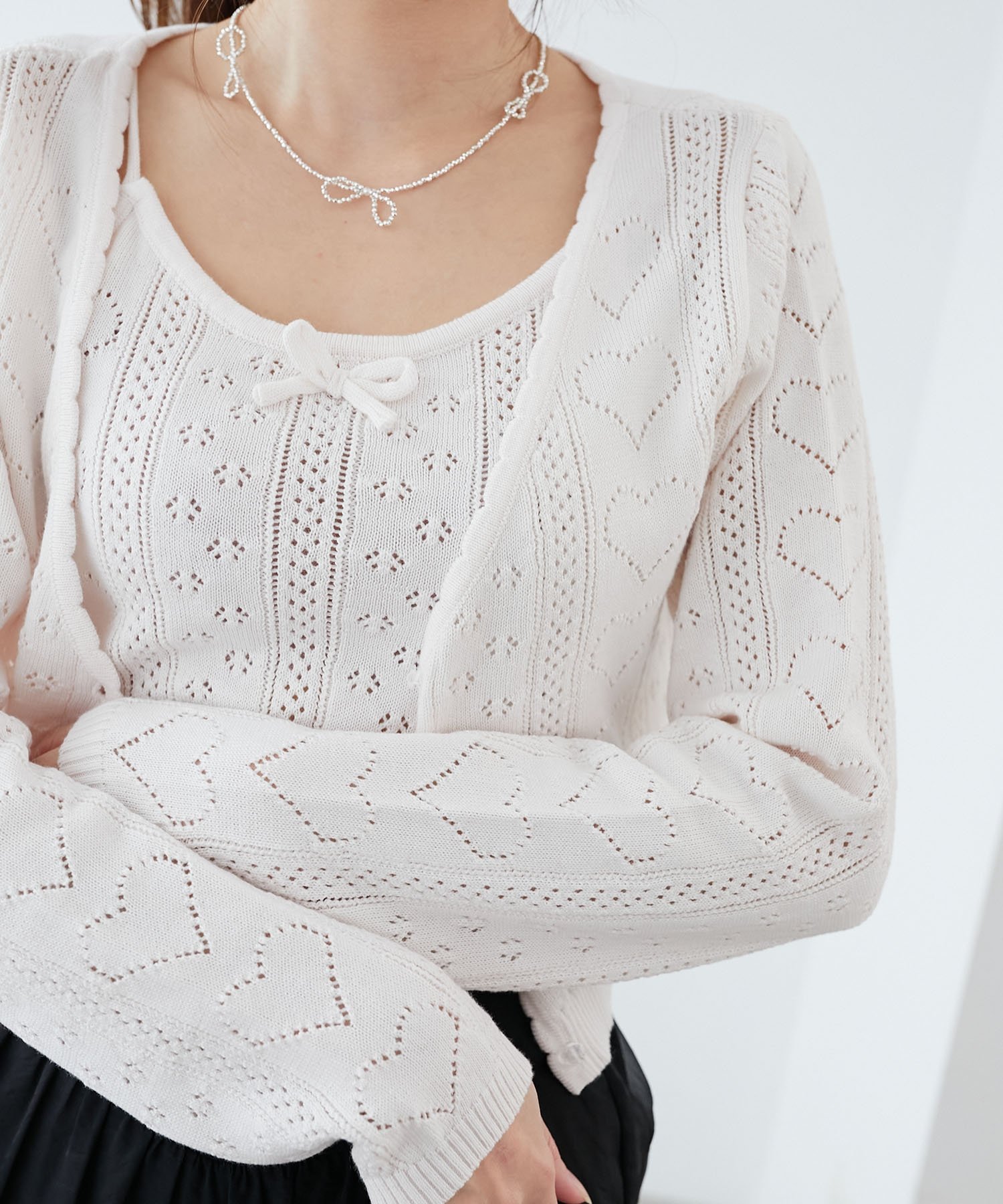 【SALE/10%OFF】MAJESTIC LEGON ハート透かし柄キャミセットカーデ マジェスティックレゴン トップス カーディガン ピンク レッド イエロー ホワイト ブルー【送料無料】