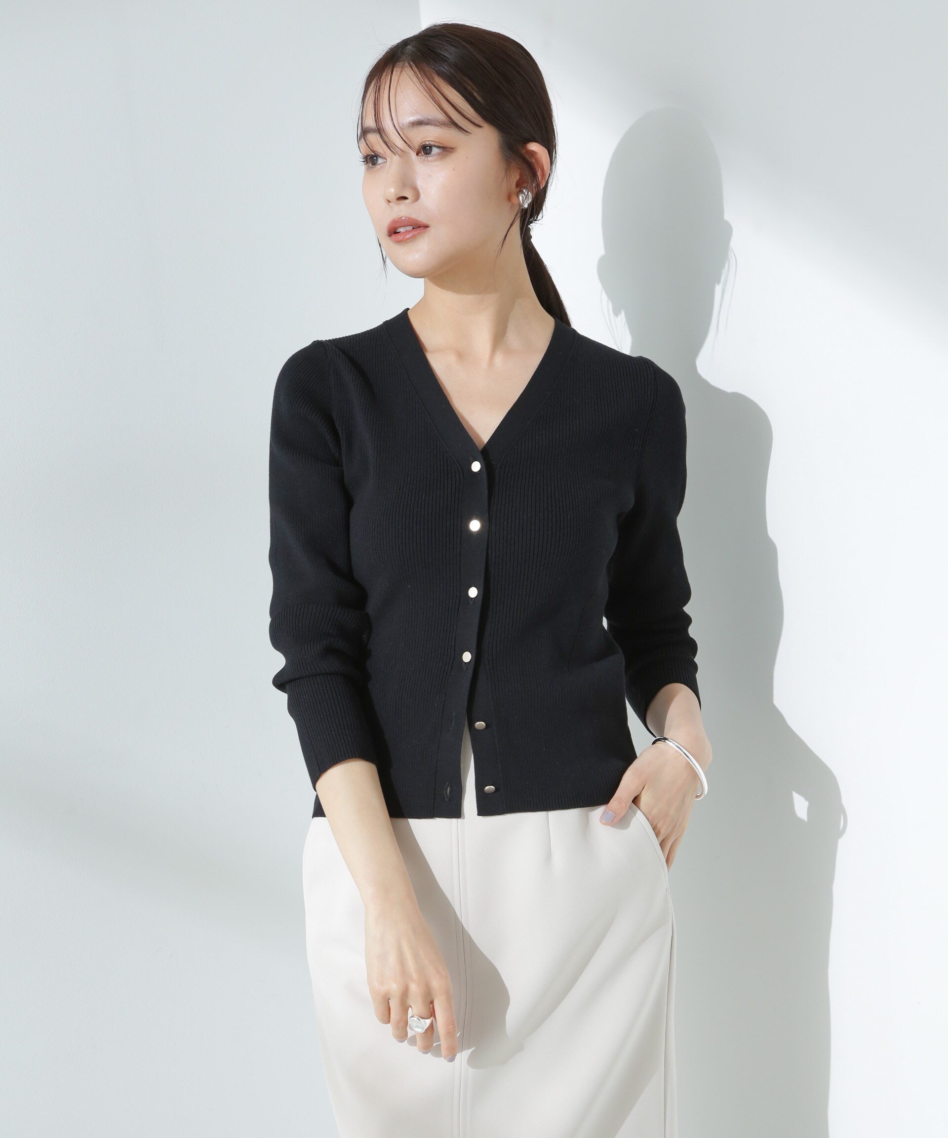 NANO universe ウォッシャブルハイツイストVネックリブカーディガン ナノユニバース トップス ニット ブラック ホワイト イエロー ピンク【送料無料】