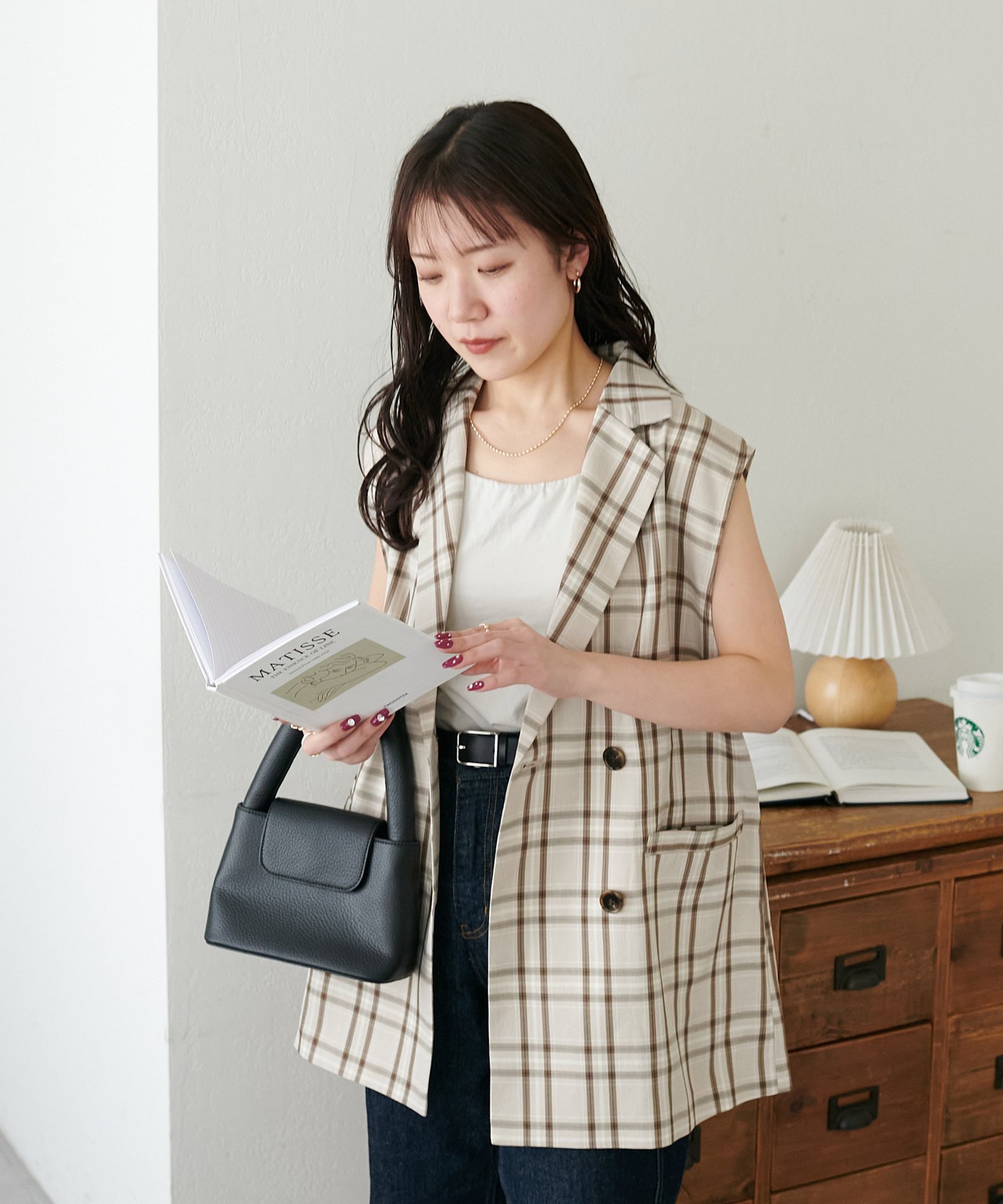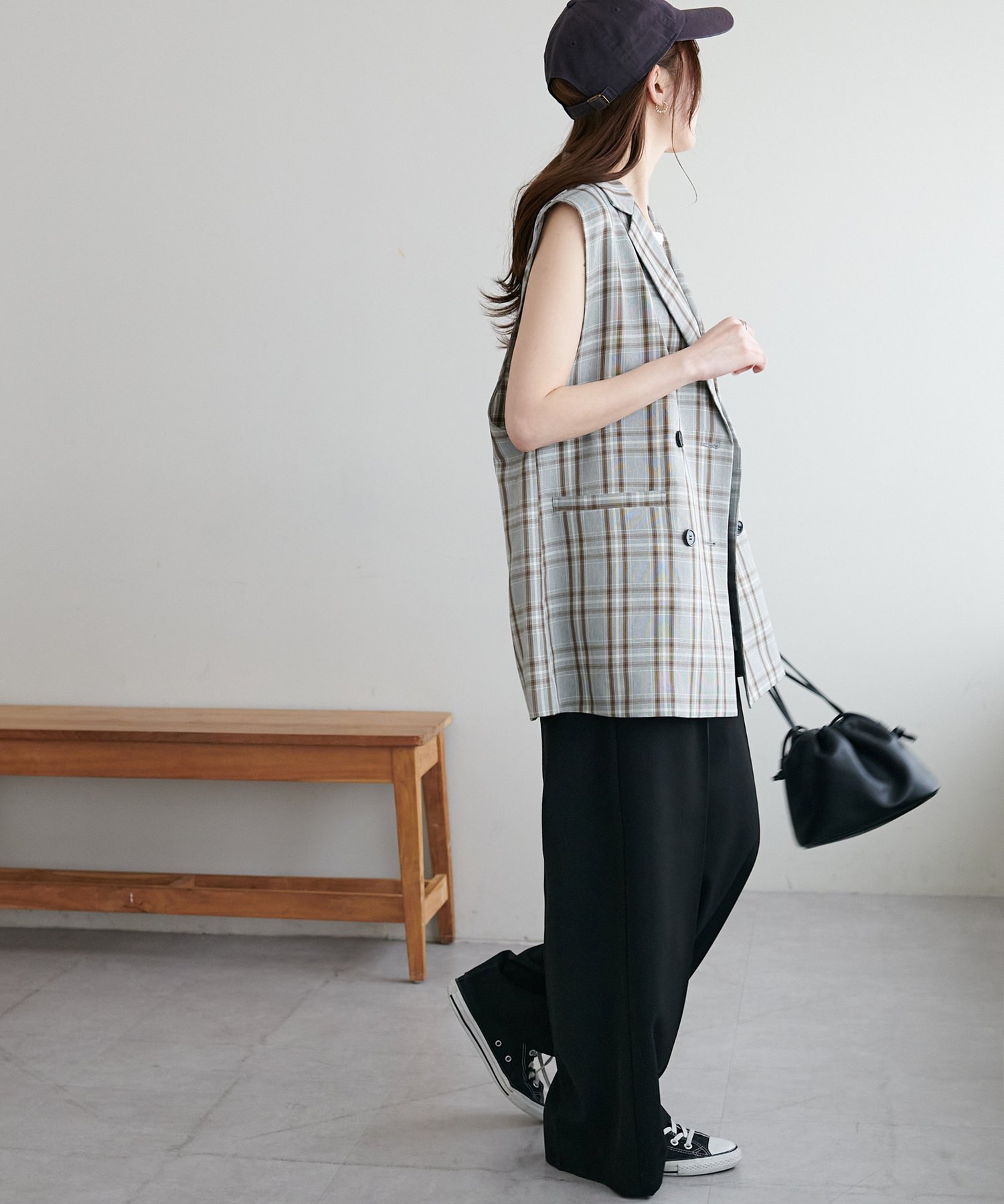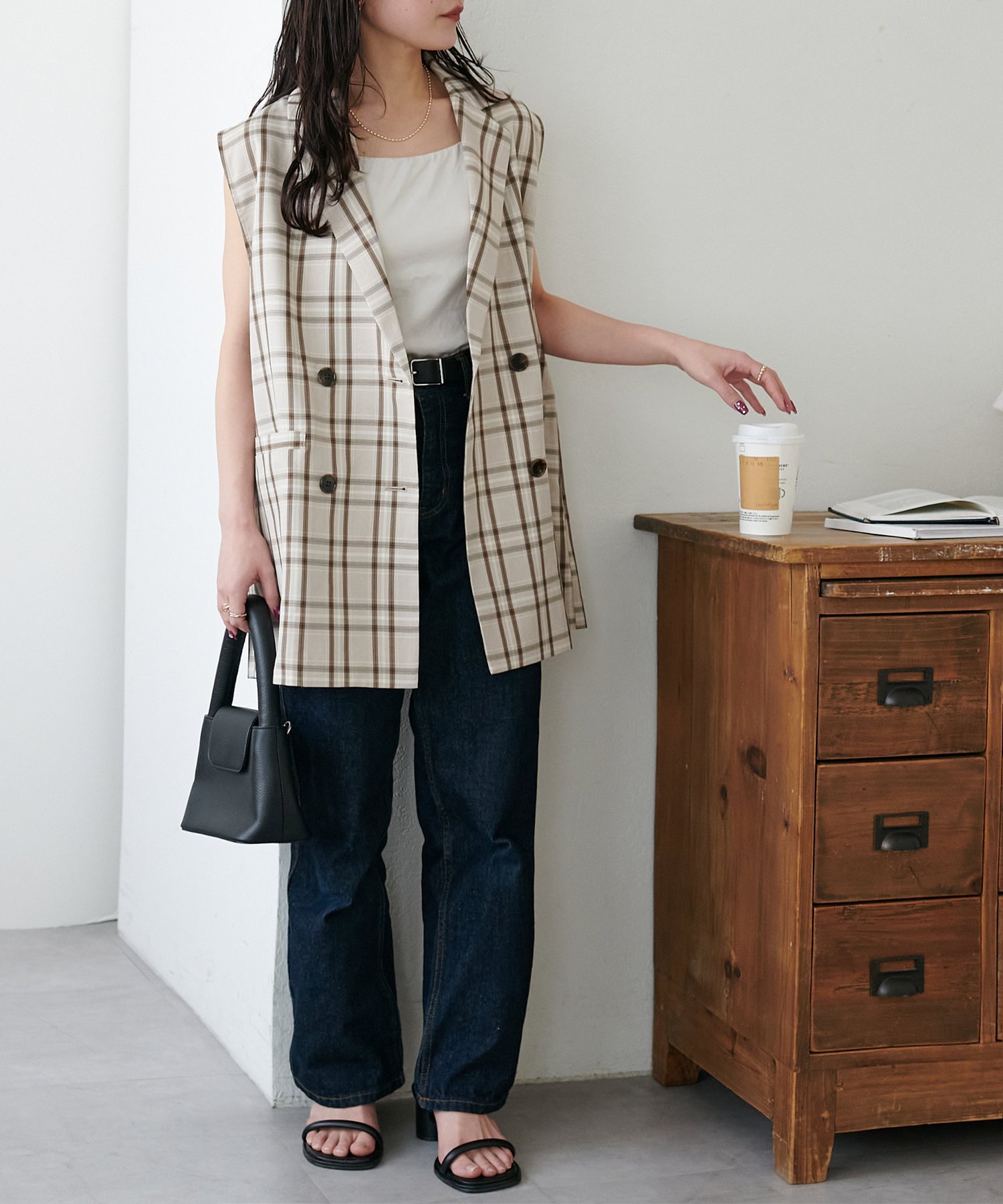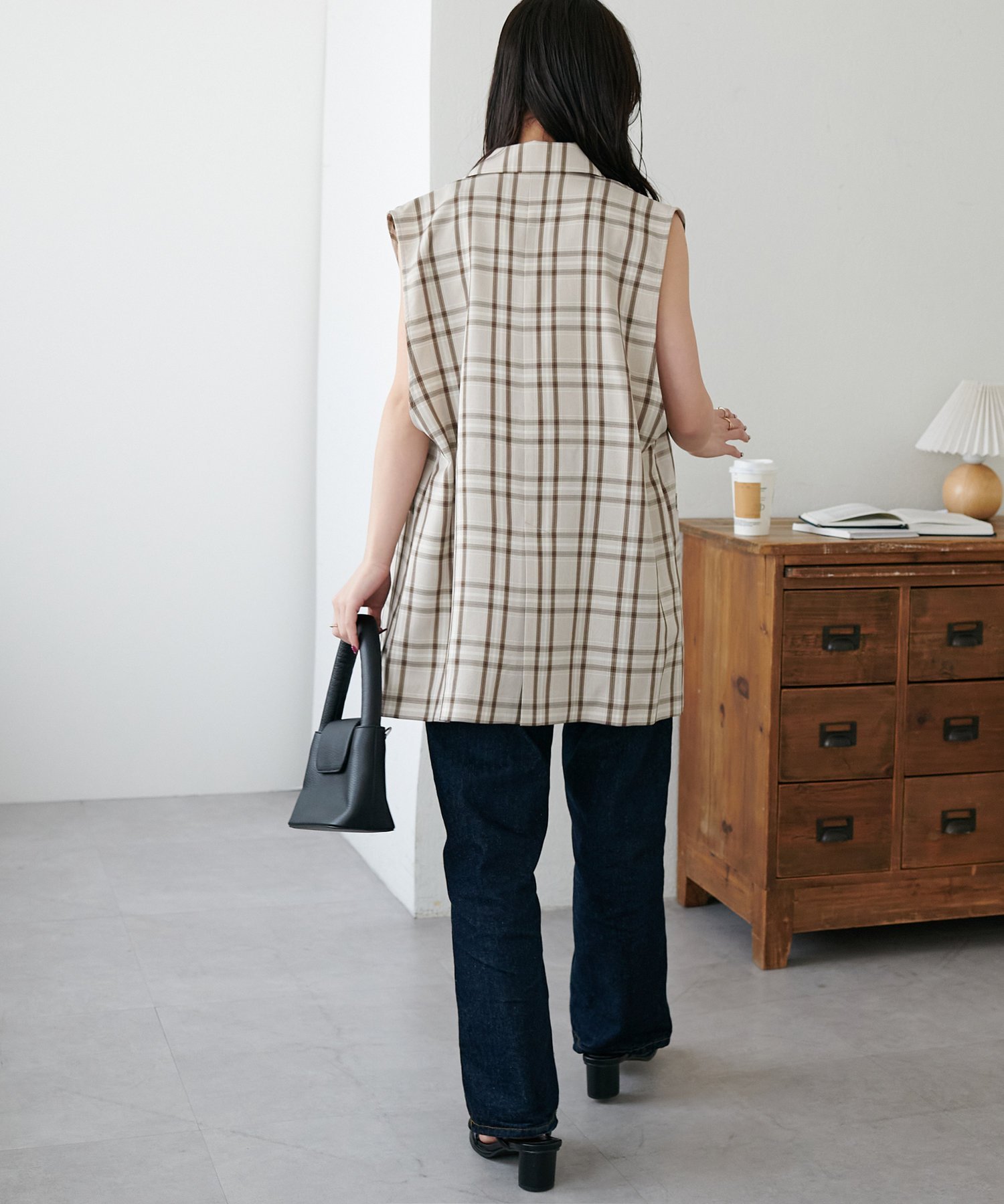 Discoat 【WEB限定】チェックベスト ディスコート トップス ベスト・ジレ ベージュ グレー【送料無料】