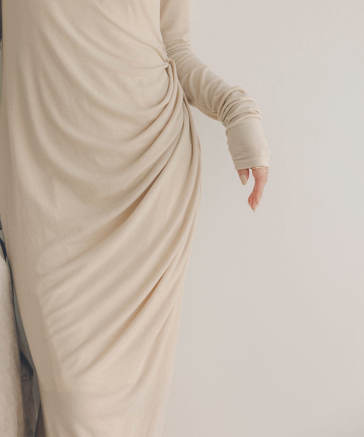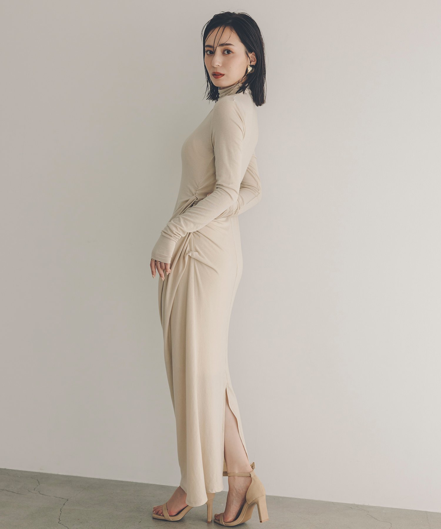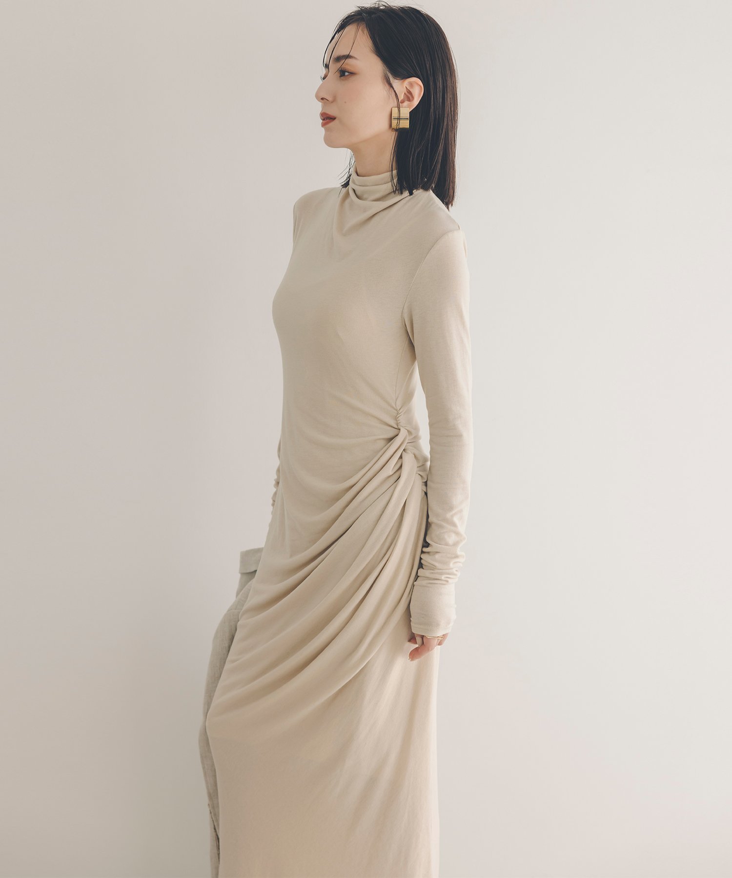 anuans ギャザードレープカットワンピース アニュアンス ワンピース・ドレス ワンピース ブラック ベージュ【送料無料】