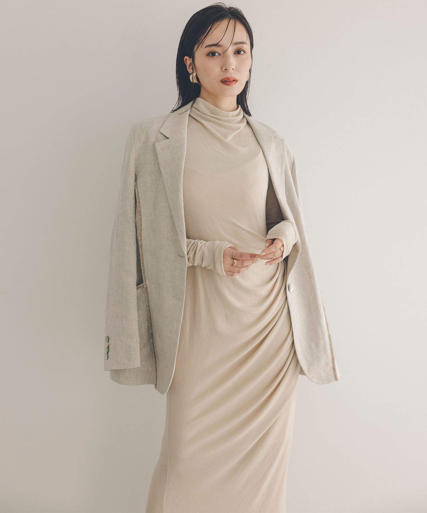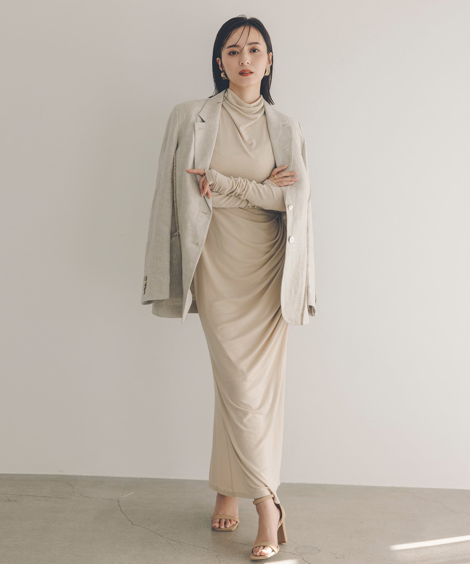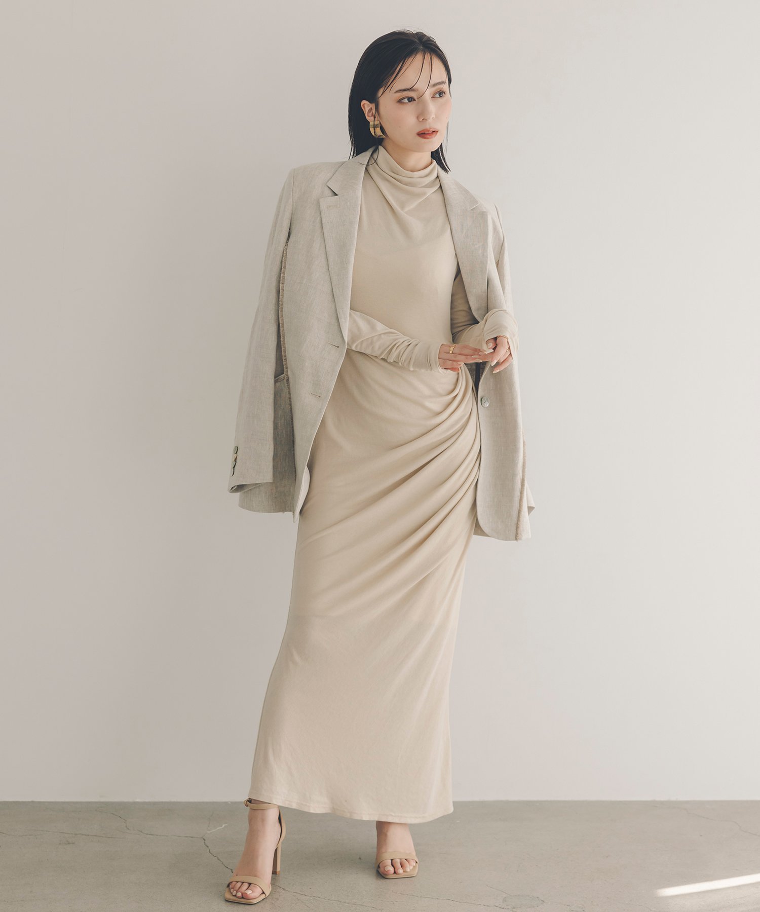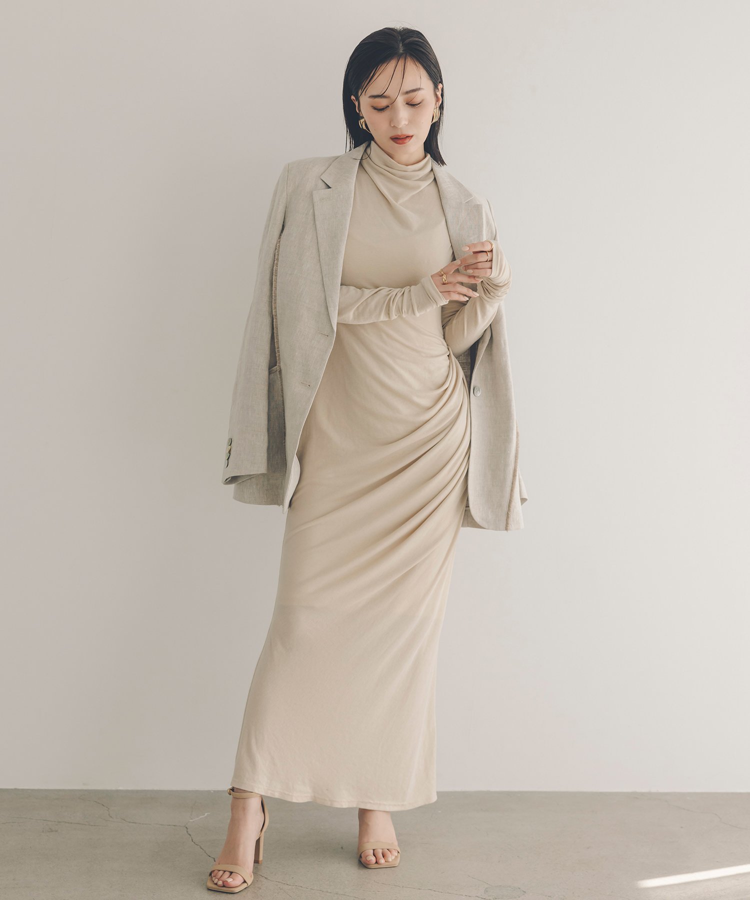 anuans ギャザードレープカットワンピース アニュアンス ワンピース・ドレス ワンピース ブラック ベージュ【送料無料】