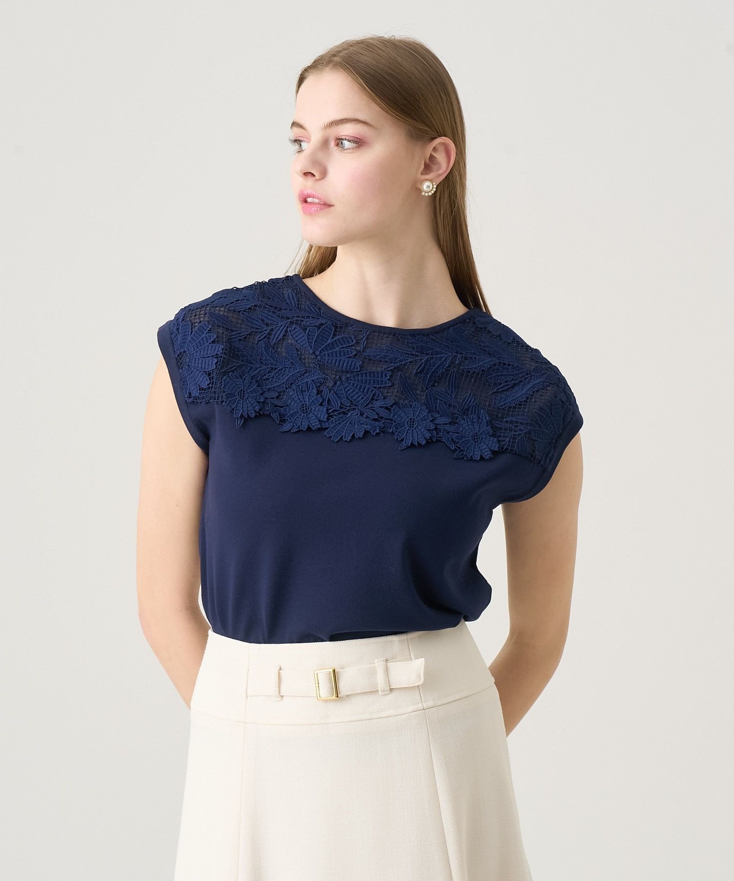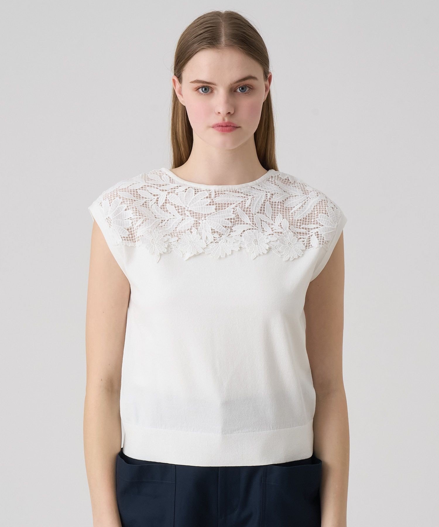 ANAYI フルール プルオーバー アナイ トップス ニット ネイビー ピンク ホワイト【送料無料】