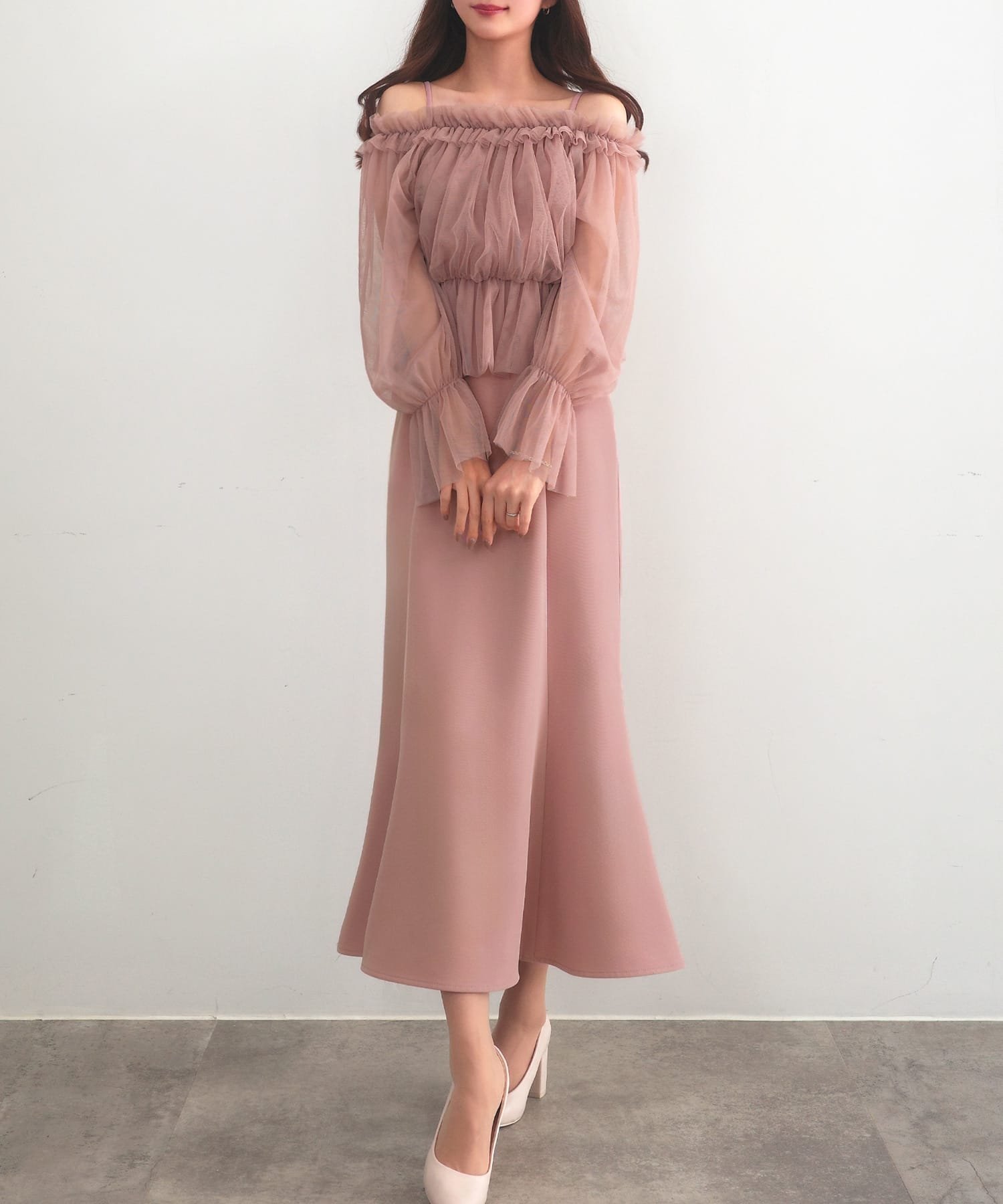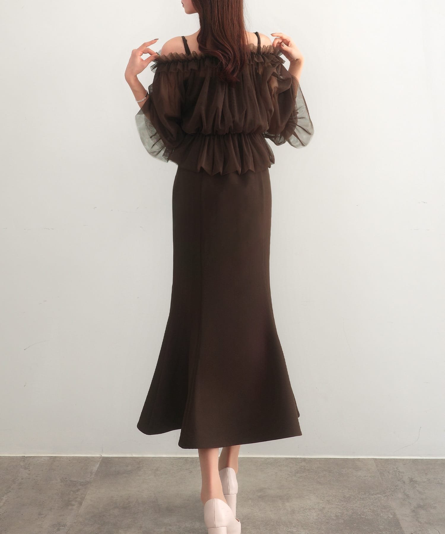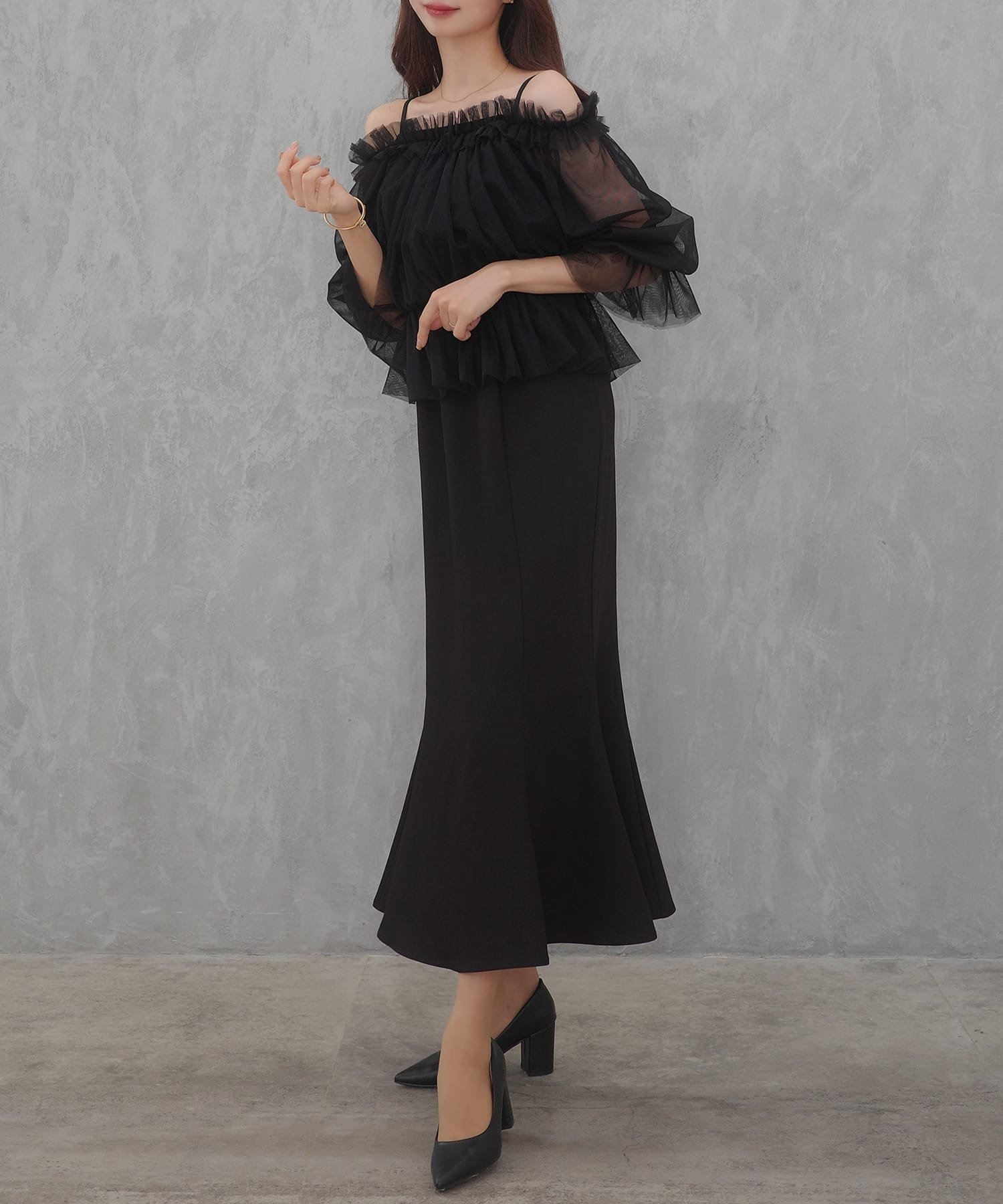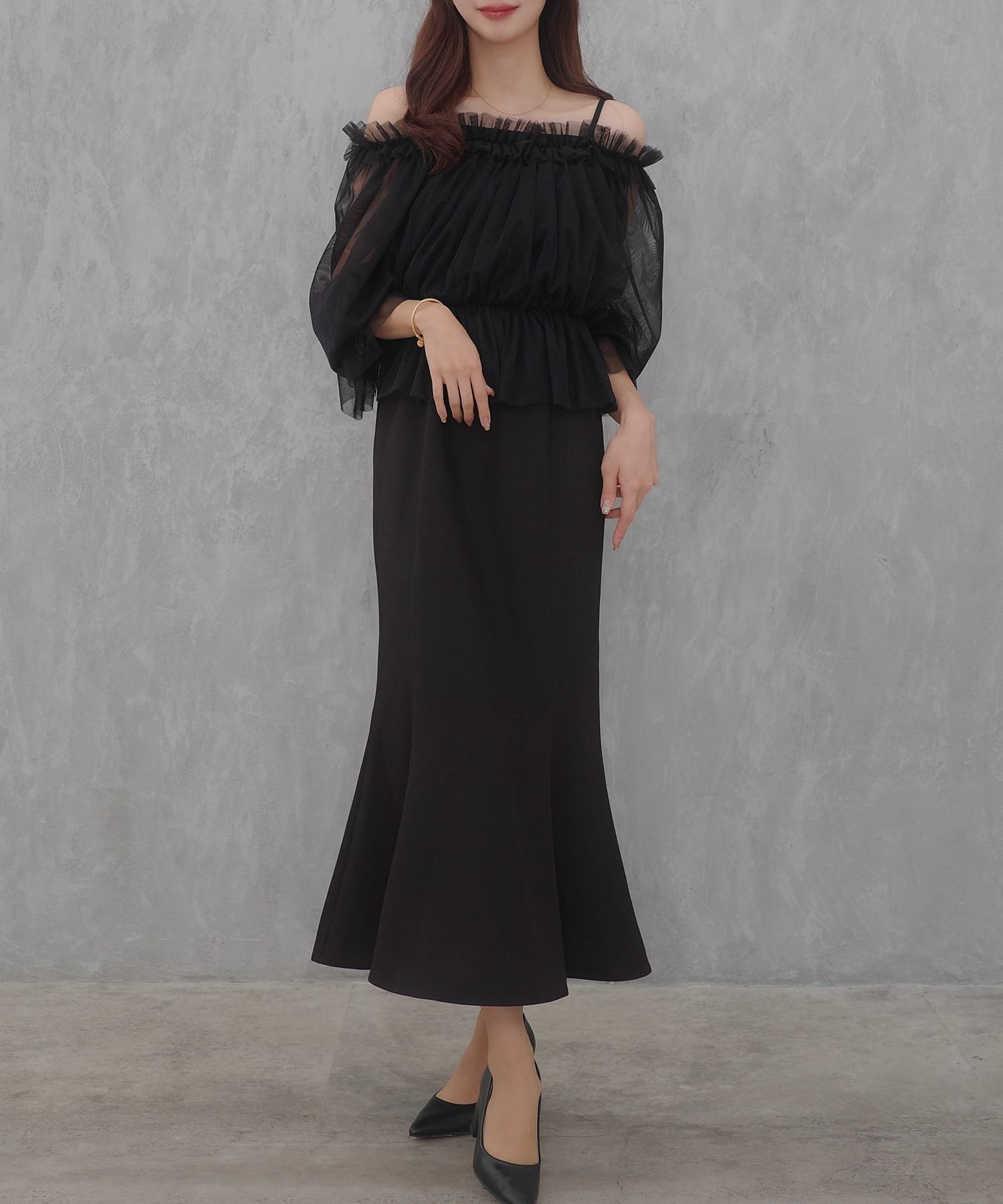 【SALE/15%OFF】JUNOAH セネア ブラウス+マーメイドワンピース ジュノア ワンピース・ドレス ワンピース ブラック ブラウン ホワイト グレー ピンク【送料無料】