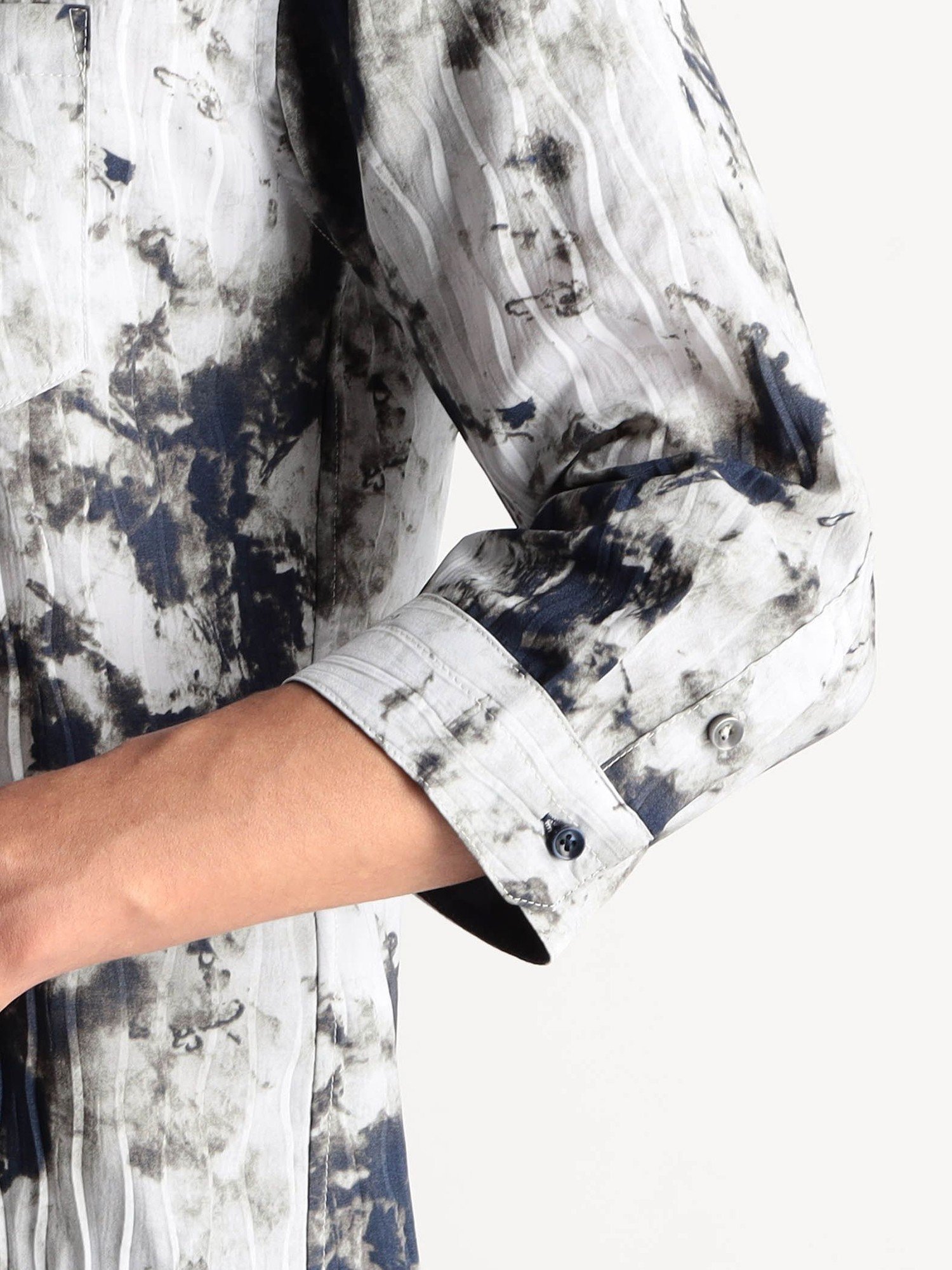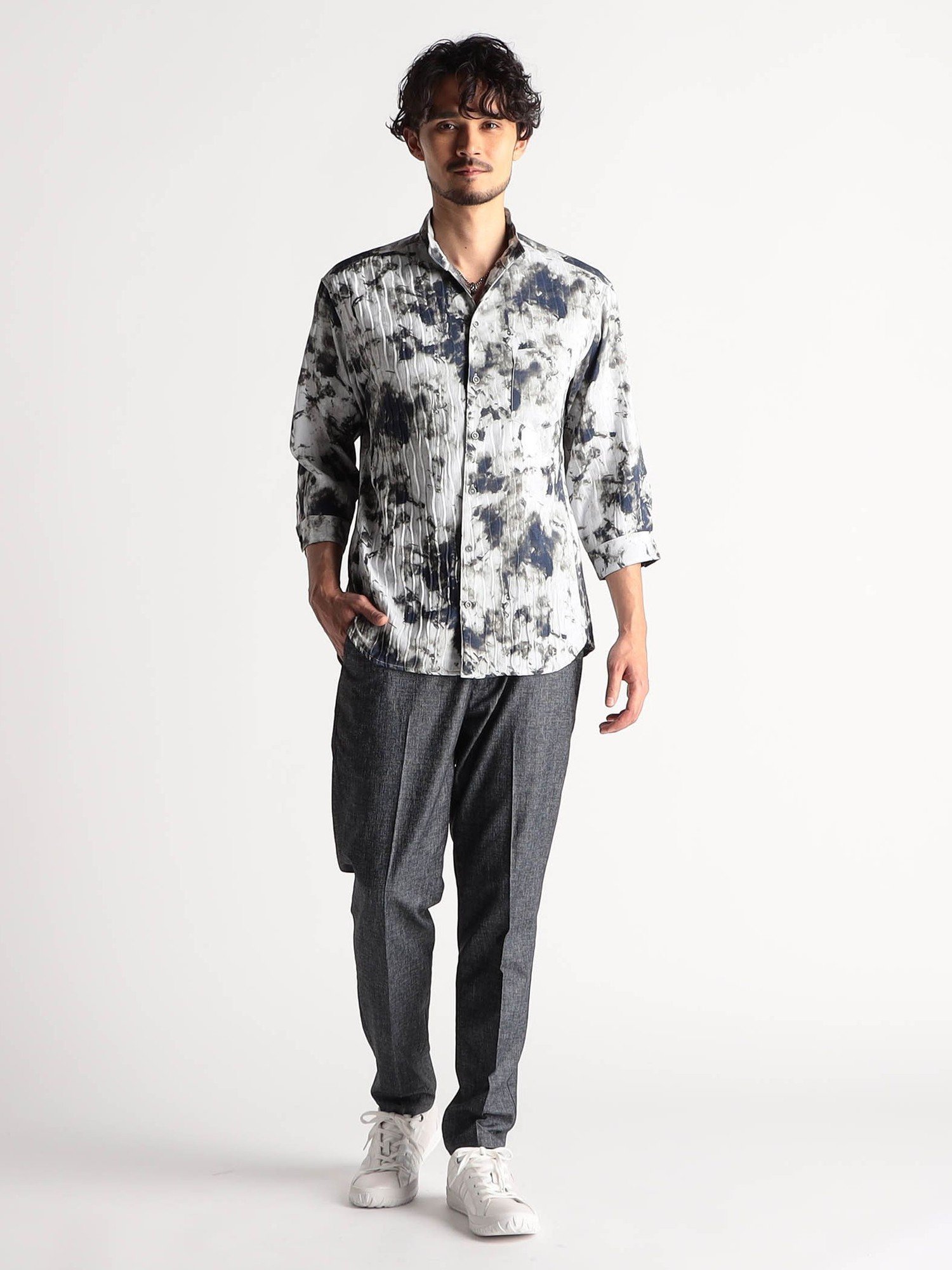 NICOLE CLUB FOR MEN アラカルトプリント 7分袖ショートスタンドカラーシャツ ニコル トップス シャツ・ブラウス ホワイト ブラック【送料無料】