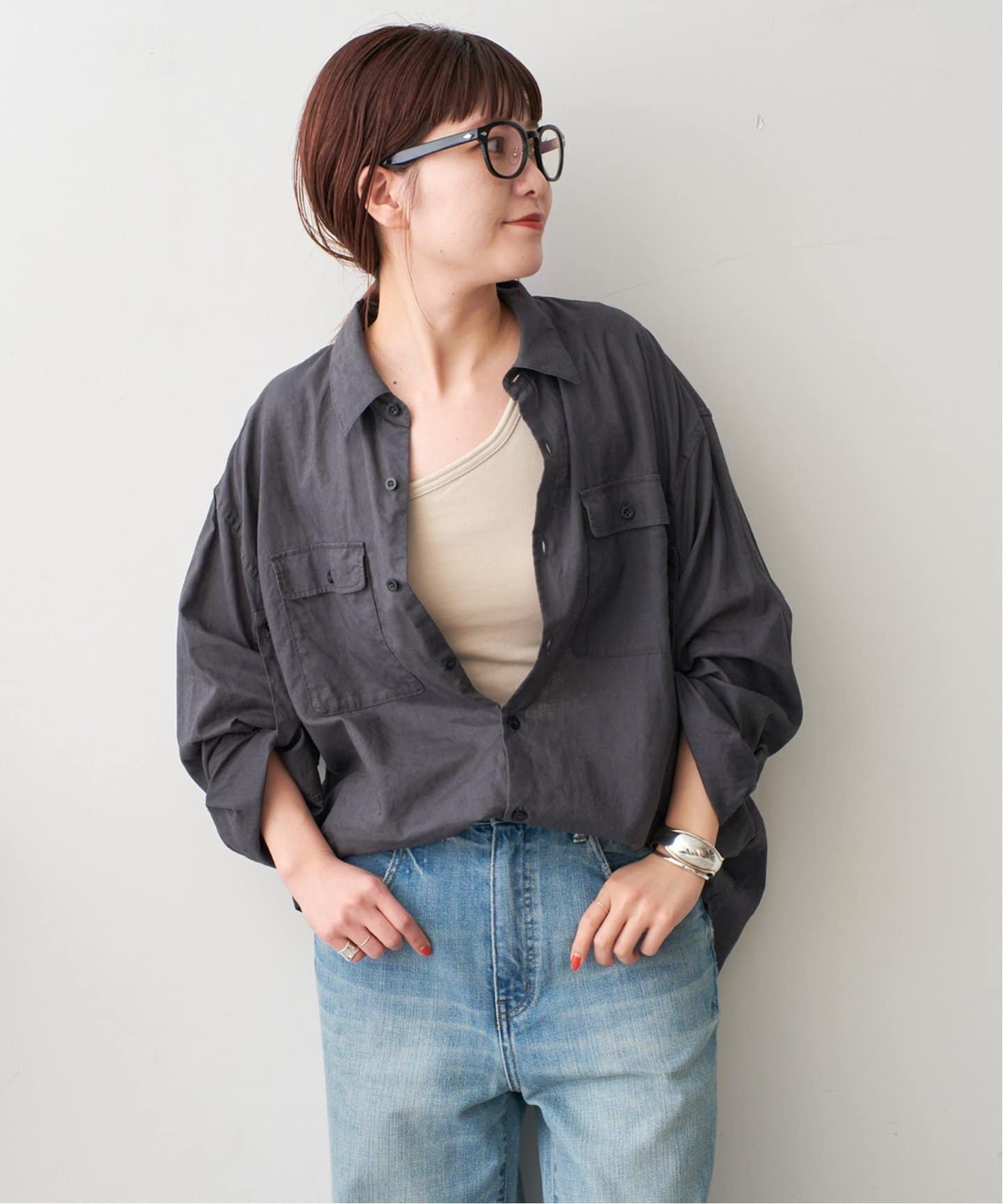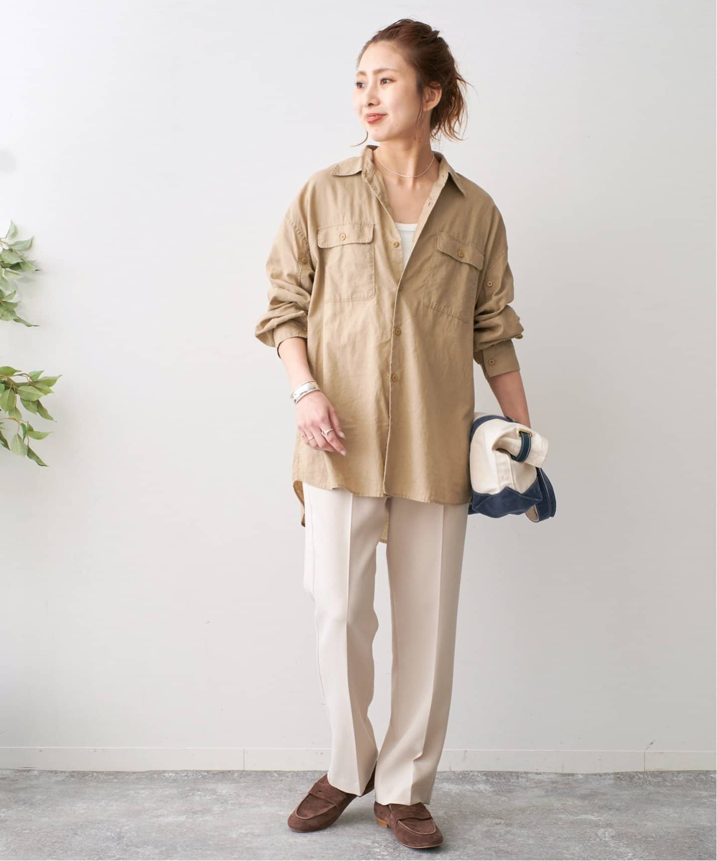 Spick & Span 《予約》コットンリネンユーティリティーシャツ スピックアンドスパン トップス シャツ・ブラウス カーキグリーン ホワイト グレー ベージュ【送料無料】