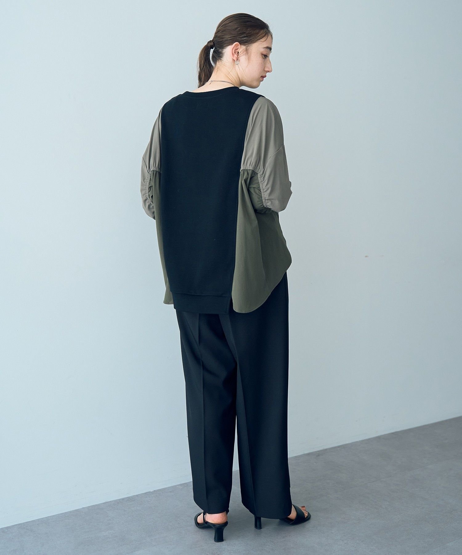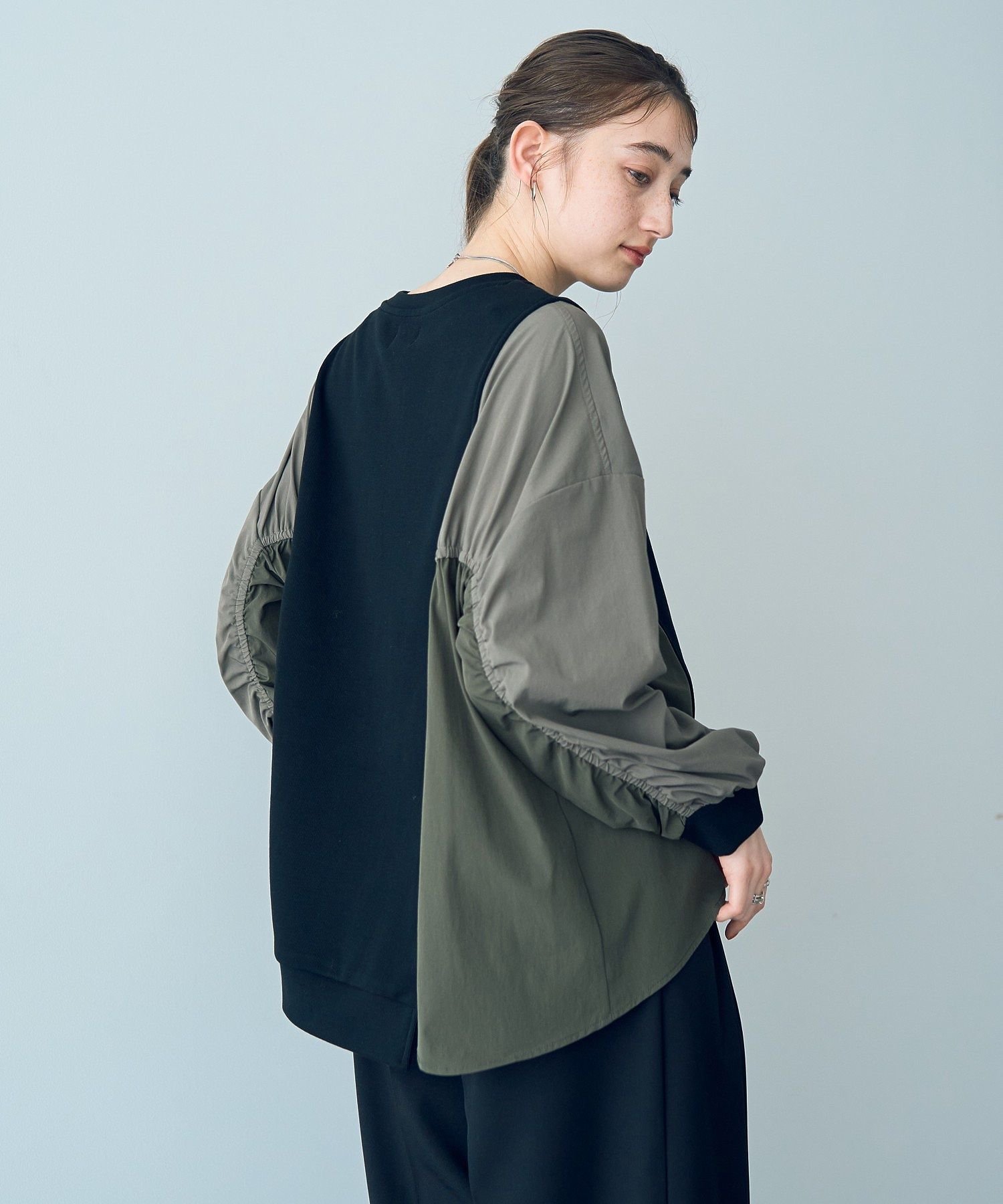 YECCA VECCA ギャザーデザインプルオーバー イェッカヴェッカ トップス カットソー・Tシャツ ブラック グレー【送料無料】