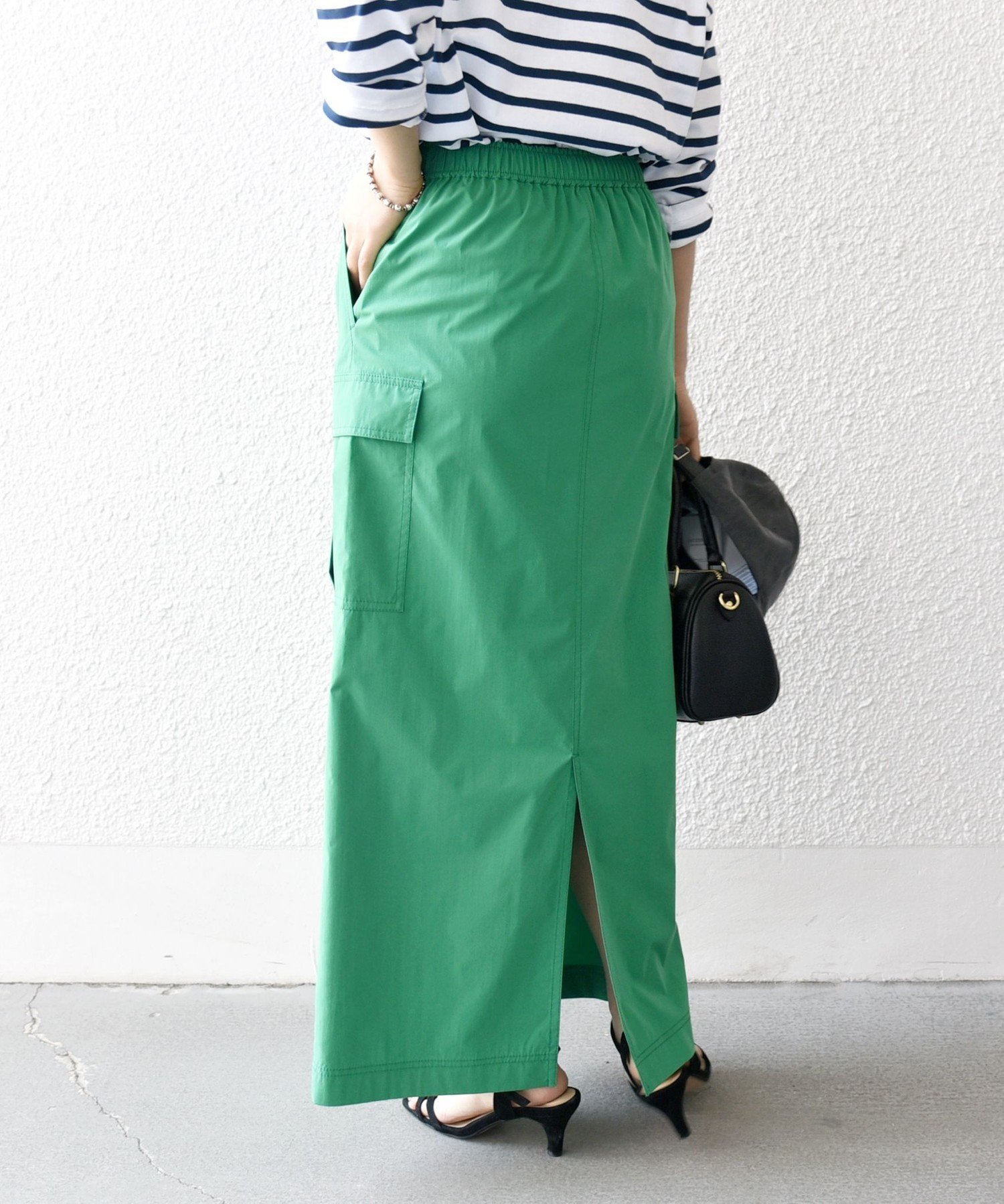 SHIPS any SHIPS any:<洗濯機可能>タイプライター イージー カーゴ タイト スカート シップス スカート ロング・マキシスカート グリーン ネイビー【送料無料】