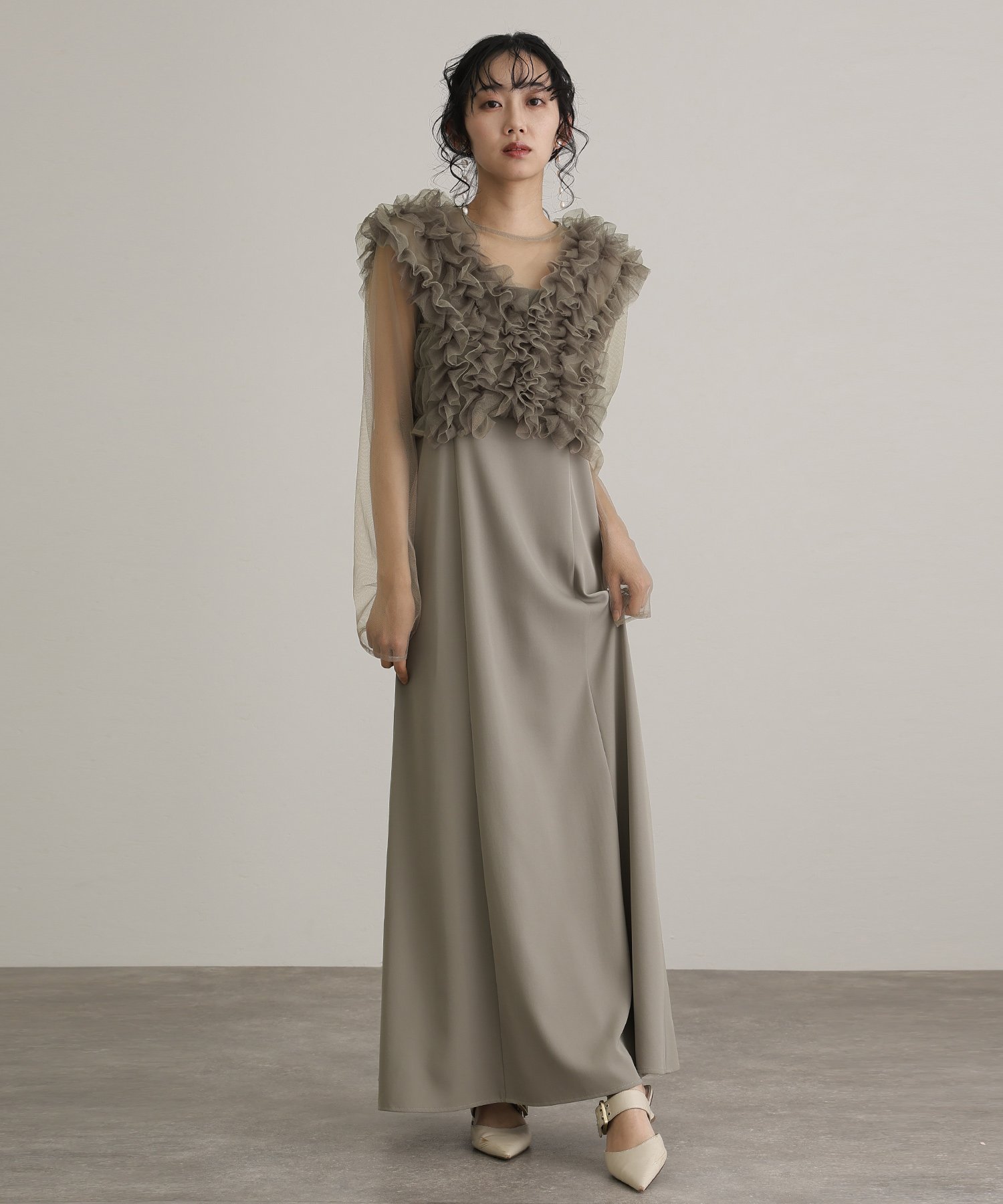 PourVous 袖あり&ミモレ丈同窓会3点セットセレモニー結婚式フォーマルパーティードレス プールヴー ワンピース・ドレス ドレス ベージュ ブラック ブラウン【送料無料】